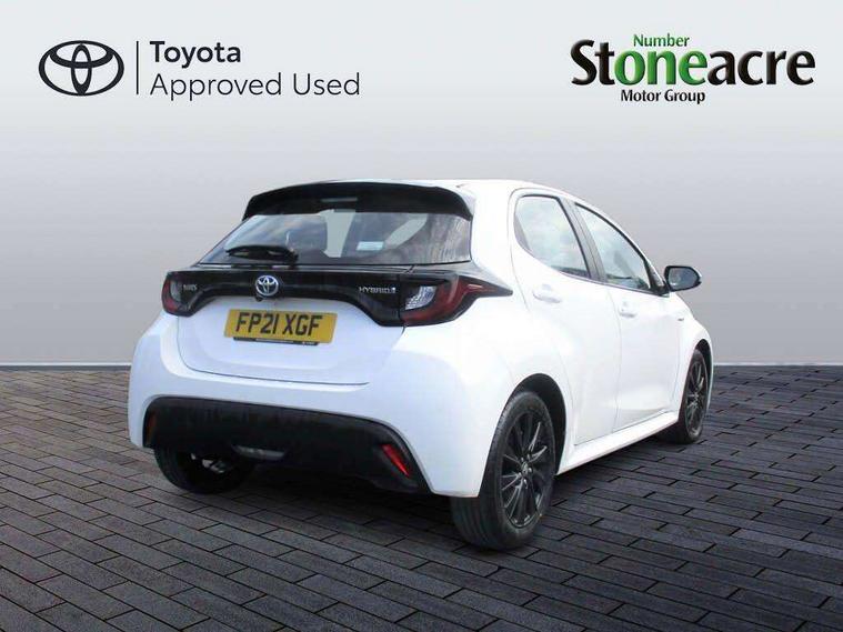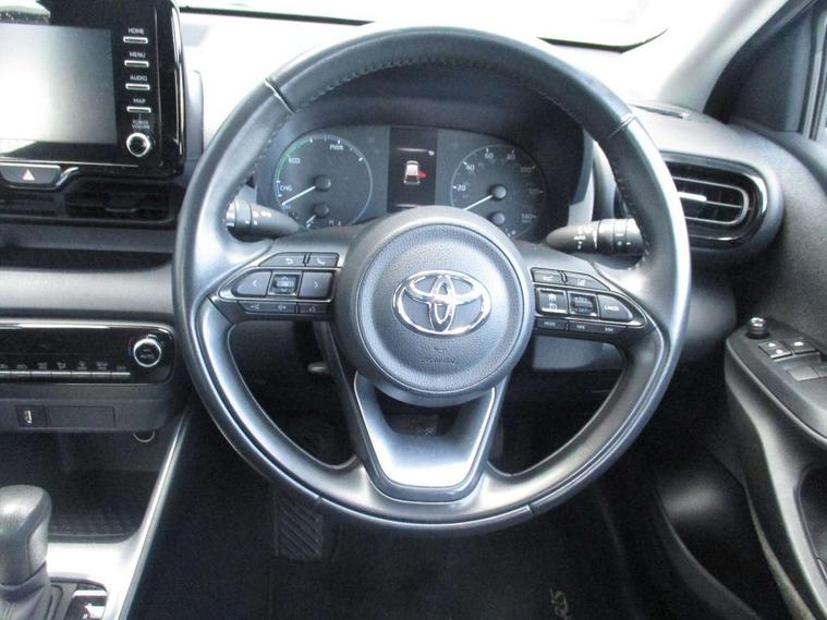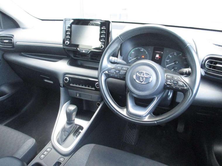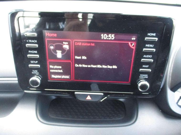Soft touch instrument panel, 16" Silver alloy wheels, Space saver spare wheel, Alarm/immobiliser, Remote powered central double locking doors, 4 speakers, 7" Multimedia display touch screen, Toyota Touch 2 with DAB, USB connection, 3 point seatbelts on all rear seats, ABS+EBD+Brake assist, Active headrests, Electronic parking brake, Emergency brake light system (EBS), Front passenger airbag on/off switch, Front seatbelt reminder, Hill start assist control (HAC), Rear child proof door locks, Rear seat belt reminder, Supplemental Restraint System (SRS) 8 airbags: Driver & passenger's airbags, dual side curtain airbags, side impact airbags, front centre airbag, Toyota Safety Sense 2, Precollison + Night time Pedestrian & Cyclist Detection, Lane Trace Assist, Auto High Beam, Intelligent ACC & Road Sign Assist, Tyre pressure warning system, Acoustic windscreen glass, Auto windscreen wipers, Automatic headlights, Body coloured door mirrors, Electric adjustable heated door mirrors, Follow me home headlights, Front auto power windows with anti jam protection, Halogen projector headlights, LED daytime running lights, LED High mounted stop lamp, Rear spoiler, Shark fin antenna, Turning signal integrated indicators in door mirrors, 3 adjustable rear headrests, 3 spoke leather steering wheel, 60/40 split folding rear seat, Adjustbale boot height, Auto air conditioning, Coat hooks in rear grab handles, Cup holders (2 front & door), Data Communication Module (DCM) connected services, Fabric upholstery, Front armrest, Glovebox, Height adjustable driver's seat, Isofix seat fixing, Leather gearshift, Pollen filter, Shopping bag hooks, Tilt/telescopic steering column, 4.2" coloured LED TFT multi information display with analogue speedometer, Adaptive cruise control, Adjustable speed limit with speed warning, Bluetooth connectivity, E-call, Electric power steering, Hybrid energy display, Multi information display switches on steering wheel, Reversing camera, Smartphone integration with Apple CarPlay and Android auto, Vehicle Stability Control (VSC),
