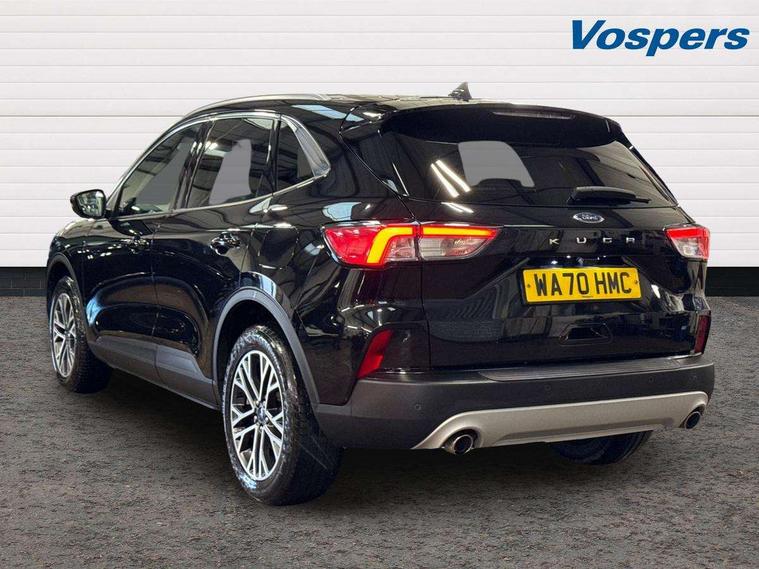 B&O with large instrument cluster pack - Kuga, Engine immobiliser, Keyless entry, Keyless start with 'Ford Power' starter button, Locking wheel nuts, Remote powered central double locking doors, Thatcham category 1 alarm, 3x3 point rear seatbelts, Airbags - front driver/passenger, front and rear curtain, Drivers knee airbag, Electronic stability control (ESC) and ABS, Ford MyKey Gen 2 safety system, Manual child proof rear door locks, Post collision braking, Pre collision assist with autonomous emergency braking, Tyre pressure monitoring system, Auto dimming rear view mirror, Auto headlamps with high and low beam, Auto wipers, Front LED fog lamps, Front scuff plate, Halogen Projector Headlamps, LED daytime running lights, LED rear lights, Power folding heated door mirrors with puddle lights, Power front/rear windows with global close, Privacy glass, Quickclear heated windscreen, Rear spoiler, Silver roof rails, Twin exhausts, 10 way power adjustable drivers seat, 2nd row sliding seats with 60:40 split, 8 way manual passenger seat including lumbar support and height adjust, Ambient lighting, Centre console with electronic parking brake, Dual electronic automatic temperature control, Front and rear floor mats, Front and rear head restraints, Leather steering wheel and gear knob, Rear charging point, Salerno partial leather upholstery, Sports seats, Ford easy fuel, Front and rear parking sensors, Hands free power tailgate, Lane keeping aid with lane departure warning, Mobile phone wireless charging pad, Power assist steering, Rear view camera, Selectable drive modes,