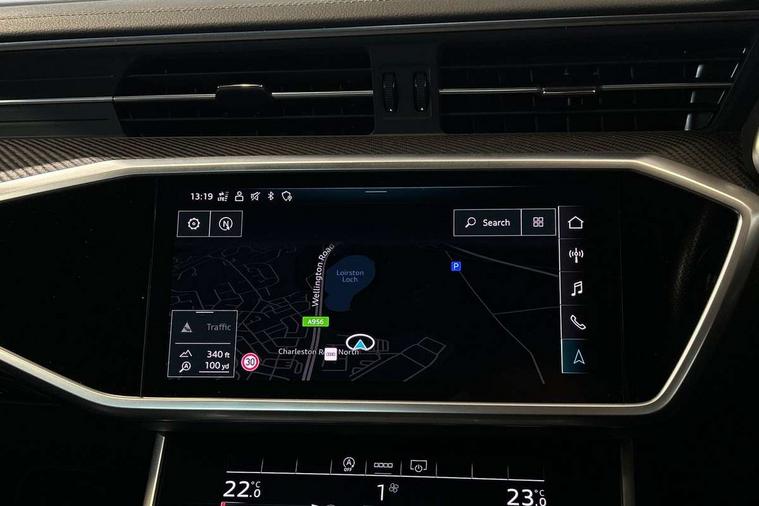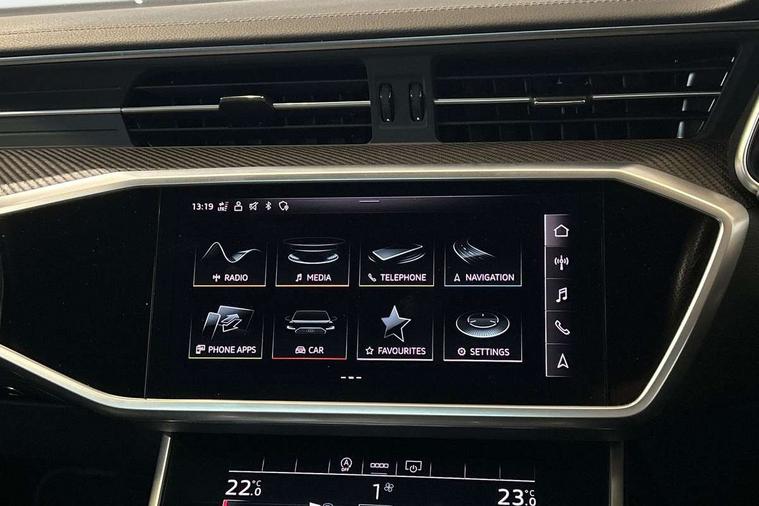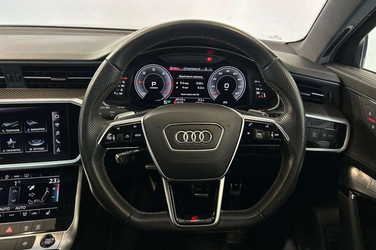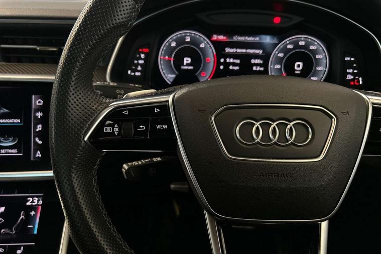 Matt brushed aluminium dark inlays, LED Interior Ambient Lighting Pack - A6, Non smoking pack - A6, 20" 5 V spoke star design Audi sport cast aluminium alloy wheels in matt titanium look, Anti theft alarm with tow away protection, Anti-theft wheel bolts and wheel loosening detection, Immobiliser, Keyless Go, Remote central locking, Audi music interface, Audi sound system, Auxiliary input socket, DAB Digital radio, USB connection, 3 point seatbelts on all seats, Airbags - Front side, front and rear including head, Audi pre-sense front, Black seatbelts, EBD - Electronic brakeforce distribution, Electromechanical parking brake, Electronic Stability Control (ESC) including ABS, ASR and EDL, Extended pedestrian protection measures, Seatbelt monitoring, Tyre pressure warning light, Warning triangle and first aid kit, Electric front/rear windows, Frameless auto dimming interior rear view mirror, Gloss black exterior mirror housings, Gloss black highlights on the exterior area of the Audi Single frame, Gloss black highlights on the front and rear bumpers, Gloss black highlights on the radiator grille, Gloss black highlights on the side windows trim strips, Headlight washers, Heat insulating glass in side and rear windows, Heat insulating glass in windshield, LED rear lights, LED signature front daytime running light, Matrix LED headlights with dynamic rear indicators, Matt black rear diffuser with diffuser strip and tailpipes in chrome, Matt black side air intake grille with inlay in matt aluminium, Privacy glass, Rain and light sensors, Signature rear LED light design, 2 zone deluxe electronic climate control, 4 way electric lumbar support for driver and front passenger, 40/20/40 split folding 3 rear seat bench in 3 parts with rear centre armrest, Black cloth headlining, Electrically adjustable front seats with driver memory, Front centre armrest, Front head restraints, Front/rear floor mats, Heated front seats, Height/reach adjust steering wheel, Illuminated door sill trims with S logo, Illuminated sun visors with vanity mirrors, ISOFIX child seat mounting and Top Tether with front passenger airbag deactivation, Leather gear knob, Rear headrests, Stainless steel pedals and foot rest, Tool kit and car jack, 7" high resolution colour driver information display system, Audi connect safety and service (e-call), Audi drive select, Audi parking system plus - acoustic and visual park assist system for front and rear, Audi smartphone interface, Automatic start/stop system with coasting functionality, Bluetooth interface, Electric boot lid release, Lane departure warning system, MMI navigation with MMI touch + twin touch screens 8.8" and 8.6" with haptic and acoustic feedback, Progressive steering, Rear view camera, Service interval indicator, Voice control system, 12V Mild hybrid, 24 litre AdBlue tank, Diesel particulate filter, Quattro on demand, Sports suspension,