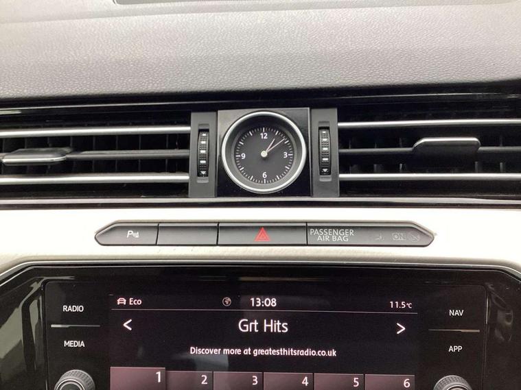 Piano black centre console, Full size alloy spare wheel, Alarm with interior protection, Anti-theft wheel bolts, Electronic engine immobiliser, Remote central locking with 2 remote folding keys, CD/MP3/WMA, USB and SD card reader, aux-in, DAB Digital radio, MDI with USB/iPod connection cables, Volkswagen media control, 3 rear 3 point seatbelts + pretensioners, ABS+EBD+Brake assist, Active bonnet, Driver/Front Passenger airbags, Driver/Front passenger WOKS head restraints, Drivers knee airbag, Electronic parking brake with auto hold, ESP with EDL + ASR, Front and rear curtain airbags, Front and rear seat side impact airbags, Front assist including city emergency braking, Front passenger airbag deactivation, Height adjustable front 3 point seatbelts + pretensioners, Hill start assist, Proactive passenger protection system, Two tone horn, Tyre pressure warning, Warning triangle, Auto dimming driver's door mirror, Auto dimming rear view mirror, Automatic activation of hazard warning lights, Automatic coming/leaving home lighting function, Automatic headlights with dusk sensor, Body colour bumpers, Body colour door handles, Chrome headlight surround, Chrome louvres in grille, Chrome side window surrounds, Dynamic light assist, Electric adjustable/heated/folding door mirrors, Front and rear electric windows, Front fog lights, Headlight range control, Headlight washers, Heated rear window, Heated windscreen washer jets, High beam assist, LED daytime running lights, LED headlights with dynamic curve lighting, LED rear lights, Matt chrome door mirrors, Rain sensor, Reverse activated kerb-view adjustment on passenger's door mirror, Side skirts with chrome inserts, Stainless steel door sill protection, Tinted rear windows, Trailer stability assist, Windscreen wipers/ intermittent wipe + 4 position delay, 12V Accessory socket in centre console, 12v socket in front centre armrest storage compartment, 2 bag hooks in luggage compartment, 3 rear head restraints, 3 spoke multi-function leather steering wheel, 3 Zone electronic climate control with automatic air recirculation, 60/40 split folding rear seat, Aluminium finish interior door handles, Ambient lighting, Cover for storage compartment in centre, Front + rear carpet mats, Front and rear interior lighting with delay and dimming function, Front centre armrest with storage box and rear air vents, Front cupholders x 2, Front footwell lights, Front seat and rear pockets, Gearshift paddles, Heated front seats, Height adjustable head restraints, Height/reach adjust steering wheel, Isofix system on outer rear seats, LED reading lights, Load through provision, Lockable, illuminated, cooled glovebox, Luggage compartment lighting, Mistral headliner, Nappa leather upholstery, Rear armrest with 2 cupholders, Removable luggage cover, Stainless steel foot rest, Stainless steel pedals, Storage box in luggage compartment, Storage compartment in driver's door, Storage compartment in passenger's door, Storage compartment in rear doors, Sunvisors with illuminated vanity mirrors, USB charging point, App-Connect, 'Lights On' Reminder warning buzzer, Active information display, Adaptive Cruise Control with pedestrian detection and speed limiter, Analogue clock, Door/tailgate open warning lights, Driver alert system, Driver profile selection, Lane assist, Press and drive key, Progressive power assisted steering, Remote tailgate release, Rev counter with fuel gauge, Service interval indicator, Touch screen display, Traffic message channel (TMC), Warning buzzer and light for front seatbelts unfastened,