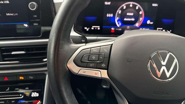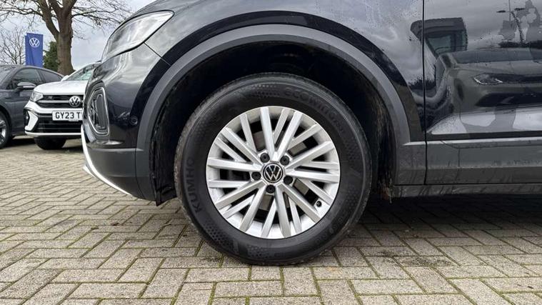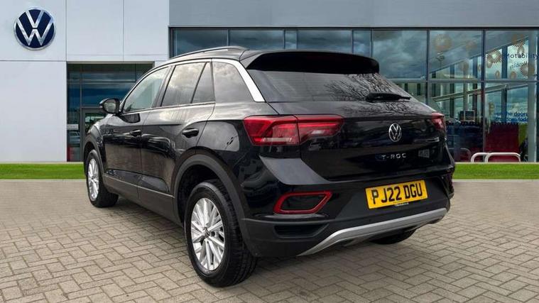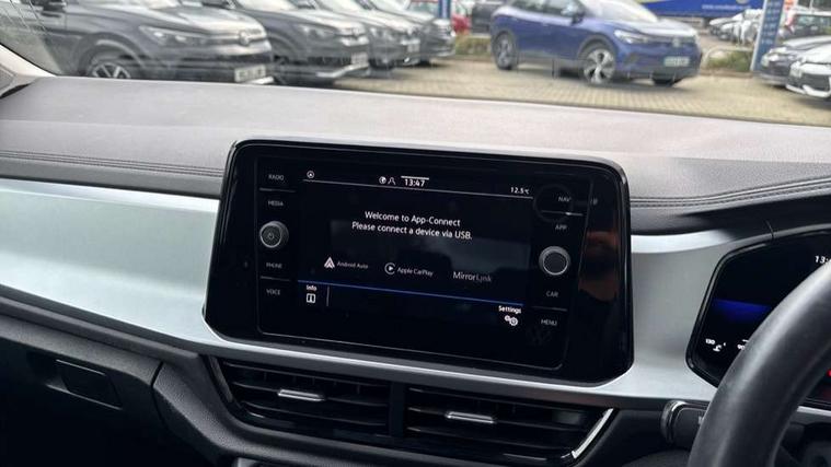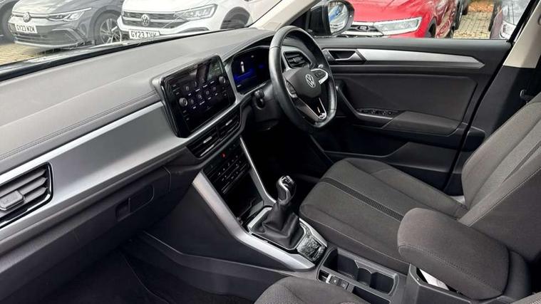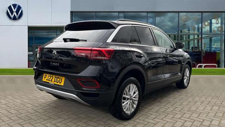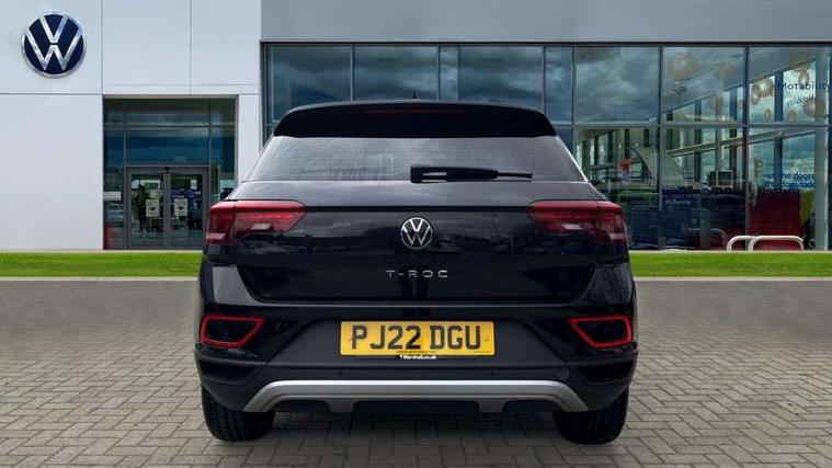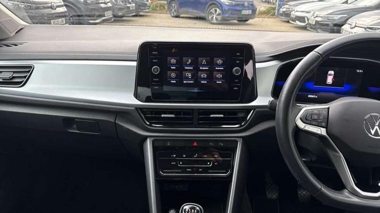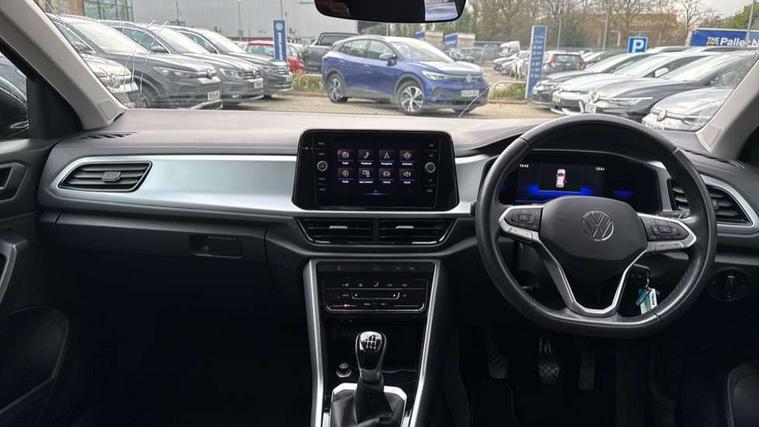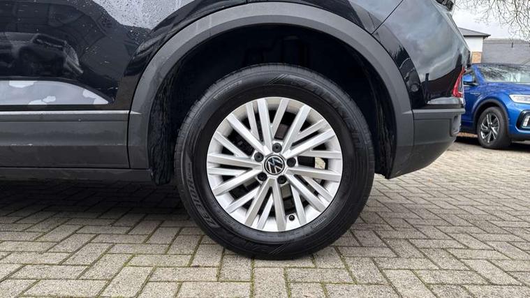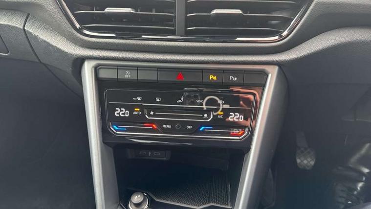 Bluetooth mobile phone interface, Driver alert system with fatigue detection, Driver tips and journey analysis, Emergency call service, Lane keeping system Lane Assist, Modified key software - reduce switch off time for key status change to Long no motion, Online services, Park assist including front and rear parking sensors, Power assisted speed sensitive steering, Service interval indicator, Tailgate/trunk lid release from outside, Think blue trainer driver tips and journey analysis, Warning sound and light for front seatbelts unfastened, Wireless app connect, Battery regeneration during braking, Front shock absorption, Rear shock absorption chassis with increased ride height, Start/stop function with battery regeneration, DAB Digital radio, Diversity antenna for FM reception, Front and rear 6 speakers, Music playback - MP3, WMA and AAC files, Premium USB cable in choice of either Apple or Android smartphone compatibility, SD card slot, Simultaneous pairing of 2 compatible mobile devices, Title and cover art display, We Connect and We Connect Plus functionality, 3rd brake light, Auto dimming interior rear view mirror, Automatic hazard lights activation under emergency braking, Automatic headlight control with LED separate daytime running lights with coming/leaving home function, Black roof rails, Body coloured bumpers and radiator grille with chrome trim and front fog lamps with chrome bezel, Body coloured exterior mirror housings and door handles, Extended roof spoiler, Exterior mirrors aspherical on driver side, convex on front passenger side, External USB type C socket and charging sockets, Front windscreen wiper with intermittent wipe and 4 position delay, Heated rear window, LED Headlights, LED rear combination lamps, LED rear number plate lights, LED tail lamp rear comination lamps, Power windows with comfort operation and circuit breaker, Rain sensor, Rear exhaust tailpipe, Rear fog light on one side and reversing lights on both sides, Rear side wing doors, Rear wash/wipe with intermittent wipe setting, Remote electrically foldable door mirrors, puddle lights and reverse activated passenger's door mirror, 12V power socket in centre console, 3 rear head restraints, 3 seat bench in 2nd row, 4 load lashing points in luggage compartment, Air care climatronic air conditoning system with active combination filter and 2-zone temperature control, Ambient lighting with mirror logo projection, Cloth upholstery, Door and side trim panel in cloth, Drawer under drivers seat, Driver/front passenger seat height adjustment, Front centre armrest, Front comfort sports seats, Front cupholders x 2, Front reading light, Instrument lighting, white adjustable panel illumination, Interior light delay, Isofix child seat preparation, Leather gearshift handle, Load-through provision with cup holder when folded down ('Unsplit rear seat bench, split folding backrest, with centre armrest), Luggage compartment lighting, Lumbar support for driver's and front passengers seat, Non-folding front passenger seat backrest, Single front passenger seat, Storage compartment in left and right luggage area, Storage compartment in rear doors, Storage compartments in driver and front passenger doors, Sunvisors with illuminated vanity mirrors, Variable boot floor, height adjustable and removable, Driver assistance pack without proactive passenger protection - T-Roc, 3 point height adj front seatbelts + pretensioners, 3 point seatbelts in outer rear with ECE label, ABS, Child locks on rear doors, Driver and front passenger airbag with front passenger airbag deactivation, Driver and front passenger safety-optimised head restraints, Drivers seatbelt reminder, Electronic parking brake, Electronic Stability Control (ESC) inc EDL (Electronic Differential Lock) and ASR (Traction Control), Front and rear passengers curtain airbag system including front side airbags, Front assist with city emergency braking and pedestrian monitoring, Front disc brakes, Front seat side impact airbags, Hill start assist, Predictive pedestrian protection, Rear disc brakes, Single tone horn, Tyre pressure loss indicator, Volkswagen roadside assistance, Alarm with interior protection, Anti-theft alarm system with interior monitoring, backup horn, and towing protection, Remote central locking with SAFELOCK, radio remote control with 2 remote control folding keys, Pewter matt decorative inserts for intrument panel and door panels at the front, Trims for alloy wheels,