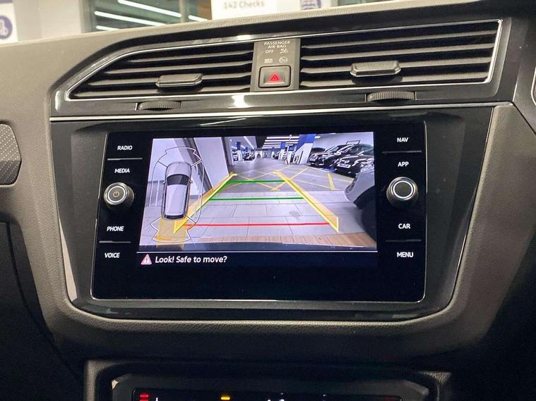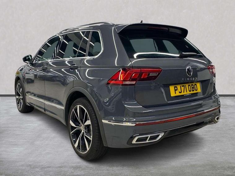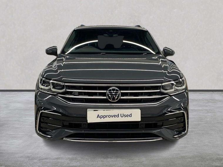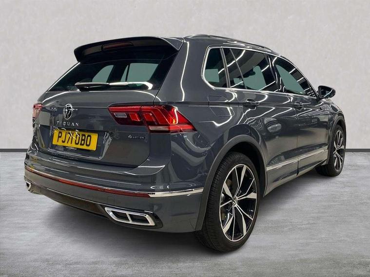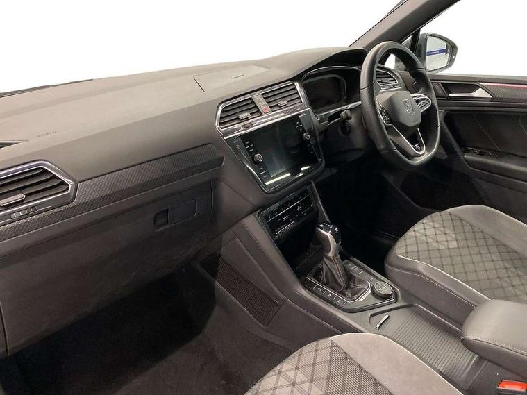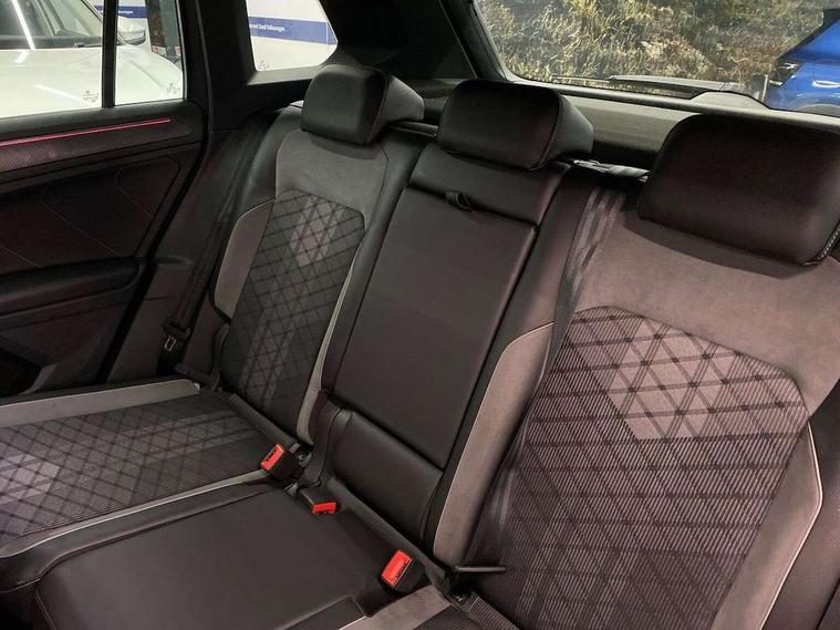 Ambience pack - Tiguan R Line, Driver assistance pack plus - Tiguan DSG, Park assist pack - Tiguan, 20" Misano black with diamond turned surface alloy wheels with Airstop tyres, Anti theft alarm system with interior monitoring, backup horn and towing protection, Anti theft wheel bolts, Electronic engine immobiliser, 2 USB-C ports in the front, 1 USB-C charging socket on the center console in the rear, Diversity antenna for FM reception, Radio, SD card slot, Simultaneous pairing of 2 compatible mobile devices, SMS functionality - read, compose and send SMS messages using touch-screen display, Title and cover art display, 3 point seat belt for centre rear seats, 3 point seat belts with seat belt pretensioners for the outer rear seats, Active bonnet, Curtain airbags for front and rear passengers, Driver/Front Passenger airbags, Drivers knee airbag, Electronic parking brake with auto hold, Electronic Stability Control with driver steering recommendation, ABS, ASR, EDL, EDTC and trailer stabilization, Front assist with autonomous emergency braking (for Adaptive Cruise Control ACC up to 130 mph), Front disc brakes, Front passenger airbag deactivation, Front side airbags, Height adjustable front 3 point seatbelts + pretensioners, Hill hold control, Manual child proof rear door locks, Pedestrian monitoring system, Power assisted brakes, Proactive passenger protection system in combination with front assist, Rear disc brakes, Rigid safety cell with front and rear crumple zones, Two tone horn, Warning sound and light for front seat belts if unfastened, Auto dimming interior rear view mirror, Automatic headlight control system, Black roof rails, Body colour door handles, Body coloured bumpers in R Line style, Body coloured door mirrors with integrated indicators, Chrome moldings on the side windows, Coming/leaving home lighting function, Dynamic headlight range control, Front and rear electric windows, Heated rear window, High level 3rd brake light, Laminated safety glass windshield, heat and sound insulating, LED rear number plate lights, License plate carrier in front and rear, Poor weather light and cornering light, Privacy glass for rear side windows and rear window, R Line body kit, R Line side sills, Rain sensor windscreen wipers, Rear exhaust tailpipe, Rear fog lamp, Rear side wing doors, Rear spoiler in R style, Rear windscreen washer and wiper with interval delay, Side and rear windows in heat insulating glass, Trailer Stability Programme, Unique R Line badging, Windscreen wipers/ intermittent wipe + 4 position delay, 12V outlet in center console rear and in luggage compartment, 12V outlet in front and tray, 2 cup holders in front, 2 LED front reading lights, 2 LED rear reading lights, 3 bench rear seats in 2nd row, 3 rear headrests, 4 load lashing points, 40:20:40 split folding rear seats, Air Care Climatronic 3 zone automatic climate control with enhanced air filter and controls in the rear, Backrest release for left front seat, Black headlining, Brushed stainless steel pedals and footrest, Carpet mats in front and rear with decorative stitching in Gray, Climate control unit rear with touch function, Door and side trim panel in foam film, insert in leatherette, Front centre armrest, Front footwell illumination, Front seats head restraints (x-adjustment), Height adjustable front seats, Height/reach adjust steering wheel, Instrument lighting white adjustable panel illumination, Interior light with delay, Isofix Preparation 2 Rear child seats, Leather gear knob, Lockable cooled glovebox, Luggage compartment lighting, Luggage net, Rear bench seat asymetrically split folding, longitudinally movable and folding with load-through hatch and center armrest, Remote unlocking for rear seat backrest, Removable luggage cover, Removable rear headrests, Safety optimised front head restraints, Single front passenger seat, Sliding/reclining rear seats, Standard rear seat release, Storage compartment in driver's door, Storage compartment in passenger's door, Storage compartment in rear doors, Storage compartments in luggage area left and right, Storage tray on dashboard, Sun visors with illuminated vanity mirrors, Tool kit, Top front comfort seats, Variable boot floor, height adjustable and removable, Adaptive cruise control ACC stop and go including speed limiter, App-Connect incl. App-Connect Wireless for Apple CarPlay and Android Auto, Bluetooth phone integration system, Digital Cockpit Pro - Active info display, Distance control assist, Driver alert system, Driver profile selection, Dynamic road sign display, eCall emergency call system, Electromechanical speed sensitive power steering, Engine start/stop button, Lane keeping system Lane Assist, Lights on warning, Multifunction front facing camera, Outside temperature display, Premium multifunction display with multi colour display, Remote control boot opening, Rev counter, Revision / skills operating concept travel assistant, Service interval indicator, Speed limit display, Start/stop system with regenerative braking, Trip computer, Warning sound and light for doors and tailgate open, All wheel drive - 4Motion, Battery regeneration during braking, XDS electronic differential lock for improved traction and handling,