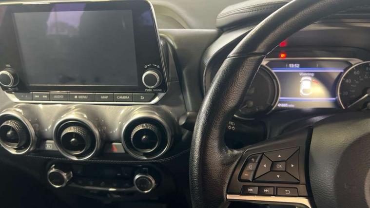 ProPilot pack - Juke, Alarm, Immobiliser, Intelligent key and start push button with walk away lock and approach unlock functions, Remote central locking, 10 Bose speakers 6 speakers and 2 headrest speakers for driver/passenger seats, Bluetooth system, USB, Aux-in and 12V socket, Bose personal sound stage control, DAB Digital radio, Rear console USB port, ABS with EBD and brake assist, Active ride control, Active Trace Control, Driver and passenger airbags, Driver and passenger side airbags, Electric handbrake with auto hold function, Electronic Stability Programme (ESP), Front and rear curtain airbags, Height adjustable seatbelts, Hill start assist, Intelligent emergency braking with pedestrian and cyclist recognition, Rear door child safety locks, Seatbelt reminder for driver/front passenger and rear seats, Single tone horn, Three 3 point rear seatbelts, Traction control, Tyre pressure monitoring system, VDC Dynamic Vehicle Control, Ventilated rear brake discs, 3rd brake light, Auto dimming interior rear view mirror, Auto headlights, Automatic hazard signal with emergency stop signal, Body colour bumpers, Body colour door handles, Electrically adjustable door mirrors with integrated indicators, Follow me home headlights, Front and rear electric window with one touch driver window, Heated and auto folding door mirrors, High beam assist, LED daytime running lights, LED front fog lights, LED headlamps, LED rear fog lamp, LED rear lamps, Rain sensor windscreen wipers, Rear privacy glass, Rear side wing doors, Rear spoiler, Rear wiper, Thermaclear heated windscreen, Three blink turn signal, 3 height adjustable rear headrests, 3 seat bench in 2nd row, 60/40 split folding rear seat, Automatic climate control, Card holder on driver sunvisor, Door ambient lighting, Driver and passenger sliding and reclining seats, Driver seat back pocket, Driver side rear coat hanger, Driver/passenger sunvisors and vanity mirrors, Front and rear cabin lighting, Front armrest, Front door pockets with bottle holders, Front head restraints, Front passenger isofix child seat anchorage point, Front/rear passenger grab handles, Gear console ambient circle lighting, Grey synthetic leather kneepad, Heated front seats, Height adjustable driver's seat, Height adjustable passenger seat, Internal chrome door handles, Leather gearshift knob, Leather steering wheel, Luggage board, Luggage space lighting, Monoform sporty seats, Multifunction steering wheel, Passenger seat back pocket, Rear door bottle holders, Single front passenger seat, Steering wheel mounted gearshift paddles, Synthetic leather upholstery, Telescopic steering wheel adjustment, Two cupholders in front centre console, Two rear isofix child seat anchorage points with top tether, Welcome light and console tray ambient lighting, 7" full colour TFT screen combimeter, Apple CarPlay and Google Android auto, Drive modes select (Eco, normal and sport), e-Pedal step, Emergency and breakdown call, EV mode selector, Front parking sensor, Intelligent lane intervention, Lane departure warning system, Nissan connect 8" touch screen entertainment system, Nissan connect nav with TomTom traffic, Nissan connect services and Wifi connection, Outside temperature sensor, Power Steering, Rear parking sensor, Traffic sign recognition, Trip computer, Voice recognition, Gasoline particulate filter,