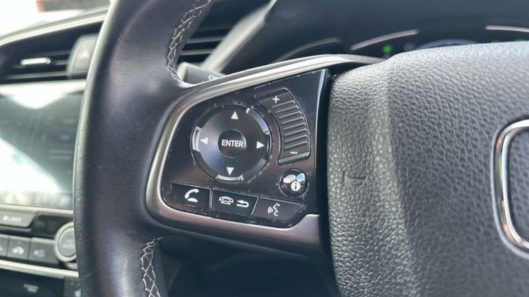 Tyre repair kit, ECU immobiliser, Honda super locks, Smart entry + Smart start, Ultrasonic alarm, 'Shark fin' mobile antenna, 2x USB and HDMI, Auxiliary socket for external MP3 player, Connect with Garmin sat nav, touch screen, internet radio/MP3/CD, Aha app, internet, Digital Audio Broadcast (DAB) Tuner, High power Audio system with 11 Speakers, Steering wheel mounted audio controls, 5 three point seatbelts, ABS+EBD+Brake assist, Anti-whiplash front headrests, Collision mitigation braking system, Deflation detection system, Dual front SRS airbags, Electronic parking brake with auto hold, Front and rear curtain airbags, Front seatbelt pretensioners, Front side airbags, Hill start assist, Passenger airbag deactivate switch, Tyre pressure warning, Auto dimming rear view mirror, Automatic coming/leaving home lighting function, Automatic headlights with dusk sensor, Automatic rain sensing wipers, Automatic retractable door mirrors, Black grille, Body colour door handles, Chrome window surround, Electric adjustable heated door mirrors, Electric front/rear windows/one touch operation, Front fog lights, Glass roof, High beam assist, LED daytime running lights, Power foldback door mirrors, Privacy glass, Rear wiper, Remote control door mirrors, Remote window closing, Alloy pedals, Ambient lighting, Boot light, Cargo hooks, Centre console storage and sliding armrest, Driver seat back pocket, Driver's electric lumbar adjustment, Driver's seat height adjustment, Dual climate control air conditioning system, Electric lumbar adjustment on passenger's seat, Front accessory power socket, Front map lights, Front/rear courtesy lights, Glovebox light, Heated front seats, Isofix system on outer rear seats, Leather gear knob, Leather steering wheel, Leather upholstery, Passenger seat back pocket, Rear armrest with cupholder, Sunvisors with illuminated vanity mirrors, Three height adjustable rear head restraints, Tilt/telescopic adjustable steering wheel, Tonneau cover, 7" touch screen, Adaptive cruise control, Apple car play/Android Auto, BLIS (Blind Spot Information System) with dual power heated blind spot mirrors, Blue dashboard illumination, Bluetooth hands free telephone connection, Colour driver's information system display, Easy fuel capless refuelling system, Electric power steering, Emergency stop signalling system, Forward collision warning, Front and rear parking sensors, Lane departure warning system, Lane keep assist, Rear parking camera, Speed limiter, Traffic sign recognition, Adaptive damping system, Vehicle stability assist,