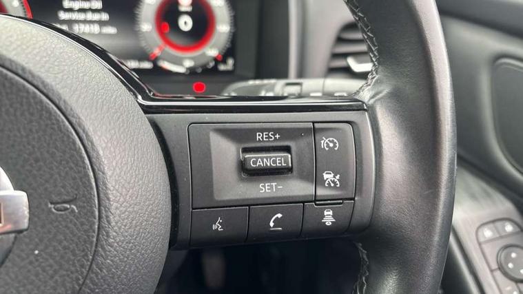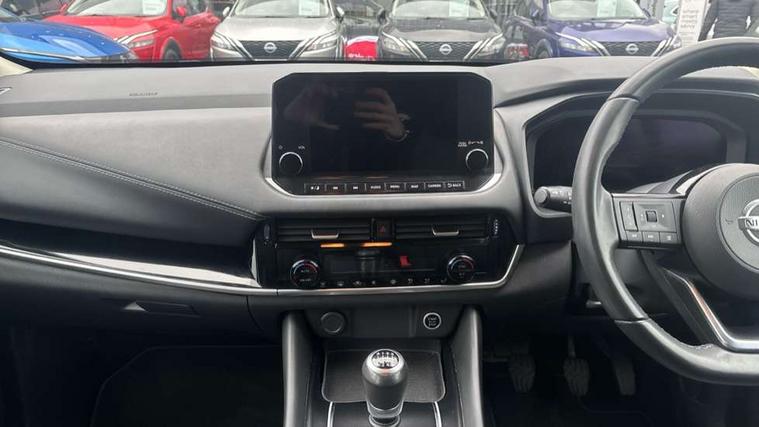 18" diamond cut alloy wheels, Capless fuel filler, Engine immobiliser, Nissan i-key, Rear bumper with silver insert, Remote central door locking with deadlocking, Thatcham Cat.1 alarm, 6 speakers, AM/FM audio system with DAB, Bluetooth audio streaming, Front USB connections (Type-A and Type-C), Rear USB charging only ports (Type-A and Type-C), 3x3 point rear seatbelt pretensioners + load limiters, ABS, ESP, EBD and brake assist, Active brake limited slip, Auto hold function, Child locks on rear doors, Curtain and front side, far side airbags, Driver and passenger airbags, Driver, passenger and 2nd row rear seat belt reminder, Electronic parking brake, Front seatbelt pretensioners + load limiters, Height adjustable front seatbelts, Hill start assist, Intelligent blind spot intervention, Intelligent front emergency braking with pedestrian, cyclist recognition and junction assist, Intelligent rear automatic braking, Tyre pressure monitoring system, Vehicle dynamic control, 3rd brake light, Auto dimming rear view mirror, Auto rear wiper when reversing, Body colour mirror caps, Body coloured door handles, Bodyside mouldings, Chrome side window finisher, Door handle with button, Electric auto folding door mirrors, Electrically adjustable and heated door mirrors with LED turn indicator, Follow me home headlights, High beam assist, Intelligent auto headlights, LED daytime running lights, LED Headlights, LED rear lights, One touch front and rear electric windows with remote opening and closing, Partially body coloured bumpers, Privacy glass, Rear reversing light (bulb lighting), Rear roof spoiler, Rear side wing doors, Rear styling plate, Shark fin antenna, Splash free rain sensing wipers, Super UV and infrared cut glass, Three blink turn signal, 12v power socket in dashboard and luggage, 2 way electrical driver lumbar adjustment, 2x Rear coat hooks, 3 bench rear seats in 2nd row, 3 rear headrests, 4 folding assist grip, 6 Luggage hooks - 4 on floor, 2 on side, 6-way manually adjustable driver's seat, 60/40 split folding rear seat bench, Ambient lighting around centre console, Centre console storage tray, Chrome interior door handles, Cloth monoform upholstery, Driver and front passenger sunvisors with illuminated vanity mirrors, Driver seat back pocket, Dual zone automatic climate control with pollen filter, Front and rear door storage, Front cupholders x 2, Front door with bottle holders, Glovebox with light, Hard trunk cover, Height adjustable front headrests, Leather shift knob, Leather steering wheel, Luggage board system, Luggage space lighting, Manually adjustable passenger (slide recline + lifter), Multifunction steering wheel, Passenger seat back pocket, PVC front centre console and armrest, Rear armrest with 2 cupholders, Rear door bottle holders, Single front passenger seat, Soft PVC kneepad, Steering wheel switches, Sunglasses holder, Tilt/telescopic adjustable steering wheel, Two rear isofix child seat anchorage points with top tether, Welcome light and console tray ambient lighting, 7" High definition full colour TFT screen combimeter, Blind spot warning, Drive modes (sport, normal, eco), Dusk sensor, Electric speed sensitive power steering, Emergency and breakdown call, Front and rear parking sensors, Google maps services - search, weather, 3D maps and Google street view, Idle stop/start system, Intelligent around view monitor, Intelligent Cruise control (ICC), Intelligent driver alert system, Intelligent forward collision warning, Intelligent lane intervention, Lane departure prevention, Lane departure warning system, Maximum speed limiter, Moving object detection, Nissan connect 9" touchscreen infotainment system, Nissan connect navigation, Push button starter, Rear cross traffic alert, Remote control services - door locks, lights, horn and car locator, Telematics - notifications and connectivity services, TomTom live traffic services, Traffic sign recognition with legal speed adjustment, Trip computer, Virtual personal assistant and firmware over the air capability, Wireless Apple CarPlay and wired Android Auto,