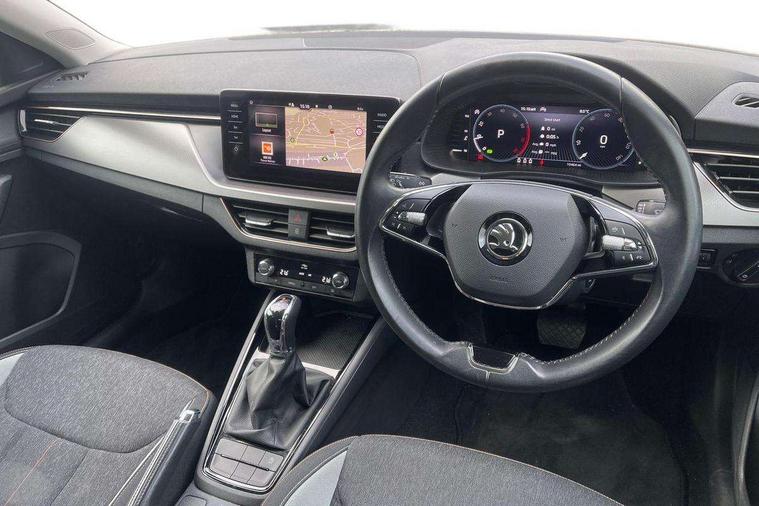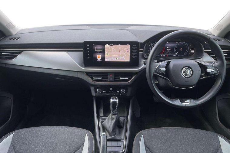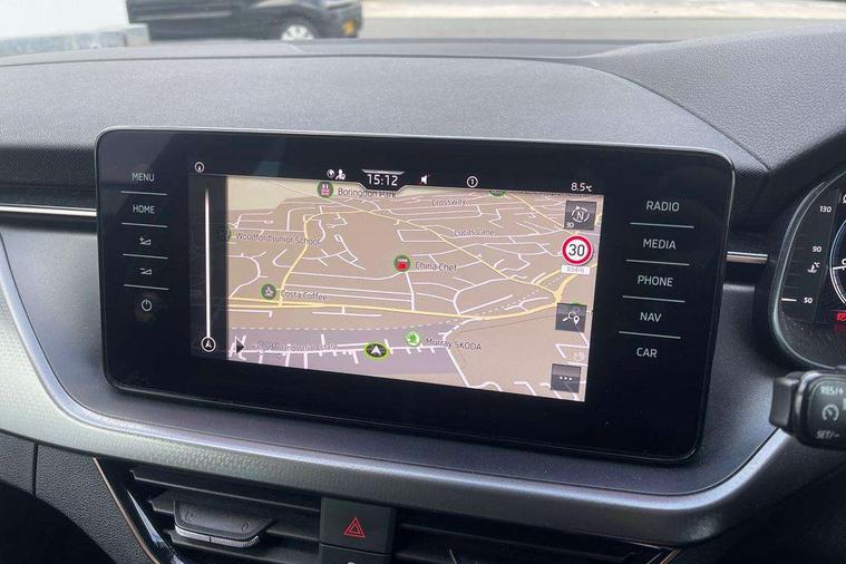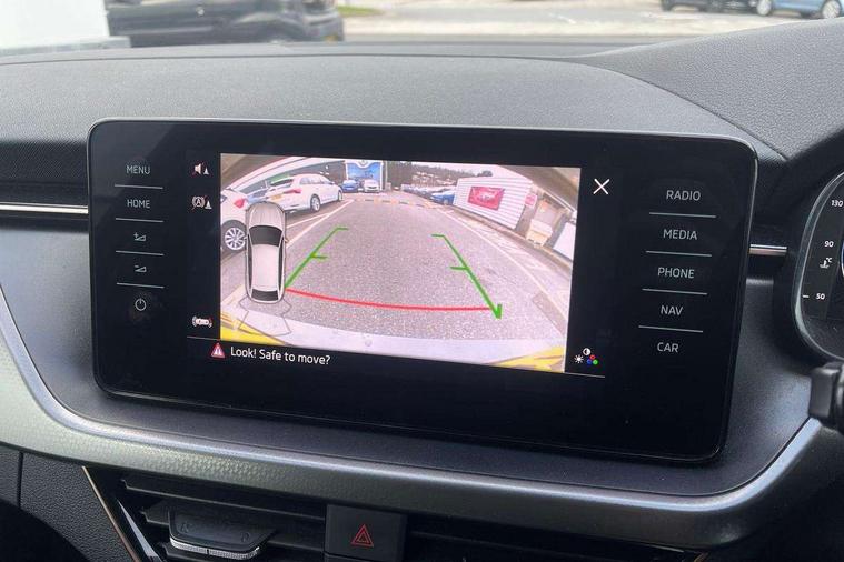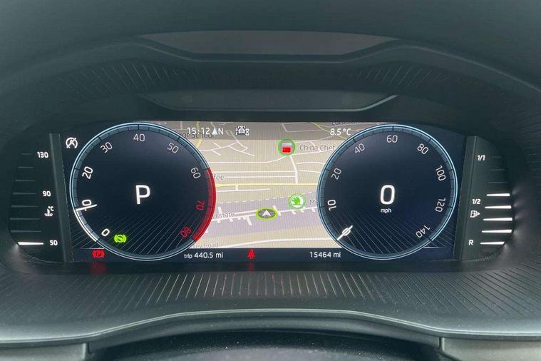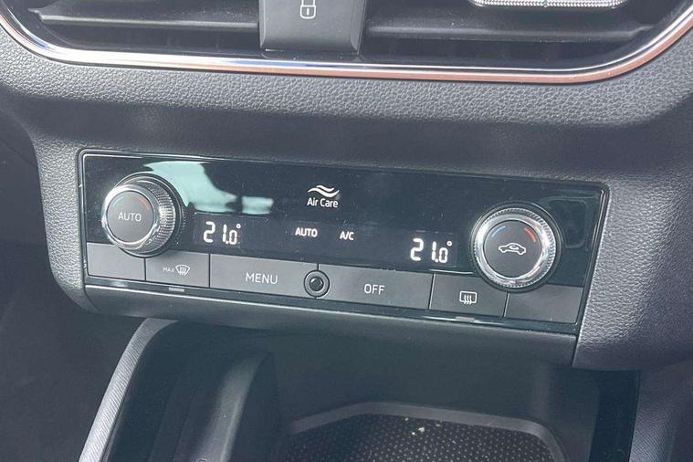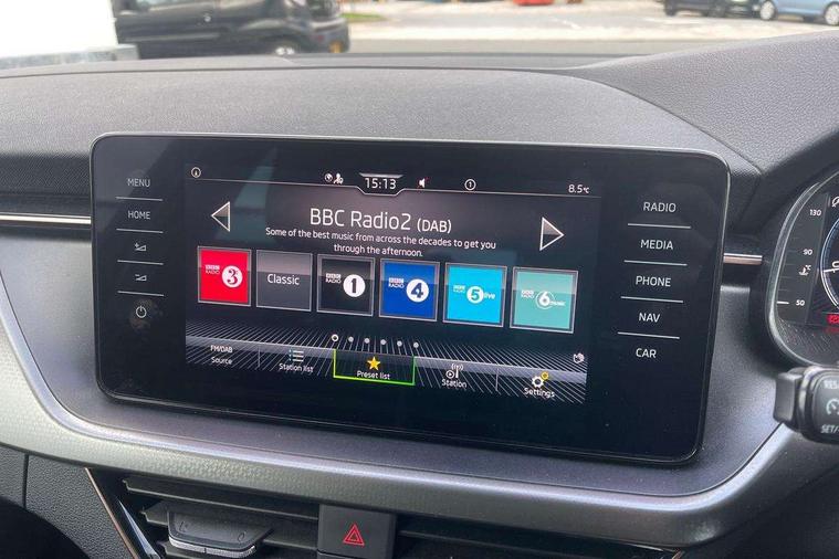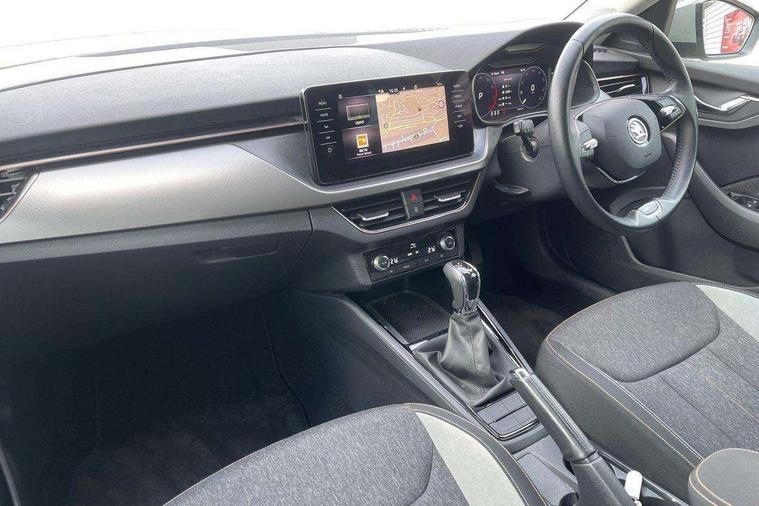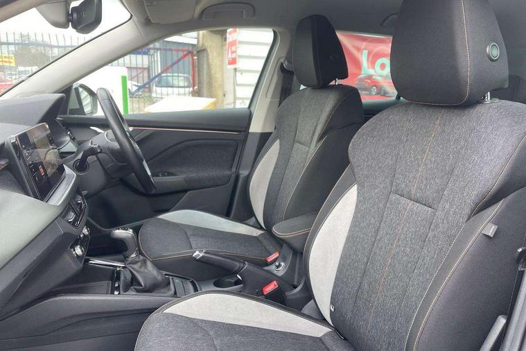Latice grey decorative insert with copper hot stamping, Temporary space saver wheel, Alarm, Anti-theft wheel bolts, Keyless entry with start/stop button, Remote central locking with 2 remote folding keys, SAFE function for remote central locking, 2 USB - C ports, 8 loudspeakers, DAB Digital radio, 3x3 point rear seatbelts, Curtain airbags, Emergency call and proactive services, Front head and side airbags, Hill hold control, One tone horn, Passenger airbag switch off function, Seat belt reminder for all seats, Automatic headlamp activation with Coming home and Leaving home feature, Body colour door mirrors and handles, Chrome grille surround, Electric folding door mirrors, Electrically adjustable and heated door mirrors, Front and rear electric windows, Front fog lights with cornering function, Privacy glass, Tinted windows, 12V Accessory socket in centre console, Chrome inner door handles, Chrome on gear and handbrake lever, Chrome strip on the dash and door panel, Dual zone climate control, Front head restraints, Glasses storage in roof liner, Instrument cluster with chrome painted decor ring, ISOFIX for rear passenger seat, Leather gearknob and handbrake lever, Manual lumbar support for front seats, Net in centre console, Reading lights for driver and front passenger, Sun visor with make up mirror for front passenger, Textile floor mats, Third rear headrest, Umbrella, Amundsen satellite navigation with 9.2" glass colour touchscreen with virtual cockpit, web radio, Android Auto, Bluetooth system, Colour multifunction trip computer, Easy light assist, Front assist system, PAS, Rain and light assist with auto dimming rear view mirror, Rear view camera, Speed limiter, Wireless SmartLink for Apple Car Play,