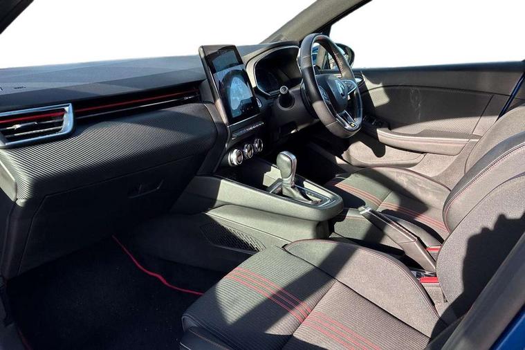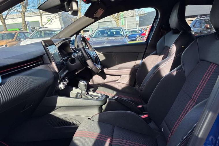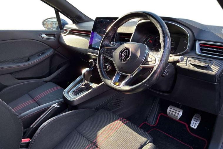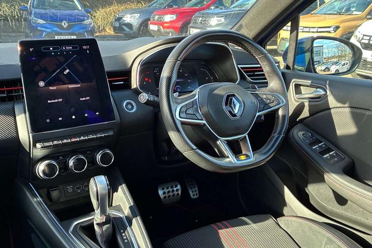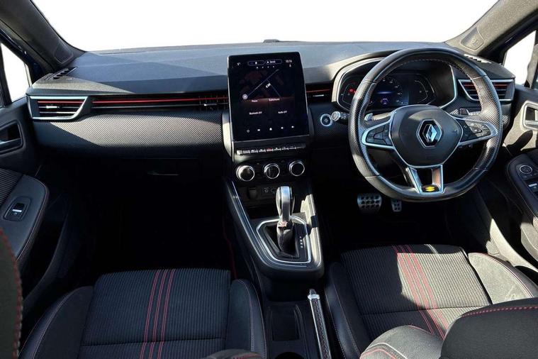 Parking Pack - Clio, 17" RS diamond cut alloy wheels, Anti-drill door locks, Central door locking, Child lock control of rear doors and windows, Deadlocking system, Hands free Renault card, Locking fuel filler cap, RAID (Renault Anti-Intruder Device) with automatic door locking, Remote central locking, Thatcham Cat 2 engine immobiliser, 4x20W Arkamys radio with bluetooth handsfree and USB, Aux-in socket, DAB Digital radio, Sound auditorium, 3 point seatbelts on all rear seats, ABS+EBD+Brake assist, Automatic emergency braking system, Curtain airbags, Distance warning alert, Driver and passenger front and side airbag deactivation, Driver/Front Passenger airbags, ESC - Electronic Stability Control + traction control, Front side airbags(head+thorax), Height adjustable driver's seatbelt, Hill start assist, Seatbelt warning, Tyre pressure warning, Automatic headlights + automatic windscreen wipers, Black headlamp surrounds, Body colour door handles, Body colour door mirrors, Body coloured bumpers, Body coloured rear spoiler, Chrome window surround, Drivers one touch window with anti-pinch feature, Electric adjustable/heated/folding door mirrors, Electric front windows, Electric rear windows, Exterior rear hidden door handles, Extra tinted glass on rear windows + tailgate, Full C-shape LED front and rear signature lighting, Full LED front and rear headlamps integrating daytime running lights at the front and rear, Gun Metal insert on lower side doors with Clio embossing, LED front fog lights, Rear fog lights, Rear wiper, RS Line badging, RS Line exterior styling, RS Line side marker chrome, RS Line sports front bumper, RS Line sports lower grill, Sports rear bumper sport with chrome oval exhaust pipe, Variable front intermittent wipers, 12V Accessory socket, 3 rear height adjustable headrests, 60/40 split rear seats, Air recirculation control, Auto climate control, Dark roof lining and aluminimum pedal set, Driver's seat height adjustment, Front cupholders, Front decor strip in red, Front door storage bin, Glovebox, Height adjustable front headrests, Height/reach adjust steering wheel, Isofix system on outer rear seats, Leather steering wheel, Multi function steering wheel, Pollen filter, RS branded top grain leather steering wheel, RS Line Interior trim including airvent stripe and gearshifter in red, RS line mixed upholstery, RS Line upholstery with TEP leather and vertical red stripes stitching, System for Restraint and Protection SRP-front seats, 9.3" Easy link navigation and smartphone replication, Bluetooth Handsfree Phone Connection, Cruise control + speed limiter, E-call, Eco mode, Gear change indicator, Lane departure warning system, Lane keep assist, Over speed prevention, Push button starter, Rear parking sensors, Smartphone cradle, Traffic sign recognition, Trip computer, Variable assistance electric PAS,
