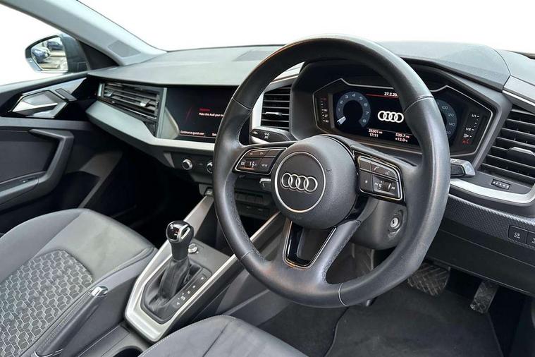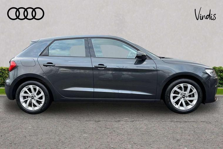 Aluminium trim for control switches, air vents and digital instrument cluster, Silver grey accent areas including air vents, door handle recesses and centre console in diamond paint finish, Slate grey inlays polygon structure in fine paint finish, Luggage compartment pack - A1, Anti theft alarm, Anti theft wheel bolts and loose wheel warning, Audi pre-sense front with pedestrain and cyclist recognition, Immobiliser, Remote central locking with 2 foldaway keys, 1 x SDXC card reader, 2 x USB type C connection points, DAB Digital radio, MMI radio plus with 8.8" colour MMI display screen and MMI touch, 3x3 point rear seatbelts, Brake assist function, Driver and front passenger airbag with front side and head airbags, Electronic Stability Control including ABS, EBD, ASR and EDL, Front passenger airbag deactivation switch, Hill hold assist, Manual rear child locks, Seatbelt height adjustment for front seats, Seatbelt monitoring, Tyre pressure warning light, Warning triangle and first aid kit, Auto dimming rear view mirror, Body coloured bumpers, Body coloured door mirrors, Electric front and rear windows, Electrically adjustable, heated, folding door mirrors with integrated LED side indicator, Front side air inlets in grained matt black and C frame in anthracite black, Heat insulating glass windscreen and side windows, Heated rear windscreen, High level LED brake light, LED headlights with LED rear lights + dynamic rear indicators + headlight adjustment and high beam, turning light + LED daytime running lights, Radiator grille and rear diffuser in matt anthracite black, Radiator protective grille frame in matt aluminium silver, Rain and light sensors, Rear fog lights, Rear side wing doors, Rear wing door, Rear wiper, Side front spoiler lips in grained matt black, 12V socket in centre console with two cup holders, 3 rear seats with headrests, 3 seat bench in 2nd row, 3 spoke leather multifunction plus steering wheel, 40:60 Split folding rear seat or folded fully, Door sill trims with aluminium inlay, Driver and passenger seat with manual height adjust with forward and backwards adjustment, Front head restraints, Front passenger seat, Front/rear floor mats, Grey cloth headlining, Height and reach adjustable steering wheel, ISOFIX child seat mounting for front passenger and outer rear seats including top tether attachment point of outer rear seats, Leather gear knob with aluminium trim, Leatherette handbrake grip, Luggage compartment light with front and rear reading lights, Manually adjustable lumbar support in front seats, Novum cloth upholstery with front sport seats, 10.25" Digital instrument cluster display classis style instrument dials + speed, odometer, time, outside temperature, telephone menu + fuel level warning, Audi drive select - power steering assistance + engine + gear shift 3 preset modes (auto, dynamic, efficiency and an Individual mode), Audi smartphone interface with connect compatible smartphone via USB directly MMI display + Nav, music, third party apps controlled via MMI controller, Automatic start/stop system, Bluetooth interface, Cruise control, Driver's information system, Electromechanical power steering, Emergency e-call, Emergency services call system, Lane departure warning system, Service interval indicator, Speed limiter, Voice control system, Washer fluid level indicator, Dynamic suspension,