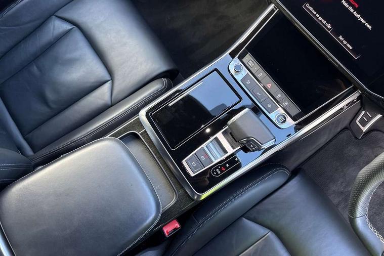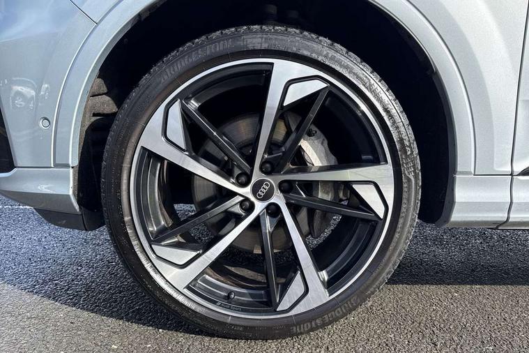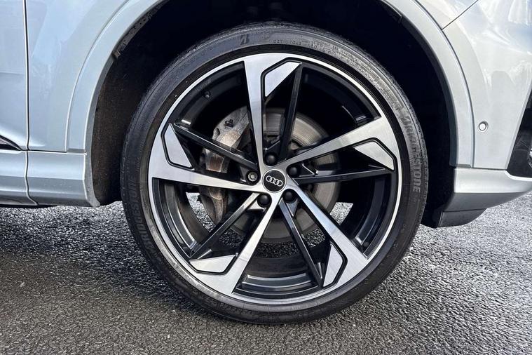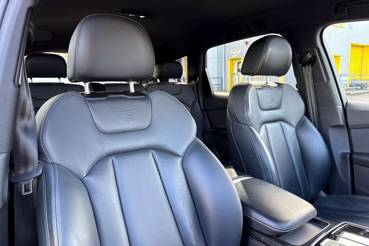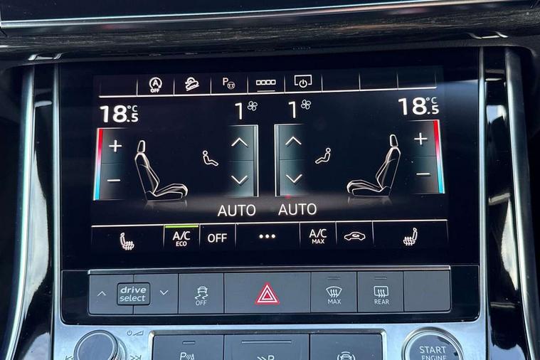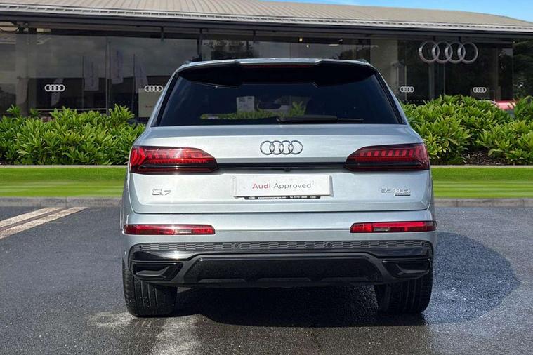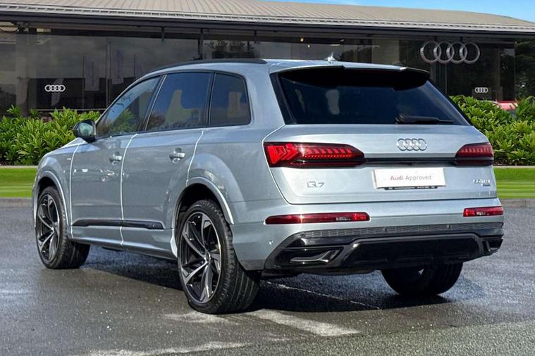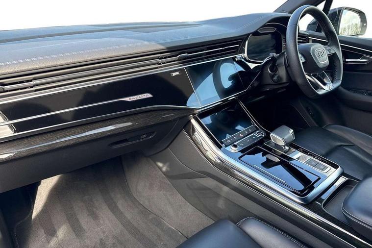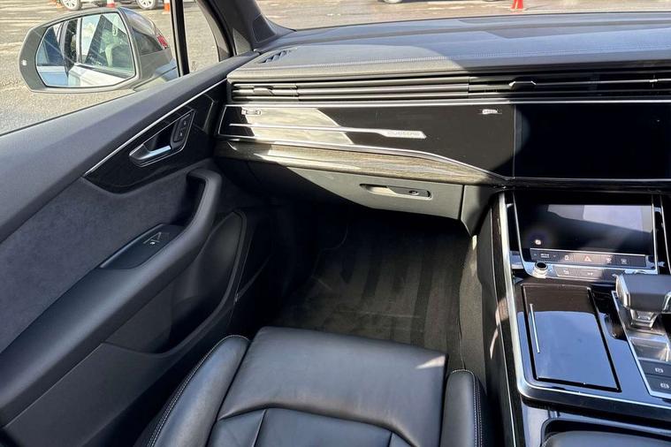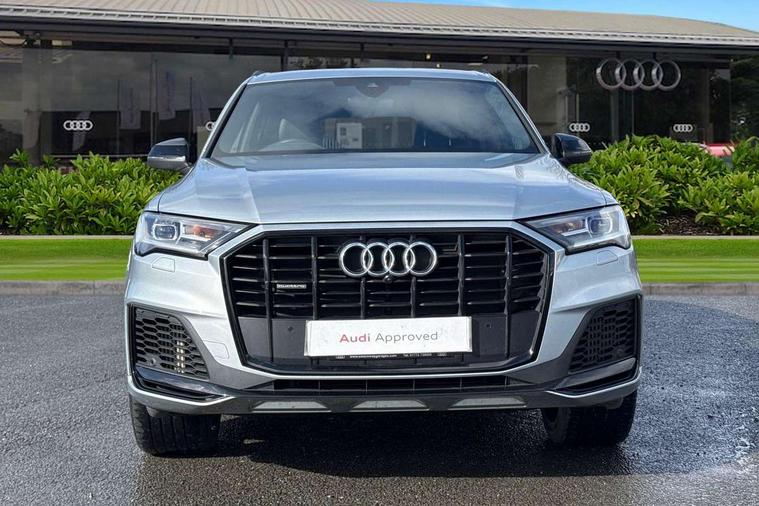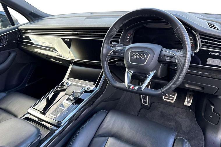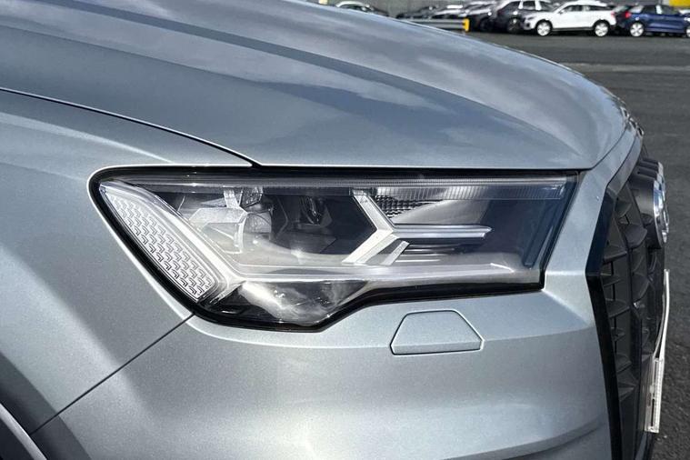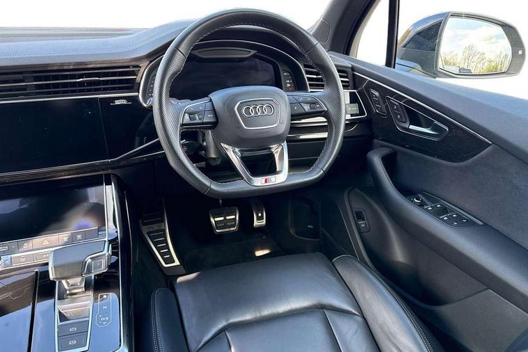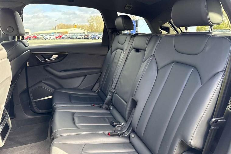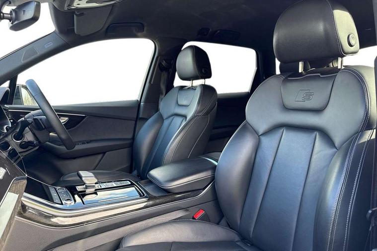 Polished oak trim with grey finished, Anthracite black styling pack - Q7/SQ7, Tyre repair kit, Anti theft alarm, Anti-theft wheel bolts and wheel loosening detection, Keyless Go, Remote central locking, Audi music interface - front 2 USB-C ports with charger and data functions, Audi sound system with 6 channel amplifier, 180 watt amplifying capacity and 10 loudspeakers including subwoofer, DAB digital radio module, 3 point seatbelts on all rear seats, Audi pre sense front, Child locks on rear doors, Driver and front passenger, front side and curtain airbags, Electromechanical parking brake, Electronic Stabilisation Control (ESC) including ABS, ASR and EDL, Extended pedestrian protection measures, Hill hold assist, Seatbelt monitoring, Tyre pressure loss indicator, Warning triangle and first aid kit, 3rd brake light, Auto dimming frameless rear view mirror, Black roof rails, Bumpers in contrast paint scandium grey finish includes door trim and wheel arch trim strips, inlays in door strip contain quattro embossing, Dark tinted Matrix LED headlights with dynamic front and rear indicators, Electrically adj heated/folding + automatically dimming exterior mirrors with memory + automatic kerb side function for passenger side exterior mirror, Heat insulating glass in windshield, Integrated LED indications in door mirrors, LED daytime running lights, LED rear tail lights, Privacy glass - dark tinted rear and rear side windows from B-pillar backwards, Rear side wing doors, Rear wiper, 2 seat bench in 3rd row, 3 seat bench in 2nd row, 4 zone deluxe automatic climate control, 7 seat layout with ISOFIX points for the front passenger seat and rear passenger seat, Black cloth headlining, Comfort front centre armrest, Electric adjustable front seat with 4 way lumbar support, driver memory functionality, Folding rear seats, Front head restraints, Front/rear floor mats, Heated front seats, Illuminated door sill trims with S logo, LED interior ambient lighting, Luggage compartment cover, Luggage compartment sill protection in stainless steel, Rear head restraints, Single front passenger seat, Stainless steel pedals, Sunvisors with illuminated vanity mirrors, Tool kit, Audi connect safety and service (e-call), Audi connect with Amazon Alexa Integration, Audi drive select (Auto, Comfort, Dynamic, Efficiency, Individual, Off-road and All road), Audi smartphone interface includes wireless Apple carplay/Android Auto, Audi virtual cockpit - 12.3" high-resolution LCD display with fully customisable instrument cluster, Bluetooth interface, Camera based traffic sign recognition, Electromechanical steering, MMI navigation plus with MMI touch screens includes 10.1" and 8.6" screens with haptic feedback, Natural voice recognition, Parking system plus with 360 degree display (front, rear and side sensors) - acoustic and visual park assist system, Power operated tailgate, Rear view camera, Start/stop system, 48V Mild hybrid technology, 85 litre fuel tank, Adaptive air sports suspension, Quattro all wheel drive with self locking centre differential,