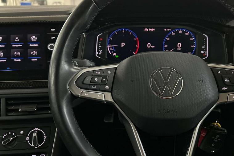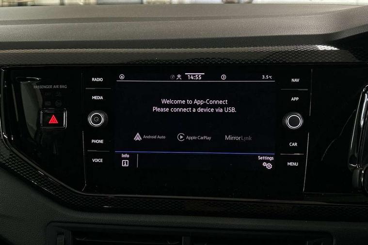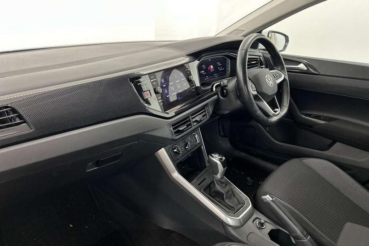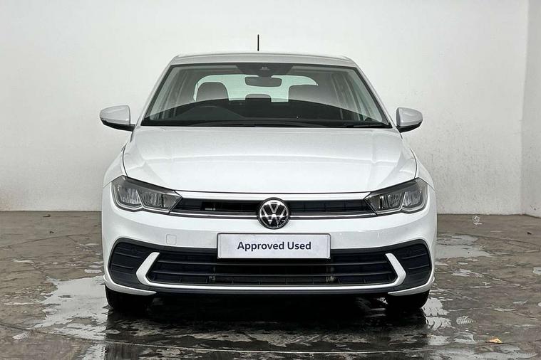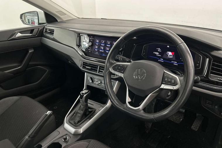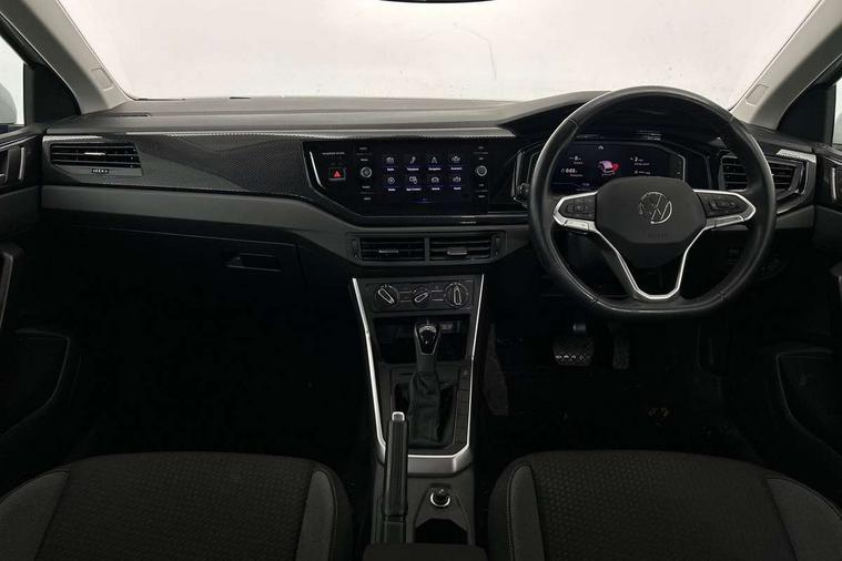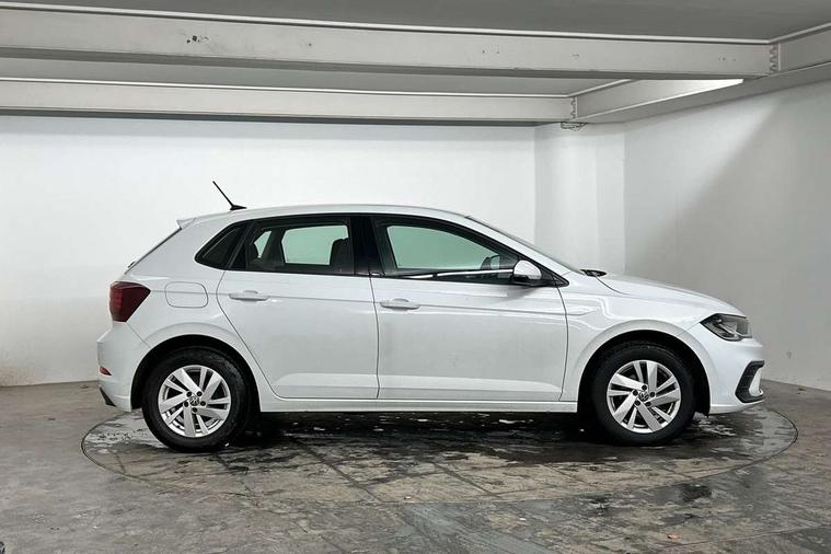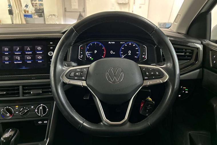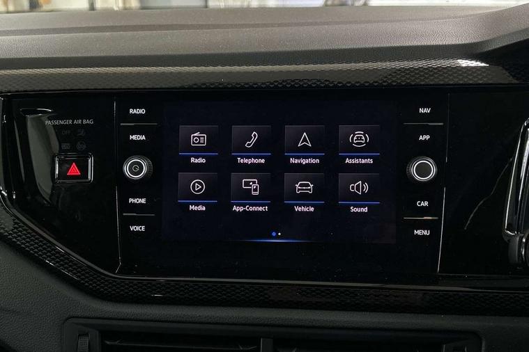 Lava stone black gloss/matt decorative inserts in dash and front door panels, Light and vision pack - Polo, Low rolling resistance tyres, Alarm with interior protection, Anti-theft alarm system with interior monitoring, backup horn, and towing protection, Anti-theft wheel bolts, Electronic engine immobiliser, DAB Digital radio, Diversity antenna for FM reception, Front and rear 6 speakers, 3 point height adj front seatbelts + pretensioners, 3x3 point rear seatbelts, ABS, Driver and front passenger airbag with front passenger airbag deactivation, Drivers and front passengers safety optimised head restraints, ESC (Electronic stability control) + EDL (Electronic Differntial lock) and ASR (Traction control), Extended and predictive pedestrian/ cyclist protection, Front curtain and side airbags with center airbag, Front disc brakes, Hill hold control, Manual child lock in rear doors, Rear drum brakes, Single tone horn, Tyre pressure loss indicator, Automatic dimming interior rear view mirror, Body colour bumpers, Body colour door handles, Body colour door mirrors, Chrome plated radiator grille inserts, air vent surrounds and light switch surrounds, Electric front windows, Heat insulating glass in side and rear windows, Heat insulating glass windscreen, Power folding adjustable/heated exterior mirrors and front passenger exterior mirror lowering function, Rain sensor, Rear electric windows, Rear fog light, Rear side wing doors, Rear windscreen washer and wiper with interval delay, Third brake light, 12V power socket in centre console, 2 front and 2 rear reading lights, 2 USB-C ports in the front, 2 USB-C charging sockets on the center console in the rear, 3 rear head restraints, 60/40 split folding rear seat and rear seat bench not split, Ceramique headliner, Door and side trim panel, Driver and front passenger seat height adjustment, Driver/passenger sunvisors with illuminated vanity mirrors, Front centre armrest, Front seat backrest storage pockets, Front standard seats, Handbrake lever handle in leather, Hartley/Thomas cloth upholstery, Isofix child seat preparation easy-fit (for two outer rear seats, and front passenger seat) compatible with I-size, Leather trimmed gear knob, Luggage compartment cover, Luggage compartment floor, Luggage compartment lighting, Single front passenger seat, Standard pedal cluster, Three spoke leather wrapped multifunction steering wheel with shifting paddles, Adaptive cruise control with follow-to-stop and speed limiter, Bluetooth mobile phone interface, Driver alert system, Emergency call service, Front assist system, Power assisted speed sensitive steering, Preparation for We connect and We connect plus, Speedo and rev counter, electronic odometer, trip, service interval display and fuel gauge, Standard rear axle, Travel Assist - Lane keeping system and traffic jam assist, Travel assist including emergency assist, Trip computer, Warning signal and warning light for front and rear seatbelts not fastened, Washer fluid level indicator, Wireless app connect, Front wheel drive, Rear shock absorpion, Start-stop system with battery regeneration (recuperation - energy recovery during braking),
