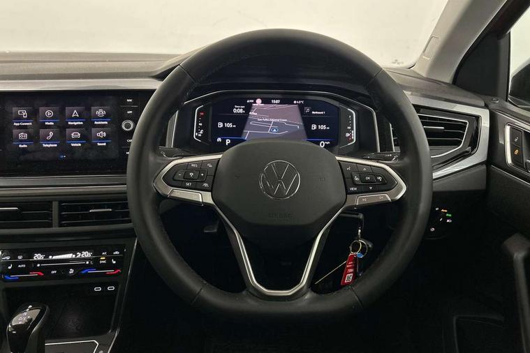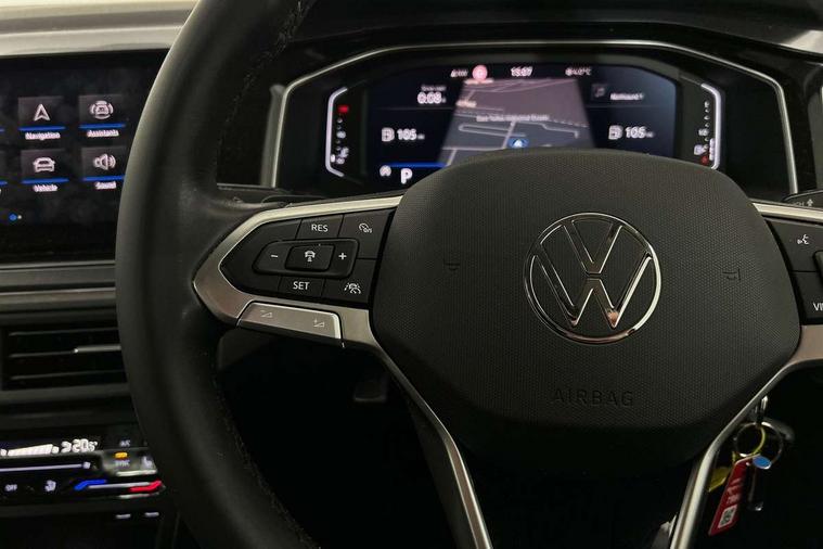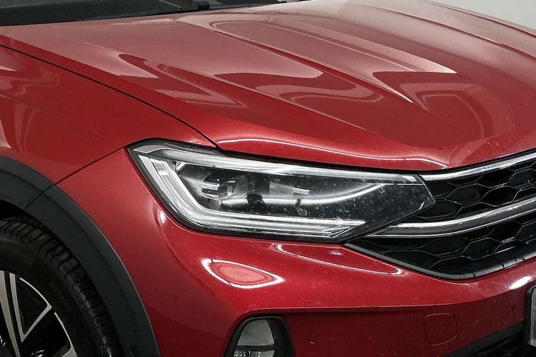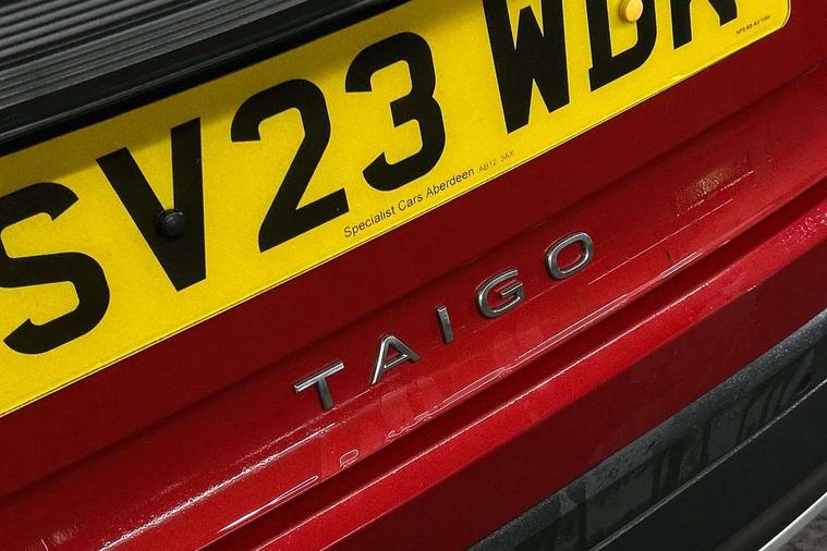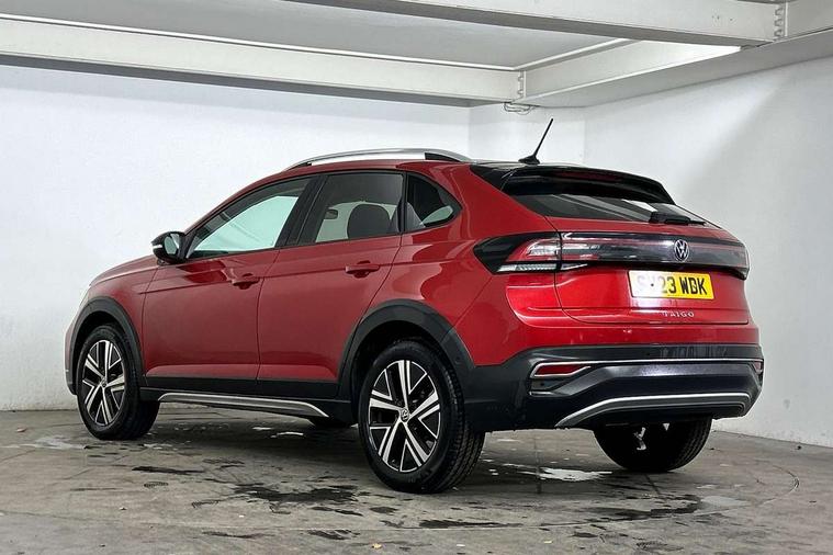 Chrome Package - Taigo, Drivers assistance pack - Taigo, Light and sight pack - Taigo, Low rolling resistance tyres, Anti-theft alarm system with interior monitoring, backup horn, and towing protection, Anti-theft wheel bolts, Digital radio reception (DAB+), Diversity antenna for FM reception, WeConnect plus, 2 x 3-point seatbelts/outer rear seats with ECE label, 3-point seat belts in front with pretensioner and height adjustment, 3-point seatbelt for centre rear seat, Driver and front passenger airbags with front passenger airbag de-activation, front side and curtain airbags, Driver and front passenger safety-optimised head restraints, Electronic stability control, Extended and predictive pedestrian/ cyclist protection, Front and rear disc brakes, Front curtain and side airbags with center airbag, Hill start assist, Manual rear child locks, Single tone horn, Tyre pressure loss indicator, Advanced high beam control dynamic light assist for LED matrix headlamps, Aspherical driver's exterior mirror, Body coloured bumpers and radiator grille with chrome trim and front fog lamps with chrome bezel, Body coloured exterior mirror housings and door handles, Dual chrome twin tailpipes on left and right, Dynamic headlight range control, Electric windows, Exterior ambient lighting in illuminated front grille, External USB type C socket and charging sockets, Front fog lamps with cornering function, LED matrix headlamps, LED rear combination lamp, LED third brake light, Left convex exterior mirror, Power folding adjustable/heated exterior mirrors and front passenger exterior mirror lowering function, Rear fog light on one side, reversing light on both sides, Rear side wing doors, Rear wash/wipe with intermittent wipe setting, 12V socket in centre console, 2 front reading lights, 3 rear head restraints, 3 seat bench in 2nd row, Air care climatronic air conditoning system with active combination filter and 2-zone temperature control, Ambient lighting with logo projection, Black carpets, Child seat anchor for child seat system i-Size, 2x top tether and child seat anchor in front on front passenger side, Chrome bezel for instrument cluster, vents, door handles + gear shift, Driver and front passenger seat height adjustment, Front + rear carpet mats, Front centre armrest, Front footwell illumination, Front sports comfort seats, Height and reach adjustable steering wheel, Interior ambient lighting and surround lighting, Leather trimmed gear knob, Leather wrapped multifunction steering wheel, Luggage compartment floor, Luggage compartment light, Lumbar support for driver's and front passengers seat, Single front passenger seat, Split folding backrest with centre armrest and unsplit rear seat bench, Storage compartment under front seats, Sun visors with illuminated vanity mirrors, App-Connect including App-Connect Wireless, Digital cockpit pro - 10.25" high resolution TFT dash display screen with customizable menus and information, Driver alert system, e-Call (emergency call), Power Steering, Travel assist including emergency assist, Washer fluid level indicator, Wireless Charging including Bluetooth, Rear shock absorption, Start-stop system with battery regeneration (recuperation - energy recovery during braking),
