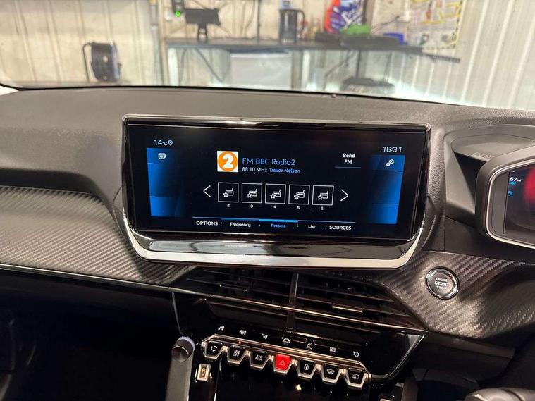 Carbon effect Dashboard, front and rear door panel finish, 16" Soho diamond cut alloy wheels, Tyre puncture repair kit, Acoustic vehicle alert system (AVAS), Automatic door locking when moving off, Automatic hazard light activation upon heavy brake application, Deadlock, Electronic code immobiliser, Thatcham cat. 1 alarm with anti lift sensor, 2 front USB socket with USB-C, 2x USB sockets in rear, 6 speakers radio with mp3 compatible, DAB Digital radio, Voice recognition for radio, navigation and telephony features, 2x Isofix child seat fitting on outer rear seats, 3 rear 3 point seatbelts, ABS (Anti-lock Braking System) with EBD (Electronic Braking Distribution) and EBA (Emergency Braking Assistance), Adaptive driver and front passenger airbags with passenger airbag deactivation function, Child locking functionality on rear doors, Driver/front passenger side airbags, Electric parking brake, ESP with Hill Assist, Front and rear curtain airbags, Front and rear disc brakes, Front optimised safety headrests and 3 x rear retractable headrests with height adjustable, Front three point retractable seatbelts with force limiters, Pedestrians active safety brake, Tyre pressure sensor, 2 X Rear number plate lights, Automatic lights, Automatic windscreen wipers, Body coloured exterior door handles, Dark tinted Rear side and tailgate windows, Eco LED headlights, Electric front windows + one touch + anti-pinch, Electric rear windows with one touch/anti-pinch, Electrically adjustable, heated and power folding door mirrors, Electrochrome rear view mirror, Extended diamond black rear spoiler, Follow me home headlights, Gloss black finish on B pillar, Gloss black rear cluster connecting strip, Gloss black window surround, Headlights left on audible warning, LED daytime running lights with 3 claw headlight with distinctive tooth design, LED side indicator lights integrated into door mirrors, Model designation badges front and rear, Nera black door mirror shells, Radiator grille chrome chequered, Rear bumper with gloss black finish, Rear full LED 3D peugeot signature claw effect lights with daylight function, Rear reversing lights, Rear windscreen wiper triggered automatically in reverse gear, Roof mounted aerial, Tailgate with heated rear windscreen and wiper blade, 1/3 to 2/3 split folding rear seats, 12V socket, Automatic air conditioning, Automatic gear lever in full grain leather and satin chrome, Black rods on rear headrests, Black wheel nut covers, Cobra drive selector, Driver and front passenger comfort seats, Driver and front passenger seat manual adjustment in longitudinal and back rest angle, Driver seat mechanical height adjustment, Electric power steering with reach and rake adjustable steering column, Front centre armrest with storage compartment, Front LED interior light with 2 reading spotlights and rear interior light with timer, High centre console with 2 cup holders, Leather steering wheel, Map pockets on the backs of the front seats, Piano keys gloss black plated toggle switches to access main functions of the vehicle, Push button finished in black with chrome circle, Roof lining - light grey, Seatbelt unfastened on the move audible and visual alert for front and rear seats, Tri material cloth/leather upholstery, Bluetooth telephone facility, Driver attention warning, Exterior temperature indicator with ice warning, Mirror screen with mirror link, apple carplay and android auto, Multi function trip computer, Peugeot connect SOS and assistance, PEUGEOT i-Cockpit with compact steering wheel, PEUGEOT i-Cockpit with configurable 3D headup instrument panel, Push button start, Rear parking sensors, Smart phone docking station, Speed limit recognition and recommendation, Visio Park 1 with 180 degree Colour reversing camera,