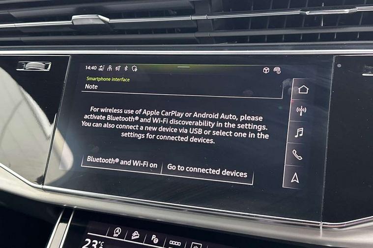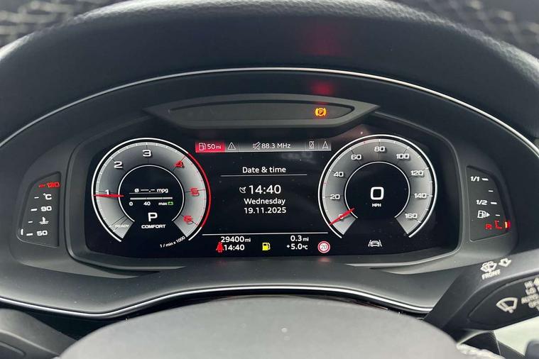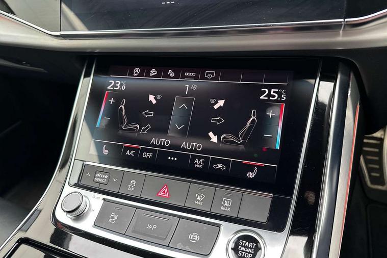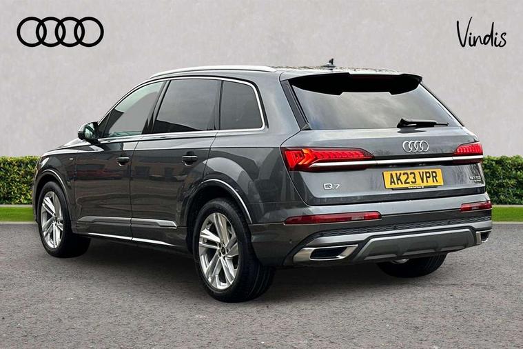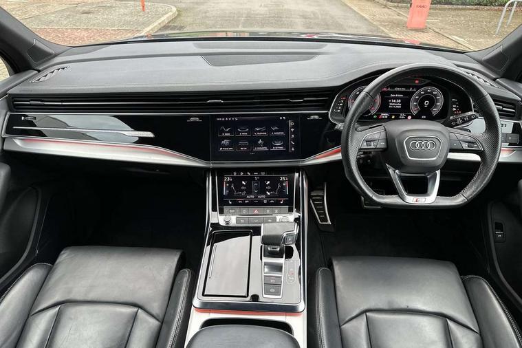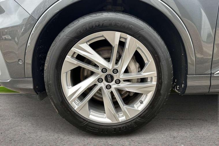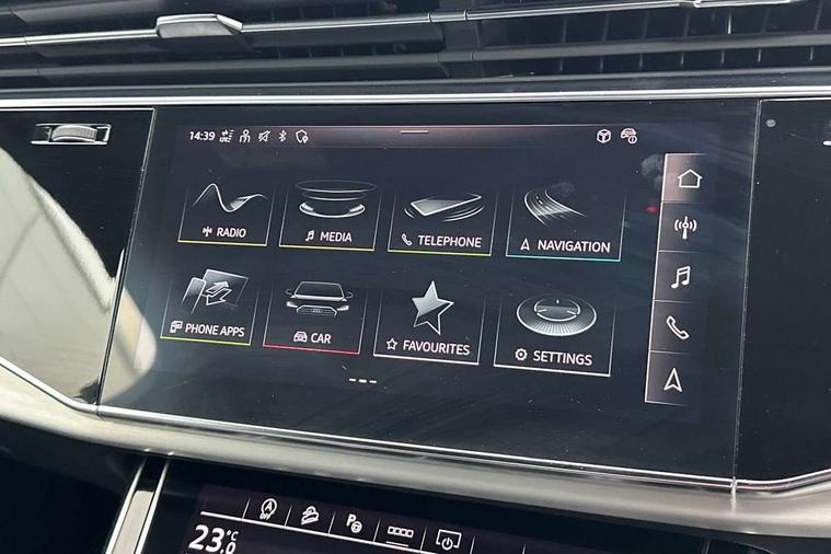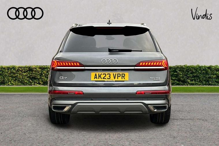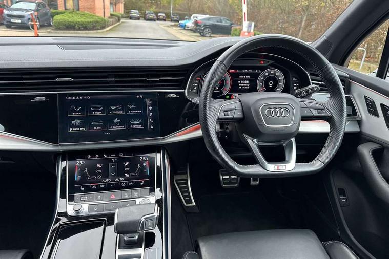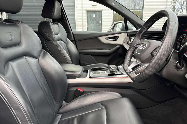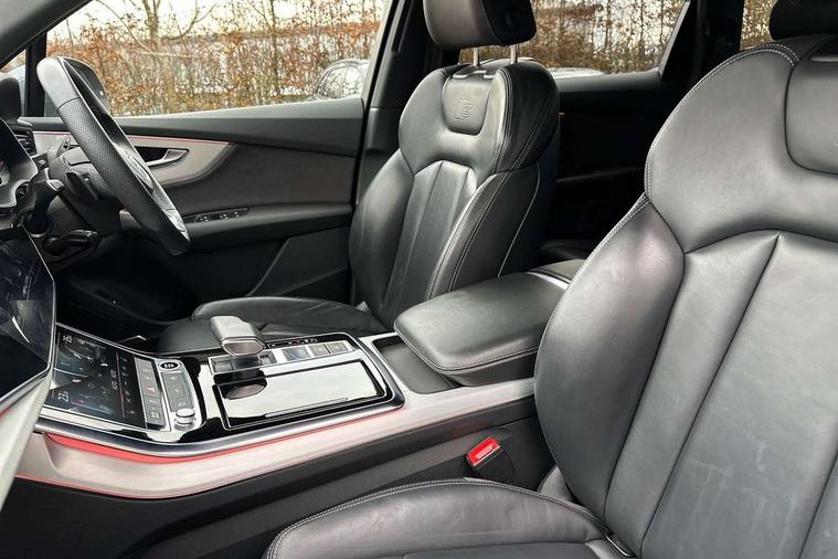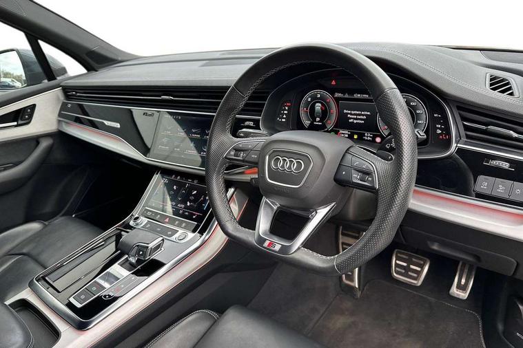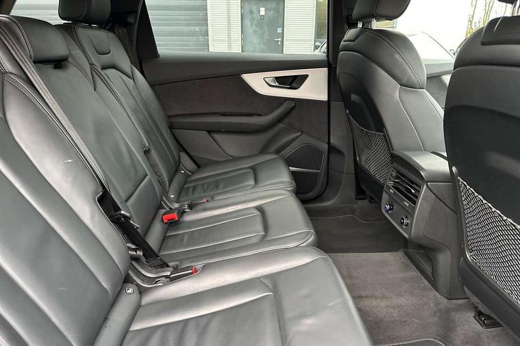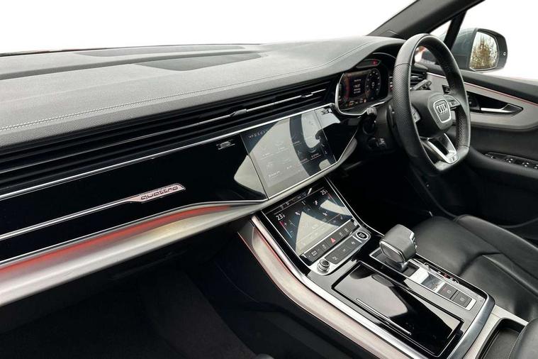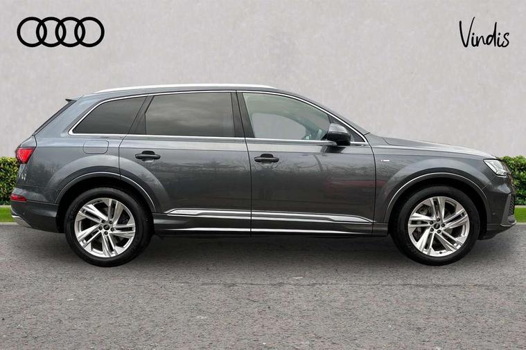 Darkened matt brushed aluminium inlays, Tyre repair kit, Anti theft alarm, Anti-theft wheel bolts and wheel loosening detection, Keyless Go, Remote central locking, Audi music interface - front 2 USB-C ports with charger and data functions, Audi sound system with 6 channel amplifier, 180 watt amplifying capacity and 10 loudspeakers including subwoofer, DAB digital radio module, 3 point seatbelts on all rear seats, Audi pre sense front, Child locks on rear doors, Driver and front passenger, front side and curtain airbags, Electromechanical parking brake, Electronic Stabilisation Control (ESC) including ABS, ASR and EDL, Extended pedestrian protection measures, Hill hold assist, Seatbelt monitoring, Tyre pressure loss indicator, Warning triangle and first aid kit, 3rd brake light, Aluminium roof rails, Aluminium window trim, Auto dimming frameless rear view mirror, Body coloured door mirrors, Bumpers in contrast paint scandium grey finish includes door trim and wheel arch trim strips, inlays in door strip contain quattro embossing, Dark tinted Matrix LED headlights with dynamic front and rear indicators, Electrically adj heated/folding + automatically dimming exterior mirrors with memory + automatic kerb side function for passenger side exterior mirror, Heat insulating glass in windshield, Integrated LED indications in door mirrors, LED daytime running lights, LED rear tail lights, Privacy glass - dark tinted rear and rear side windows from B-pillar backwards, Rear side wing doors, Rear wiper, S Line badge on wings, S line bumpers in full body colour paint finish, S line roof spoiler, S line styling side ventilation grilles and side skirts, 2 seat bench in 3rd row, 2 zone automatic climate control, 3 seat bench in 2nd row, 7 seat layout with ISOFIX points for the front passenger seat and rear passenger seat, Black cloth headlining, Comfort front centre armrest, Electric adjustable front seat with 4 way lumbar support, driver memory functionality, Folding rear seats, Front head restraints, Front/rear floor mats, Heated front seats, Illuminated door sill trims with S logo, LED interior ambient lighting, Luggage compartment cover, Luggage compartment sill protection in stainless steel, Rear head restraints, Single front passenger seat, Stainless steel pedals, Sunvisors with illuminated vanity mirrors, Tool kit, Audi connect safety and service (e-call), Audi connect with Amazon Alexa Integration, Audi drive select (Auto, Comfort, Dynamic, Efficiency, Individual, Off-road and All road), Audi phone box light with wireless charging, Audi smartphone interface includes wireless Apple carplay/Android Auto, Audi virtual cockpit - 12.3" high-resolution LCD display with fully customisable instrument cluster, Bluetooth interface, Camera based traffic sign recognition, Electromechanical steering, MMI navigation plus with MMI touch screens includes 10.1" and 8.6" screens with haptic feedback, Natural voice recognition, Parking system plus with 360 degree display (front, rear and side sensors) - acoustic and visual park assist system, Power operated tailgate, Rear view camera, Start/stop system, 48V Mild hybrid technology, Adaptive air suspension, Quattro all wheel drive with self locking centre differential,