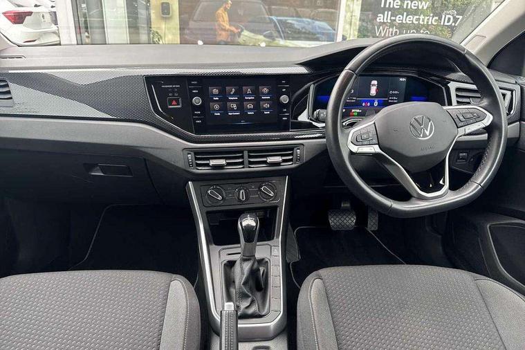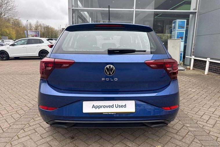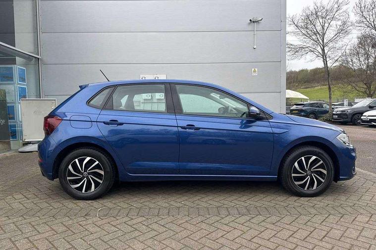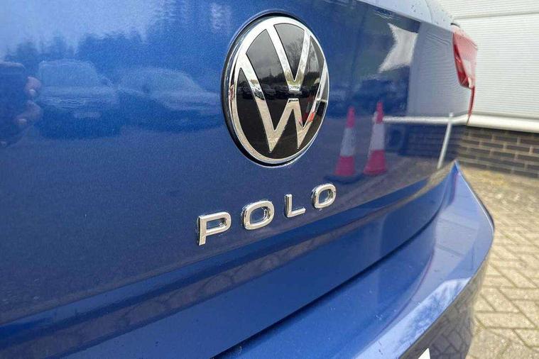 Lava stone black gloss/matt decorative inserts in dash and front door panels, Light and vision pack - Polo, Low rolling resistance tyres, Alarm with interior protection, Anti-theft alarm system with interior monitoring, backup horn, and towing protection, Anti-theft wheel bolts, Electronic engine immobiliser, DAB Digital radio, Diversity antenna for FM reception, 3 point height adj front seatbelts + pretensioners, 3x3 point rear seatbelts, ABS, Driver and front passenger airbag with front passenger airbag deactivation, Drivers and front passengers safety optimised head restraints, ESC (Electronic stability control) + EDL (Electronic Differntial lock) and ASR (Traction control), Extended and predictive pedestrian/ cyclist protection, Front curtain and side airbags with center airbag, Front disc brakes, Hill hold control, Rear drum brakes, Single tone horn, Tyre pressure loss indicator, Automatic dimming interior rear view mirror, Body colour bumpers, Body colour door handles, Body colour door mirrors, Chrome plated radiator grille inserts, air vent surrounds and light switch surrounds, Electric front windows, Heat insulating glass in side and rear windows, Heat insulating glass windscreen, Power folding adjustable/heated exterior mirrors and front passenger exterior mirror lowering function, Rain sensor, Rear electric windows, Rear fog light, Rear windscreen washer and wiper with interval delay, Third brake light, 12V power socket in centre console, 2 front and 2 rear reading lights, 2 USB-C ports in the front, 2 USB-C charging sockets on the center console in the rear, 3 rear head restraints, 60/40 split folding rear seat and rear seat bench not split, Ceramique headliner, Door and side trim panel, Driver and front passenger seat height adjustment, Driver/passenger sunvisors with illuminated vanity mirrors, Front centre armrest, Front seat backrest storage pockets, Front standard seats, Handbrake lever handle in leather, Hartley/Thomas cloth upholstery, Isofix child seat preparation easy-fit (for two outer rear seats, and front passenger seat) compatible with I-size, Leather trimmed gear knob, Luggage compartment cover, Luggage compartment floor, Luggage compartment lighting, Standard pedal cluster, Three spoke leather wrapped multifunction steering wheel with shifting paddles, Adaptive cruise control with follow-to-stop and speed limiter, Bluetooth mobile phone interface, Driver alert system, Emergency call service, Front assist system, Power assisted speed sensitive steering, Preparation for We connect and We connect plus, Speedo and rev counter, electronic odometer, trip, service interval display and fuel gauge, Standard rear axle, Travel Assist - Lane keeping system and traffic jam assist, Travel assist including emergency assist, Trip computer, Warning signal and warning light for front and rear seatbelts not fastened, Washer fluid level indicator, Wireless app connect, Front wheel drive, Rear shock absorpion, Start-stop system with battery regeneration (recuperation - energy recovery during braking),