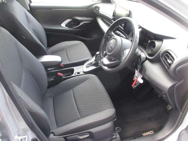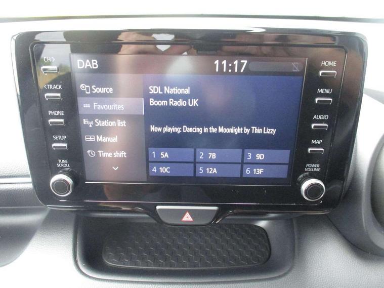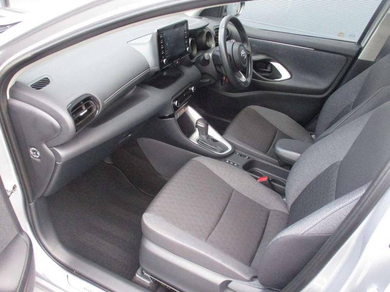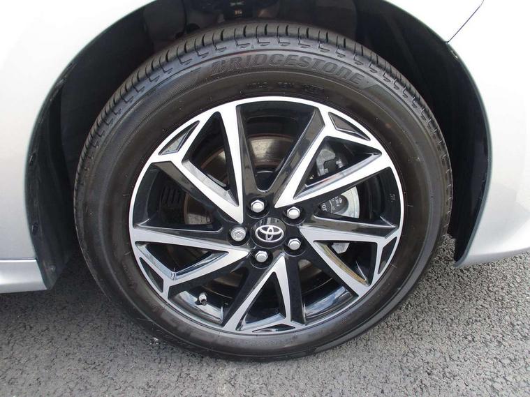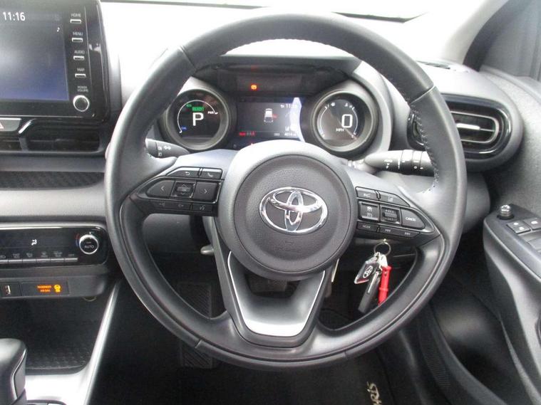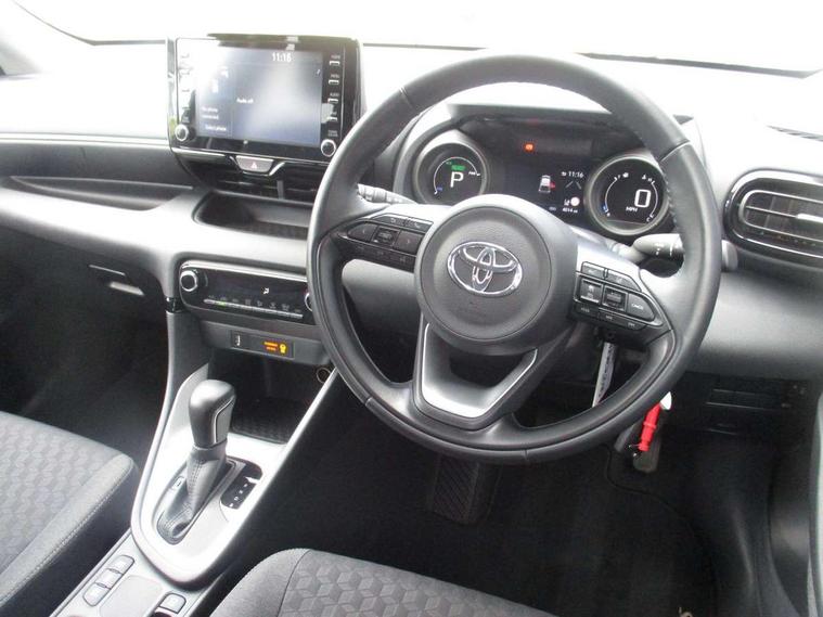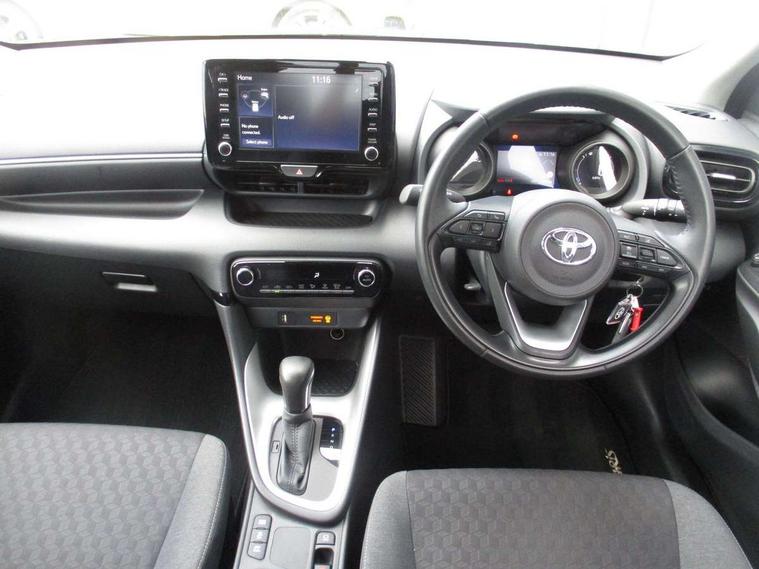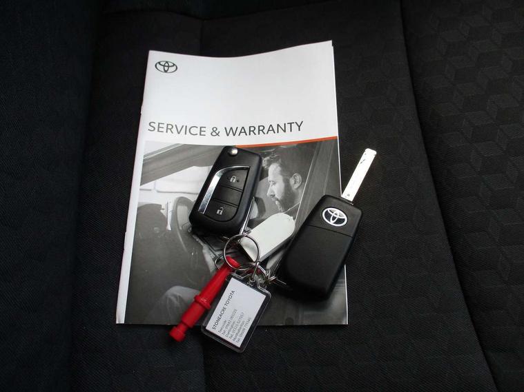 Soft touch instrument panel, Space saver spare wheel, 2x Master key, Alarm/immobiliser, Remote powered central double locking doors, 4 speakers, 8" Multimedia display touch screen, Toyota Touch 2 with DAB, USB connection, 3 point seatbelts on all rear seats, ABS+EBD+Brake assist, Active headrests, Electronic parking brake, Emergency brake light system (EBS), Front passenger airbag on/off switch, Front seatbelt reminder, Hill start assist control (HAC), Rear child proof door locks, Rear seat belt reminder, Supplemental Restraint System (SRS) 8 airbags: Driver & passenger's airbags, dual side curtain airbags, side impact airbags, front centre airbag, Toyota Safety Sense 2, Precollison + Night time Pedestrian & Cyclist Detection, Lane Trace Assist, Auto High Beam, Intelligent ACC & Road Sign Assist, Tyre pressure warning system, Acoustic windscreen glass, Auto windscreen wipers, Automatic headlights, Body coloured door mirrors, Electric adjustable heated door mirrors, Follow me home headlights, Front auto power windows with anti jam protection, Full LED rear lights, LED daytime running lights, LED front fog lights, LED front light guide, LED Headlights, LED High mounted stop lamp, LED Indicators, LED rear light guide, Manual headlight levelling, Painted chequered front grille, Rain sensor, Rear auto power windows with anti jam protection, Rear privacy glass, Rear side wing doors, Rear spoiler, Rear wiper, Shark fin antenna, Turning signal integrated indicators in door mirrors, 3 adjustable rear headrests, 3 spoke leather steering wheel, 60/40 split folding rear seat, Adjustbale boot height, Auto air conditioning, Coat hooks in rear grab handles, Cup holders (2 front & door), Data Communication Module (DCM) connected services, Fabric upholstery, Front armrest, Glovebox, Grey roof lining, Height adjustable driver's seat, Isofix seat fixing, Leather gearshift, Pollen filter, Shopping bag hooks, Single front passenger seat, Tilt/telescopic steering column, Adaptive cruise control, Adjustable speed limit with speed warning, Bluetooth connectivity, Colour binocular inspired displays with digital speedometer, E-call, Electric power steering, Hybrid energy display, Multi information display switches on steering wheel, Reversing camera, Smartphone integration with Apple CarPlay and Android auto, Voice recognition, Vehicle Stability Control (VSC),