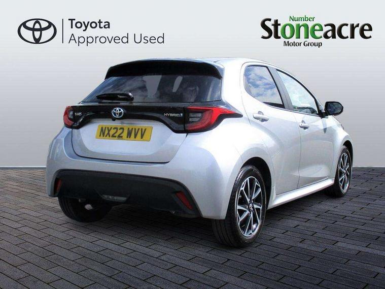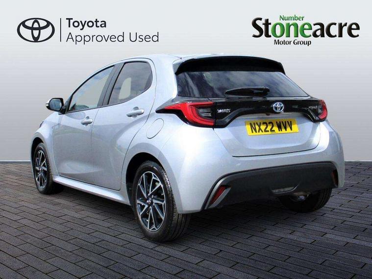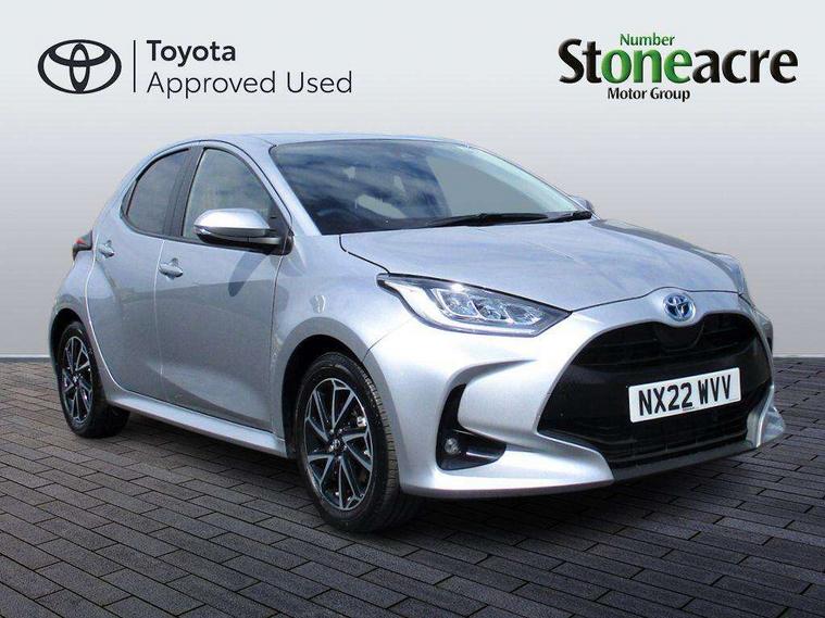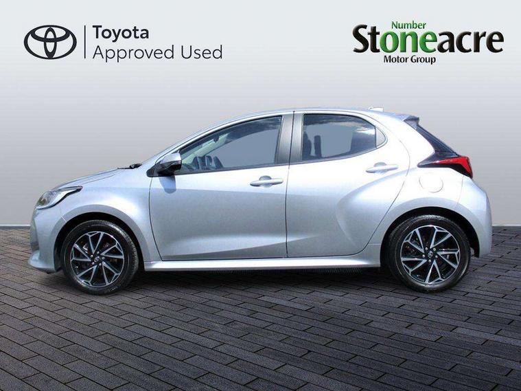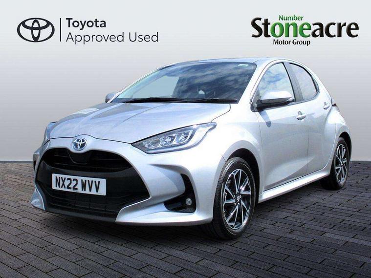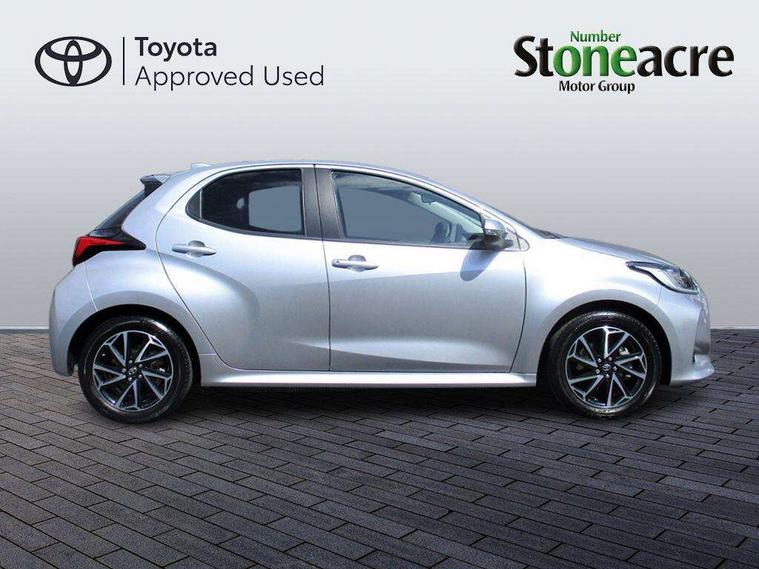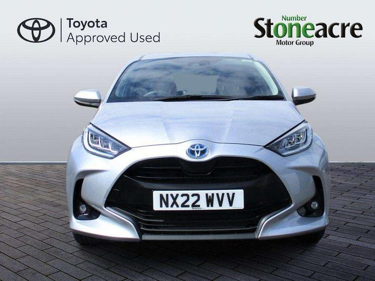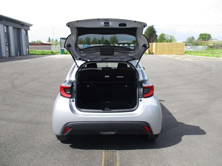 Soft touch instrument panel, Space saver spare wheel, 2x Master key, Alarm/immobiliser, Remote powered central double locking doors, 4 speakers, 8" Multimedia display touch screen, Toyota Touch 2 with DAB, USB connection, 3 point seatbelts on all rear seats, ABS+EBD+Brake assist, Active headrests, Electronic parking brake, Emergency brake light system (EBS), Front passenger airbag on/off switch, Front seatbelt reminder, Hill start assist control (HAC), Rear child proof door locks, Rear seat belt reminder, Supplemental Restraint System (SRS) 8 airbags: Driver & passenger's airbags, dual side curtain airbags, side impact airbags, front centre airbag, Toyota Safety Sense 2, Precollison + Night time Pedestrian & Cyclist Detection, Lane Trace Assist, Auto High Beam, Intelligent ACC & Road Sign Assist, Tyre pressure warning system, Acoustic windscreen glass, Auto windscreen wipers, Automatic headlights, Body coloured door mirrors, Electric adjustable heated door mirrors, Follow me home headlights, Front auto power windows with anti jam protection, Full LED rear lights, LED daytime running lights, LED front fog lights, LED front light guide, LED Headlights, LED High mounted stop lamp, LED Indicators, LED rear light guide, Manual headlight levelling, Painted chequered front grille, Rain sensor, Rear auto power windows with anti jam protection, Rear privacy glass, Rear side wing doors, Rear spoiler, Rear wiper, Shark fin antenna, Turning signal integrated indicators in door mirrors, 3 adjustable rear headrests, 3 spoke leather steering wheel, 60/40 split folding rear seat, Adjustbale boot height, Auto air conditioning, Coat hooks in rear grab handles, Cup holders (2 front & door), Data Communication Module (DCM) connected services, Fabric upholstery, Front armrest, Glovebox, Grey roof lining, Height adjustable driver's seat, Isofix seat fixing, Leather gearshift, Pollen filter, Shopping bag hooks, Single front passenger seat, Tilt/telescopic steering column, Adaptive cruise control, Adjustable speed limit with speed warning, Bluetooth connectivity, Colour binocular inspired displays with digital speedometer, E-call, Electric power steering, Hybrid energy display, Multi information display switches on steering wheel, Reversing camera, Smartphone integration with Apple CarPlay and Android auto, Voice recognition, Vehicle Stability Control (VSC),