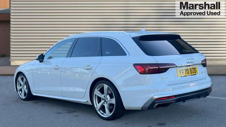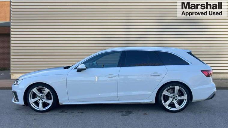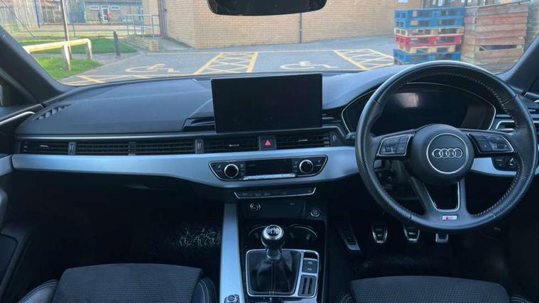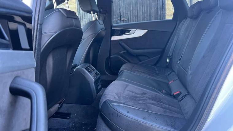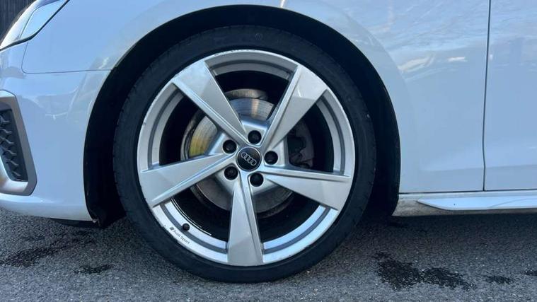 Matt brushed aluminium inlays, High gloss package - A4, LED Interior light pack - A4/S4, Tyre repair kit, Anti theft alarm, Anti theft wheel bolts, Keyless Go, 2 USB charging ports, 8 passive loudspeakers, DAB digital radio reception, 3 rear seatbelts, 6 airbags - Driver, front passenger, curtain and side windows, Electronic Stabilisation Control (ESC) including ABS, ASR and EDL, Hill hold assist, Multi collision brake assist, Pop-up bonnet for pedestrian protection, Pre sense city, Seatbelt monitoring, Warning triangle and first aid kit, Aluminium roof rails, Auto dimming rear view mirror, Body colour door handles, Body colour front spoiler lip, Body colour side sill trim, Body coloured door mirrors, Electrically folding auto dimming/adjustable/heated door mirrors with LED side indicators and kerb view function for passenger side, Grained matt black side air inlets with matt aluminium silver inlay, High beam assistant, Honeycomb structure radiator grille in grained matt black, LED headlights with LED rear lights + dynamic rear indicators + headlight adjustment and high beam, turning light + LED daytime running lights, Matt aluminium silver tailpipe trim, Privacy glass, Rain and light sensors, S Line badges on the front wings, S line front and rear bumpers with side skirts, S Line rear diffuser in matt titanium black with trim strip in matt aluminium silver, S Line roof edge spoiler, Windscreen with acoustic glazing, 4 way electric lumbar support for driver and front passenger, 40/20/40 split folding 3 rear seat bench in 3 parts with rear centre armrest, Black cloth headlining, Black perforated leather gearknob, Contrast stitching on seats, steering wheel and gear lever gaiter, Deluxe 3 zone electronic climate control, Door sill trims with aluminium inlay, Electric load area cover, Front and rear head restraints, Front centre armrest, Heated front seats, Illuminated door sill trims with S logo, ISOFIX child seat mounting and top tether, Manual seat adjustment, Stainless steel pedals and foot rest, Tool kit, Audi connect safety and service (e-call), Audi drive select, Audi parking system plus with front and rear sensors, Audi smartphone interface, Audi virtual cockpit, Automatic start-stop system with coasting functionality and efficiency programme, Bluetooth interface, Cruise control system with speed limiter, Electromechanical power steering, MMI Navigation plus with MMI touch includes 10.1" high resolution colour MMI display, 3D map, Power operated tailgate, Rear view camera, Voice control system, 54 litre fuel tank, Sports suspension lowered by 23mm,