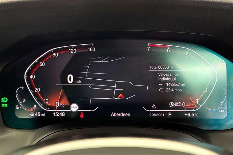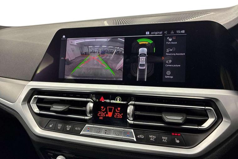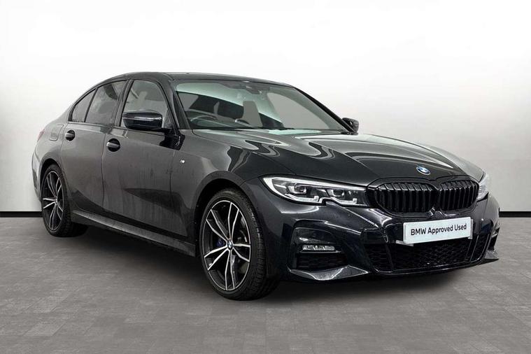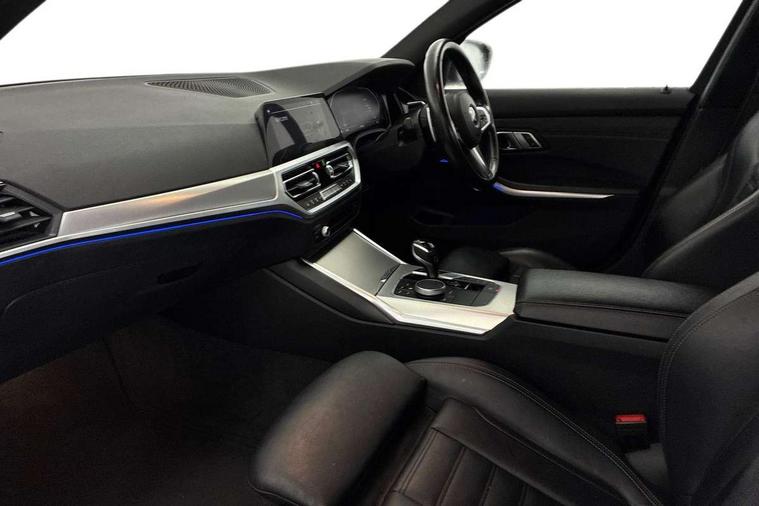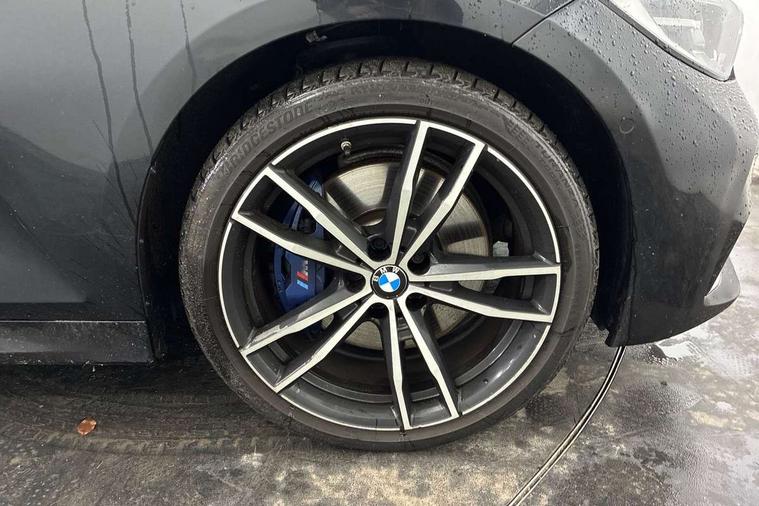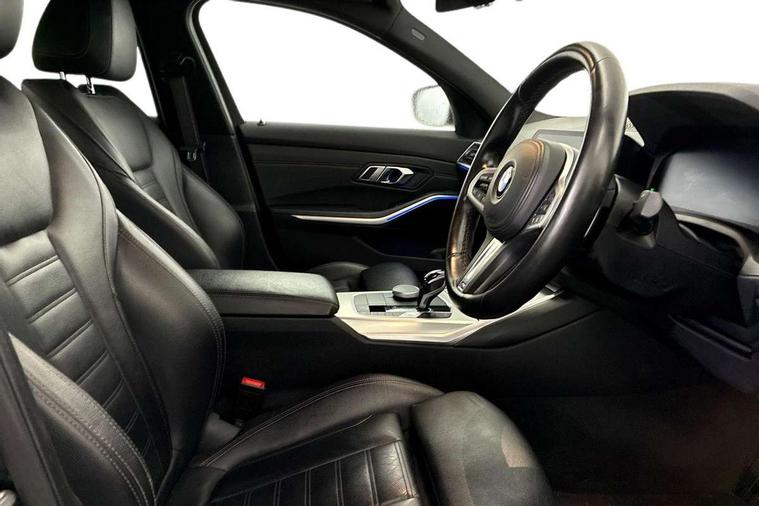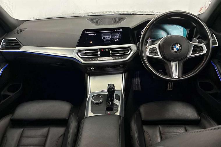 Connected pack professional - 3 Series Saloon/Touring, M Aerodynamics pack - 3 Series Saloon/Touring, Reduced rolling resistance tyres, Alarm system (Thatcham 1) with remote control and electronic engine immobiliser, Central locking switch for all doors, fuel filler cap and luggage compartment, Remote control with integrated key one button open/close vehicle and windows, sole opening of the luggage compartment lid and panic mode, Selectable automatic lock when driving away, Start/stop button with Comfort Go keyless engine start and auto Start/stop deactivation button, Vehicle key with M specific designation, DAB tuner, 2 tone horn, ABS, Automatic Stability Control (ASC), BMW emergency call, Brake assist function, Brake drying, Brake energy regeneration, Braking pre-tensioning, Child proof locking system in rear door, Child seat ISOFIX attachment rear outer seats, Cornering brake control (CBC), Crash sensor activating of airbags, Unlocking doors, hazard warning lights, fuel cut off, interior lighting+activation of safety battery terminal clamp, Driver and front passenger side airbags, integrated in the door side seat backrest bolsters for all seat variants, Driver/Front Passenger airbags, Dynamic brake control, Dynamic Traction Control - DTC, Electromechanical parking brake with automatic drive away release and auto hold function, Front passenger manual airbag deactivation, Head airbags for all 4 outer seats, Hill start assist, Seat belt security check for driver and front passenger, Side impact protection, Three 3 point seat belts on all seats including front belt stopper, pyrotechnic belt tensioners and belt force limiters, Tyre pressure monitoring with three level warning strategy, Variable torque distribution, Ventilated front and rear disc brakes, Warning triangle and first aid kit, Acoustic glazing, Active airstream chrome frame kidney grille with 8 high gloss black vertical slats, Automatic headlight beam throw control with load dependent regulating reaction, dynamic compensation of braking dive and acceleration squat, Black roof mouldings, Body colour - fuel filler flap, front and rear bumpers, door handles and mirror caps with integrated turn indicator + bottom segment in matt black, Dynamic brake lights, Extended LED headlights, Exterior mirrors - electrically folding with anti-dazzle, Front and rear bumper system with replaceable deformation elements, Front and rear electric windows with open and close fingertip control, anti trap facility and comfort closing, Front black door sill finishers with BMW designation, Green tinted heat protection glazing, High gloss shadow line exterior trim, Interior rear view electrochromatic mirror with automatic anti dazzle function, LED front fog lights, Left and right split exhaust tailpipes, Lightweight engineering, M aerodynamic body styling, M designation on left and right front side panels, M designation side badges, Matt black exterior B pillar, Model designation on right side of tailgate, Rain sensor with automatic headlight activation, Shark fin antenna, Two part LED tailights in L-shape with components in smoked glass, brake light, LED turn indicator and rear fog light, Visible VIN plate, Welcome lights in interior and door handle area, Windscreen wipers with integrated washing jets, 12V power socket in front storage compartment, 2 front cupholder in centre console with clamping elements and matt black inlay, 3 rear seats with non folding headrests with 3 point seat belts, 3 spoke M leather steering wheel, 4 pieces lashing eyelets in luggage compartment, 40:20:40 split folding rear bench seat, Ambient lighting, Anthracite headlining, Armrest integrated in front and rear door trim + front centre console armrest, Centred top Luggage compartment lights, Four grab handles integrated in roof lining, Front and rear door pockets, Front and rear velour floor mats, Front head restraints, Front sport seats, Heated driver and front passenger seats, Height adjustable mechanically and infinitely variable steering column, Illuminated glove compartment with separate small compartment, Interior lighting - front centre over interior mirror with soft light, rear centre and front and rear footwell lighting, Rear centre armrest with 2 cupholders, Rear centre console with storage compartment and ventilation grille, Steering column length adjustment lever, Sunvisors with vanity mirrors and ticket pocket, Three zone automatic air conditioning, Through loading system with 40/20/40 split folding rear seat, Toolkit located in luggage compartment, Active guard plus, Attentiveness assist, Auto start-stop, BMW Live Cockpit Professional sat nav system including 10.25" high resolution display and Intelligent Voice Assistant, BMW Online services, BMW Teleservices, Brake pad wear indicator in front and rear, Check Control warning system for monitoring of lights and door/luggage compartment open warning, Condition based service, iDrive controller on centre console, Instrument cluster with speedometer with mph readout, tachometer, fuel gauge and oil temperature gauge, Oil sensor for level and grade, On board computer - average speed+fuel consumption, service interval, clock/date, odometer/trip meter, outside temperature display and ice warning, Optimum shift indicator, Personal Profile, Variable sport steering, Battery cut-out switch, Electronic differential lock, Larger capacity fuel tank, M sport suspension, Sport automatic transmission with steering-wheel mounted gearshift paddles and launch control, Stroke dependent dampers,