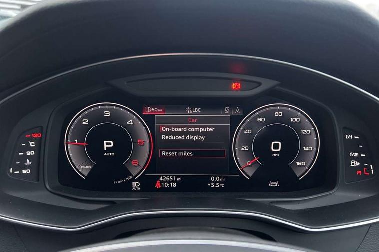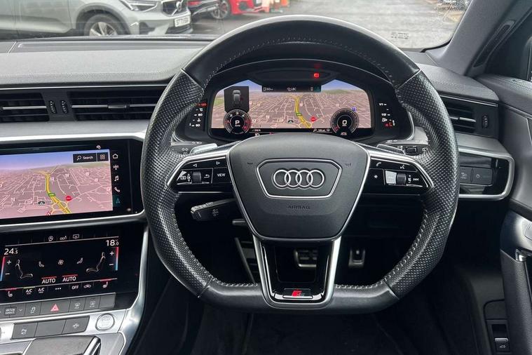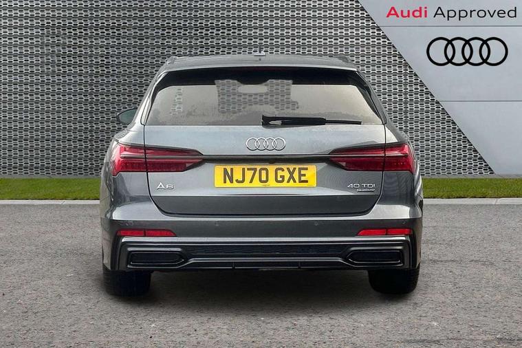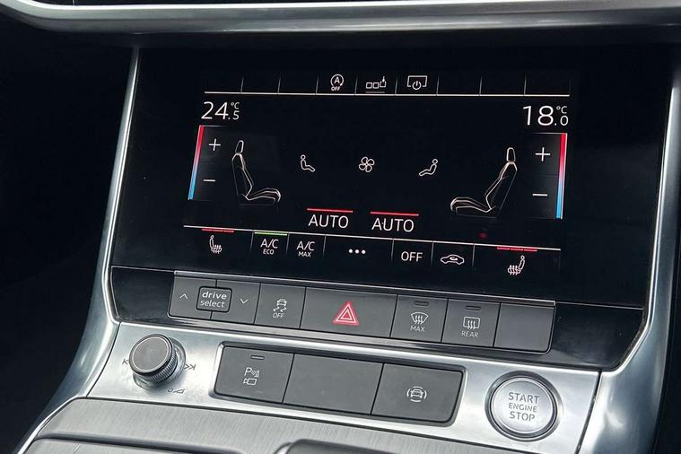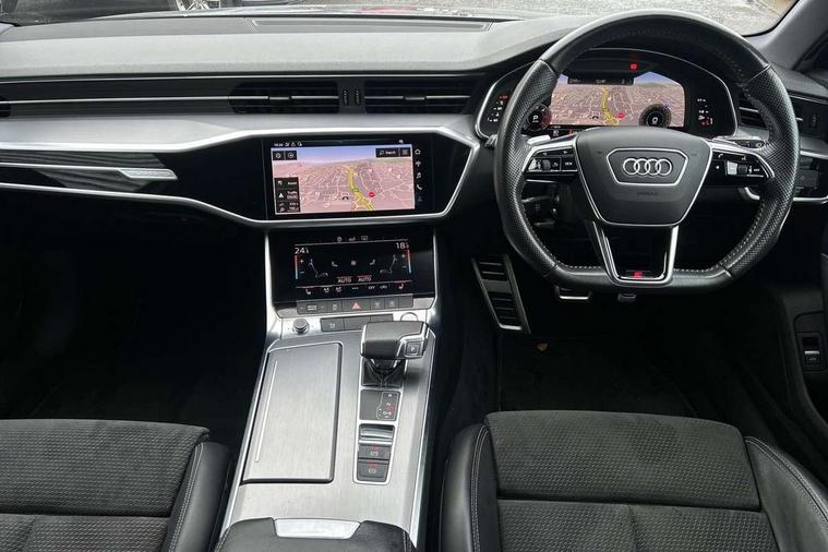 Non smoking pack - A6, 20" 5 V spoke star design Audi sport cast aluminium alloy wheels in matt titanium look, Anti theft alarm with tow away protection, Anti-theft wheel bolts and wheel loosening detection, Immobiliser, Keyless Go, Remote central locking, Audi music interface, Auxiliary input socket, DAB Digital radio, USB connection, 3 point seatbelts on all seats, Airbags - Front side, front and rear including head, Audi pre-sense front, Black seatbelts, EBD - Electronic brakeforce distribution, Electromechanical parking brake, Electronic Stability Control (ESC) including ABS, ASR and EDL, Extended pedestrian protection measures, Seatbelt monitoring, Tyre pressure warning light, Warning triangle and first aid kit, Black roof rails, Electric front/rear windows, Electrically adjustable, heated and folding door mirrors with driver memory function and integrated LED indicators, Frameless auto dimming interior rear view mirror, Gloss black exterior mirror housings, Gloss black highlights on the exterior area of the Audi Single frame, Gloss black highlights on the front and rear bumpers, Gloss black highlights on the radiator grille, Gloss black highlights on the side windows trim strips, Headlight washers, Heat insulating glass in side and rear windows, LED signature front daytime running light, Matrix LED headlights with dynamic rear indicators, Privacy glass, Rain and light sensors, S line air inlet design with inlay in matt aluminium, S Line badge on front fender, S line rear diffuser and grille in matt black with matt aluminium tailpipes, S Line roof edge spoiler, S Line side skirts, Signature rear LED light design, Windscreen with acoustic glazing, 2 zone deluxe electronic climate control, 3 Spoke flat bottom high multi-function leather steering wheel with shift paddles, 4 way electric lumbar support for driver and front passenger, 40/20/40 split folding 3 rear seat bench in 3 parts with rear centre armrest, Black cloth headlining, Electrically adjustable front seats with driver memory, Front centre armrest, Front head restraints, Heated front seats, Height/reach adjust steering wheel, Illuminated door sill trims with S logo, Illuminated sun visors with vanity mirrors, ISOFIX child seat mounting and Top Tether with front passenger airbag deactivation, Leather gear knob, Luggage compartment system, Rear headrests, S line front and rear floor mats with contrast stitching, Stainless steel pedals and foot rest, Tool kit and car jack, 7" high resolution colour driver information display system, Audi connect safety and service (e-call), Audi drive select, Audi smartphone interface, Automatic start/stop system with coasting functionality, Bluetooth interface, Lane departure warning system, MMI navigation with MMI touch + twin touch screens 8.8" and 8.6" with haptic and acoustic feedback, Power operated tailgate, Progressive steering, Service interval indicator, Voice control system, 12V Mild hybrid, Diesel particulate filter, Quattro on demand, Sports suspension,