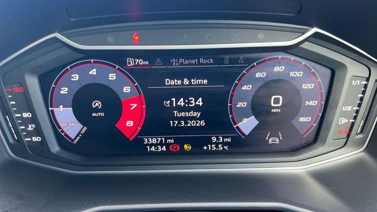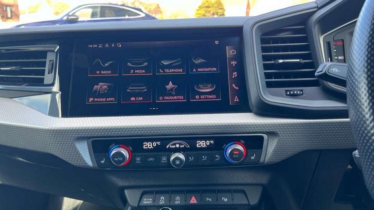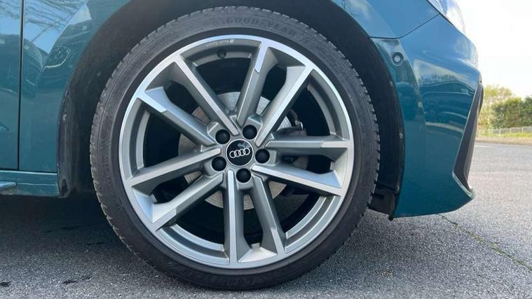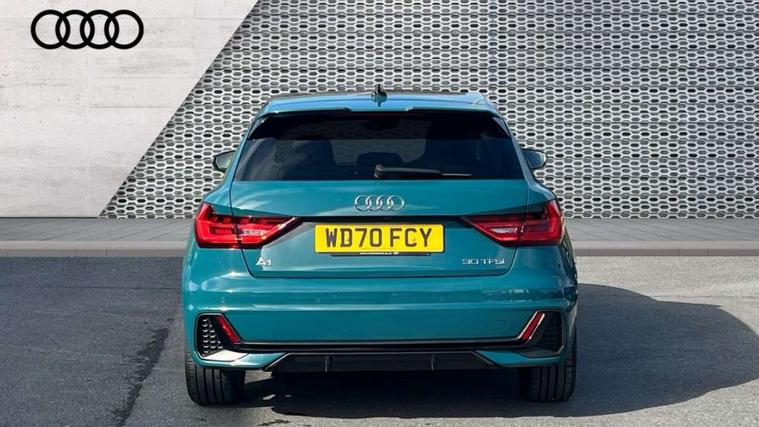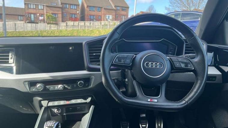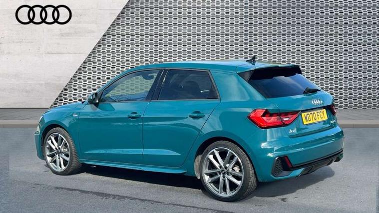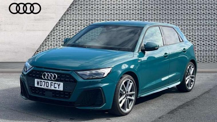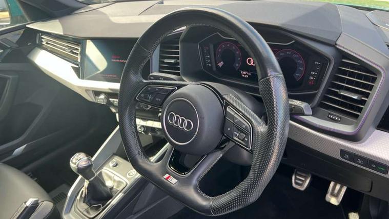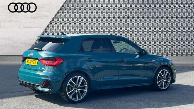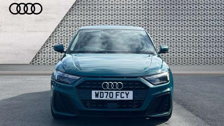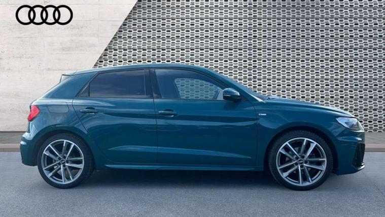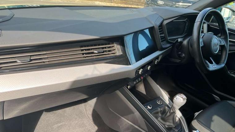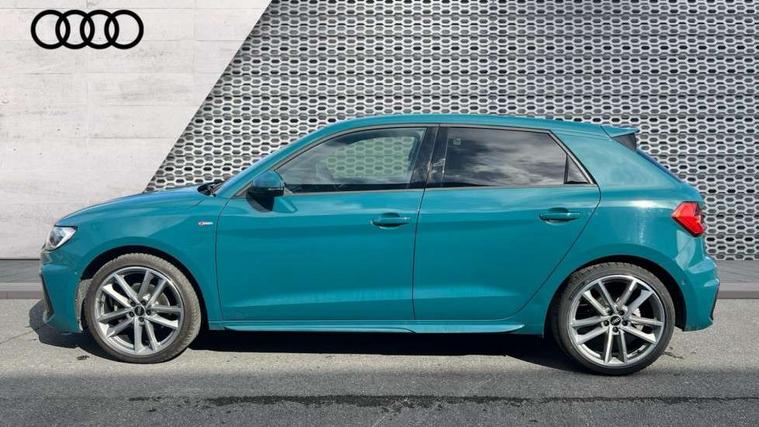 Aluminium trim for control switches, air vents and digital instrument cluster, Silver grey inlays polygon structure in diamond paint finish, Structured grey accent areas including air vents, door handle recesses and centre console in quartz paint finish, Black exterior styling pack - A1 Sportback Vorsprung, Comfort and sound pack - A1 Sportback, Luggage compartment pack - A1, Multicoloured LED Ambient lighting pack - A1 Sportback, Plus pack - A1 Sportback, Technology pack - A1 Sportback, 18" 5 double arm design alloy wheels in matt titanium look with diamond cut finish, Advanced key, Anti theft alarm, Anti theft wheel bolts and loose wheel warning, Immobiliser, Remote central locking with 2 foldaway keys, 1 x SDXC card reader, 2 x USB type C connection points, DAB Digital radio, 3x3 point rear seatbelts, Audi pre-sense front with pedestrain and cyclist recognition, Brake assist function, Driver and front passenger airbag with front side and head airbags, Electronic Stability Control including ABS, EBD, ASR and EDL, Front and rear seatbelt reminder, Front passenger airbag deactivation switch, Hill hold assist, Seatbelt height adjustment for front seats, Seatbelt monitoring, Tyre pressure warning light, Warning triangle and first aid kit, Auto dimming rear view mirror, Body coloured door mirrors, Door sills with aluminium inlays and S Line logo, Electric front and rear windows, Electrically adjustable, heated, folding door mirrors with integrated LED side indicator, Front side air inlets in grained matt black and C frame in titanium black, Heat insulating glass windscreen and side windows, Heated rear windscreen, LED headlights with LED rear lights + dynamic rear indicators + headlight adjustment and high beam, turning light + LED daytime running lights, Radiator grille and rear diffuser in matt titanium black, Radiator protective grille frame in matt aluminium silver, Rain and light sensors, Rear fog lights, Rear wiper, S line badges on front wings, Side front spoiler lips in grained matt black, 12V socket in centre console with two cup holders, 3 rear seats with headrests, 3 spoke flat bottomed multi-function plus leather steering wheel with S badging, grips in preforated leather and contrast stitching, 40:60 Split folding rear seat or folded fully, Black cloth headlining, Driver and passenger seat with manual height adjust with forward and backwards adjustment, Frequency alcantara/leatherette upholstery with contrast stitching in fine silver and S embossed logo + front sports seats, Front and rear black floor mats with contrast stitching in fine silver, Front head restraints, Height and reach adjustable steering wheel, ISOFIX child seat mounting for front passenger and outer rear seats including top tether attachment point of outer rear seats, Leather gear knob with aluminium trim, Luggage compartment light with front and rear reading lights, Manually adjustable lumbar support in front seats, Stainless steel pedals, Adaptive speed assist, Audi connect safety emergency and service including E-call, Audi drive select - power steering assistance + engine, Audi phone box with wireless charging, Automatic start/stop system, Bluetooth interface, Cruise control, Driver's information system, Electromechanical power steering, Lane departure warning system, Service interval indicator, Speed limiter, Washer fluid level indicator, Sports suspension,