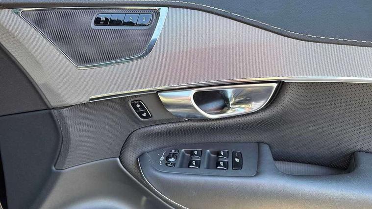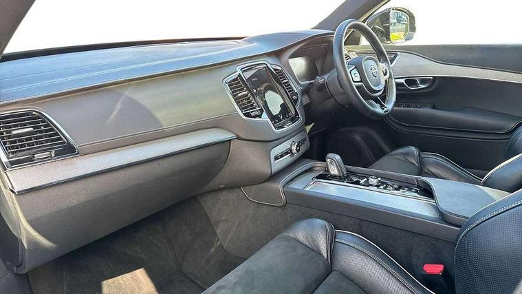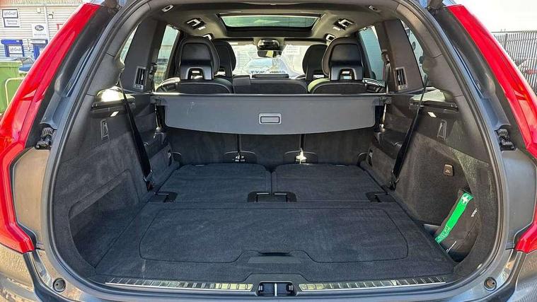 Metal mesh inlays, Tailored Instrument Panel and Door Tops with Contrast Stitching, Tyre sealant kit + 12v compressor, Anti-theft alarm including immobiliser/volume sensor + level sensor, Care key with user defined top speed, Key integrated remote control central locking + fuel flap with deadlocking system and auto open/close power windows, Keyless drive (includes keyless entry and keyless start) with remote tag, Locking wheel nuts, Private locking for glovebox and tailgate, DAB Radio (Digital Audio Broadcasting), Steering wheel remote infotainment controls, 7 three point seatbelts, City safety includes pedestrian, cyclist and large animal detection and front collision warning with full auto brake, Drivers knee airbag, Dual stage driver/passenger airbags, First aid kit, Front seats SIPS airbags, Hill descent control, Hill start assist, IC (Inflatable Curtains) - Full Length, Passenger airbag cut-off switch, Power parking brake with auto hold function, Run off Road Mitigation, Run off Road Protection, Seatbelt reminder and pretensioners for all seats, SIPS (Side Impact Protection System), Slippery road and hazard light alert, Stability and Traction Control with Spin control, Engine Drag Control and Corner Traction Control, Tyre pressure monitoring system, Vehicle deceleration control with Anti-lock Brake System, Electronic Brake Distribution and Emergency Brake Assist, Warning triangle, WHIPS whiplash protection system - front, Adaptive brake lights with high level LED brake lights, Auto dimming interior + exterior mirrors, Automatic headlight levelling system, Automatic LED Headlights + Active high beam incorporating daytime running lights, Body colour bumpers, Dark tinted windows for rear side windows and cargo area, Dual integrated exhaust pipes with high gloss black surround, Electric folding and heated door mirrors, Front and rear power windows, Heated washer nozzles, High gloss black Deco lower front bumper, High gloss black door mirrors, High gloss black mesh front grille with surround, High gloss black window surround, Home safe and approach lighting, Integrated roof rails in high gloss black, Puddle lights, Rain sensor with automatic windscreen wiper activation, Rear wash/wipe with intermittent wipe setting, Roof antenna, Roof spoiler, Visible VIN plate, 12V socket front tunnel console, rear passenger compartment and cargo area, 2nd Row centre armrest with storage and cupholders, 3 spoke leather steering wheel and illuminated gear knob with chrome trim, 4 Zone electronic climate control + cooled glovebox, Air conditioning for 3rd row of seats, Ambient door and instrument panel lighting, Auxiliary fuel fired heater with pre conditioning functions, B Pillar ventilation, Bright metal luggage threshold, Cargo divider with grocery bag holder, Centre console cupholders and storage, Charge cable bag, Driver's side lower dashboard storage compartment, Front and rear door pocket and front cupholder illumination, Front footwell and side step illumination, Front headrests, Front seat cushion extensions, Heated front seats, Height/reach adjustable steering column, Illuminated luggage compartment, Illuminated tailgate, Illuminated vanity mirrors + ticket holder, Illumination lockable glovebox compartment, Integrated sun curtains in rear doors, Load protection net, Multicolour theatre lighting, Outboard armrest with cupholder and storage for third row passengers, Power driver seat with multi directional lumbar support and memory for seat and exterior mirrors, Power folding 2nd row headrests, Power passenger seat with lumbar support, Rear footwell and side step illumination, Rear headrests, Recharge aluminium tread plates, Semi automatic load cover, Sports floor mats, Sports leather gear knob, Sports pedals, Sports steering wheel, Steering wheel audio controls, Three 2nd row individual folding passenger seats with fore/aft adjustment, Two 3rd row individual folding passenger seats, Underfloor cargo storage, 12.3" Active TFT crystal driver's instrument display, 9" centre console portrait touch screen, Adjustable steering wheel force, Bluetooth hands free telephone connection, Drive mode settings, Driver alert control with lane keeping aid, Handsfree power tailgate opening and closing, Intellisafe assist - Adaptive cruise control with pilot assist, Oncoming Lane Mitigation, Sensus navigation with European mapping and traffic information, Service interval indicator, Speed limiter, Speed sensitive steering, Trip computer, Voice activated control for key functions, Volvo on call, 8 speed automatic transmission with start/stop + manual change functions, All wheel drive system, Electric rear axle drive, Lithium-ion battery, Recharging port located in nearside front wing,
