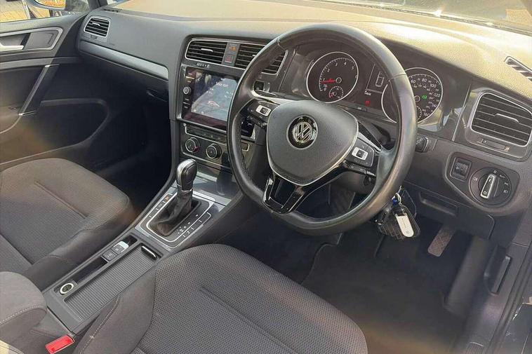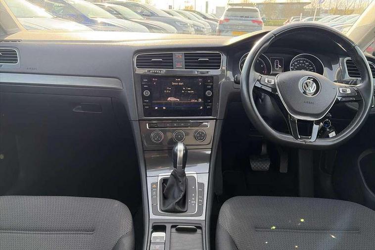 Brushed dark metal decorative inserts, Chrome-plated light switch surround, Polar night black centre console, Mirror pack - Golf, Steel space saver spare wheel, Alarm with interior protection, Electronic engine immobiliser, Remote central locking with 2 remote folding keys, CD/MP3/WMA, USB and SD card reader, aux-in, Composition media system, DAB Digital radio, 3 point height adj front seatbelts + pretensioners, 3 rear 3 point seatbelts, ABS, Automatic post collision braking, Child locks on rear doors, Driver/Front Passenger airbags, Driver/Passenger whiplash optimised head restraints, Drivers knee airbag, Electronic parking brake with auto hold, ESP with EDL + ASR, Front and rear curtain airbags, Front passenger airbag deactivation, Front side airbags, Pre crash system, Tyre pressure monitor, Auto dimming rear view mirror, Automatic coming/leaving home lighting function, Automatic headlights, Black front air intake and radiator grille with chrome insert, Black rear diffuser, Body colour bumpers, Body colour door handles, Body colour door mirrors, Electric front windows, Electric rear windows, Electrically adjustable and heated door mirrors, Heated rear windscreen, LED daytime running lights, LED rear lights, Rain sensor, Rear roof spoiler, Rear windscreen washer and wiper with interval delay, 12V socket in luggage compartment, 3 rear headrests, 3 spoke steering wheel, 60/40 split folding rear seat, Bag hook in luggage compartment, Boot lashing points, Cooled glovebox, Courtesy light delay, Cover for storage compartment in centre, Dust/pollen filter, Front and rear reading lights, Front centre armrest with storage box and rear air vents, Front passenger drawer stowage, Front passenger seat height adjust, Front seat back storage pockets, Grab handles, Height adjustable driver's seat, Height/reach adjust steering wheel, Illuminated vanity mirrors, Isofix preparation for 2 rear child seats, Load through provision with rear centre armrest and cupholders x2, Luggage compartment cover, Luggage compartment lighting, Multifunction leather steering wheel with leather gear knob/handbrake grip, Overhead storage box, Pearl grey headlining, Storage box in luggage compartment, Storage compartments in doors, Sun visors, Variable boot floor, height adjustable and removable, App-Connect, 'Lights On' Reminder warning buzzer, 8" touch screen, Adaptive Cruise Control with pedestrian detection and speed limiter, Bluetooth hands free telephone connection, Brake pad wear indicator warning light, Driver alert system, Driver profile selection, Exterior temperature gauge, Instrument cluster in white, Multifunction computer, PAS - speed related, Rev counter, Trip and service interval display, Ultrasonic front and rear optical and audible parking sensors, Warning buzzer and light for front seatbelts unfastened, XDS electronic differential lock,
