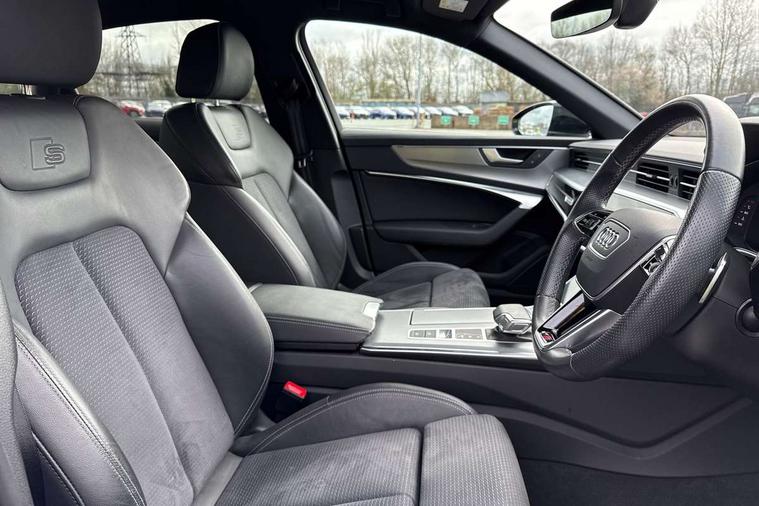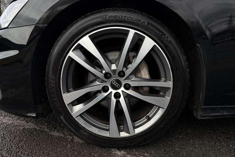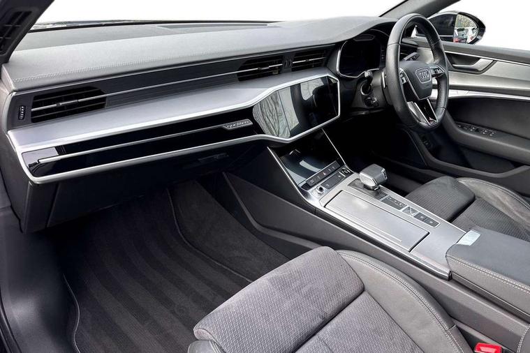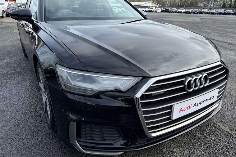 Matt brushed aluminium dark inlays, Comfort and sound pack - A6, Non smoking pack - A6, Technology pack - A6, Anti theft alarm with tow away protection, Anti-theft wheel bolts and wheel loosening detection, Immobiliser, Remote central locking, Audi front music interface, Auxiliary input socket, DAB Digital radio, USB connection, 3 point seatbelts on all seats, Airbags - Front side, front and rear including head, Audi pre-sense front, Black seatbelts, EBD - Electronic brakeforce distribution, Electromechanical parking brake, Electronic Stability Control (ESC) including ABS, ASR and EDL, Extended pedestrian protection measures, Manual child proof rear door locks, Seatbelt monitoring, Tyre pressure warning light, Warning triangle and first aid kit, All weather LED headlights, Body coloured door mirrors, Electric front/rear windows, Frameless auto dimming interior rear view mirror, Front intermittent wipers, Headlight washers, Heat insulating glass in side and rear windows, Heat insulating glass in windshield, LED rear lights, LED signature front daytime running light, LED third brake light, Matt black side air intake grille with inlay in matt aluminium, Privacy glass, Radiator grille in titanium black matt, single frame in chrome and horizontal struts in matt aluminium silver, Rain and light sensors, Rear boot, Rear side wing doors, S line air inlet design with inlay in matt aluminium, S Line badge on front fender, S Line front and rear bumpers, S line rear diffuser and grille in matt black with matt aluminium tailpipes, S Line side skirts, 2 zone deluxe electronic climate control, 4 way electric lumbar support for driver and front passenger, 40/20/40 split folding 3 rear seat bench in 3 parts with rear centre armrest, Black cloth headlining, Black steering wheel insert, Electrically adjustable front seats with driver memory, Front centre armrest, Front head restraints, Heated front seats, Height/reach adjust steering wheel, Illuminated door sill trims with S logo, Illuminated sun visors with vanity mirrors, ISOFIX child seat mounting and Top Tether with front passenger airbag deactivation, Leather gear knob, Rear headrests, S line front and rear black carpet floor mats with contrast stitching, Single front passenger seat, Stainless steel pedals and foot rest, 7" high resolution colour driver information display system, Audi connect safety and service (e-call), Audi connect with Amazon Alexa Integration, Audi drive select, Audi smartphone interface includes wireless Apple carplay/Android Auto, Automatic start/stop system with coasting functionality, Bluetooth interface, Electric boot lid release, Lane departure warning system, Progressive steering, Service interval indicator, Voice control system, 12V Mild hybrid, 24 litre AdBlue tank, Diesel particulate filter, Quattro on demand, Sports suspension,