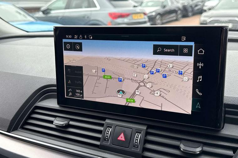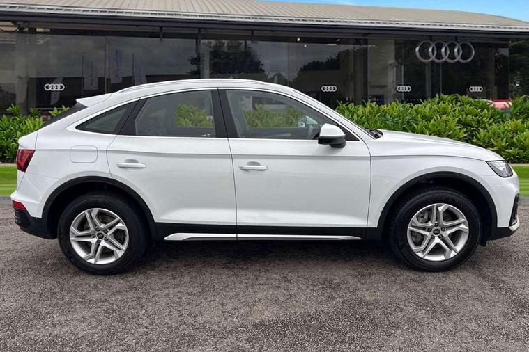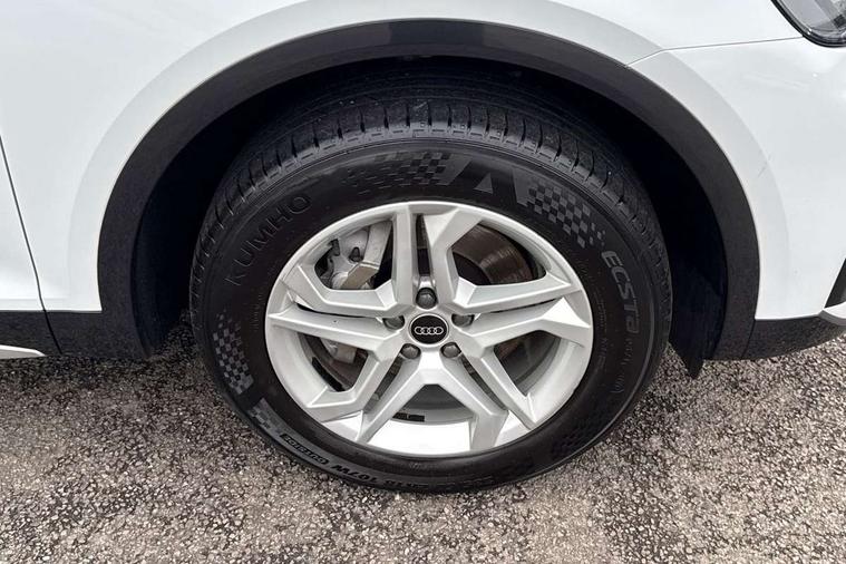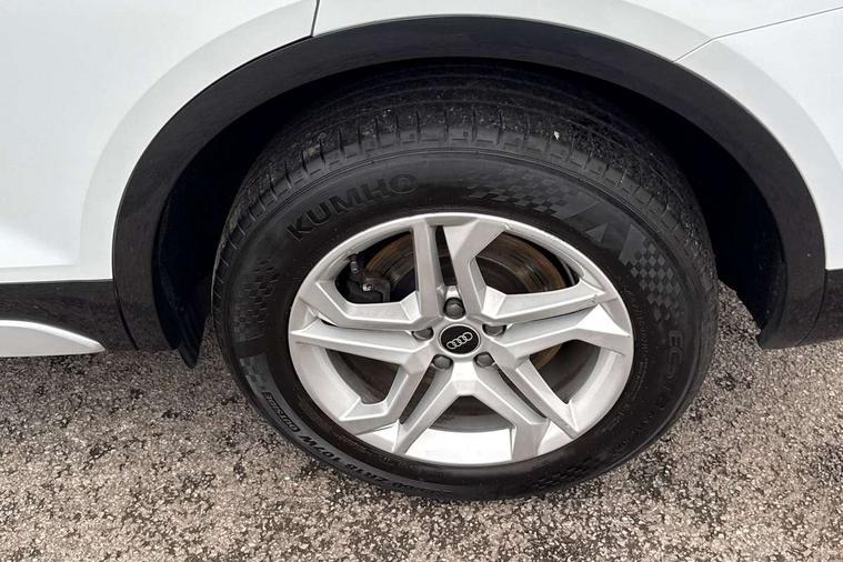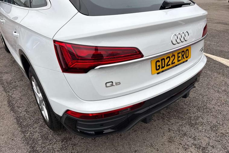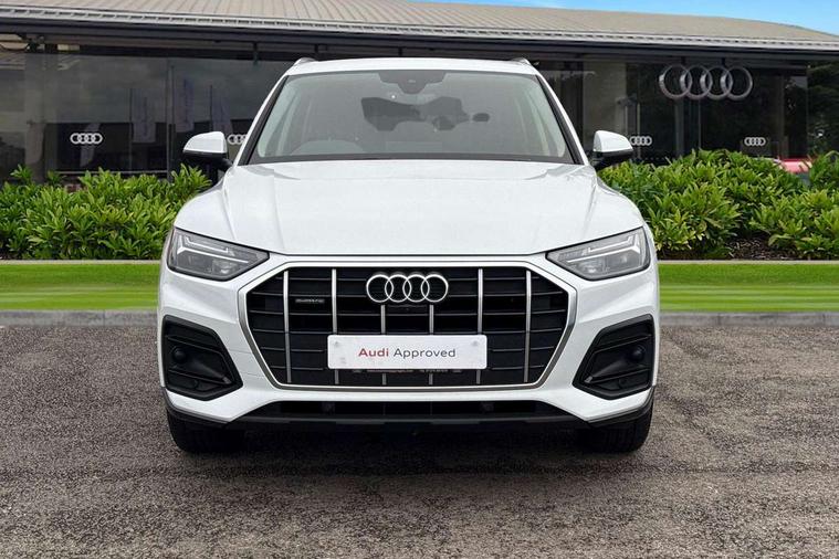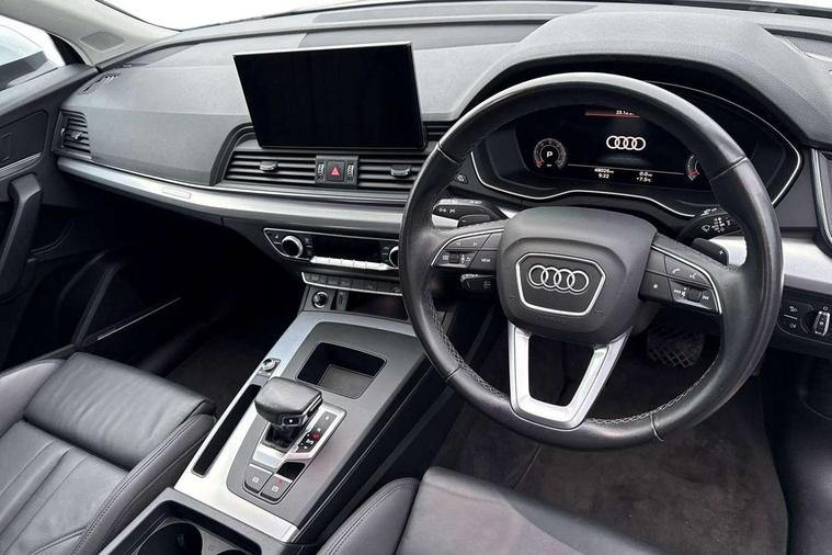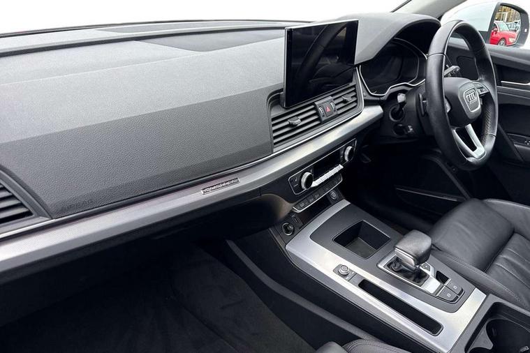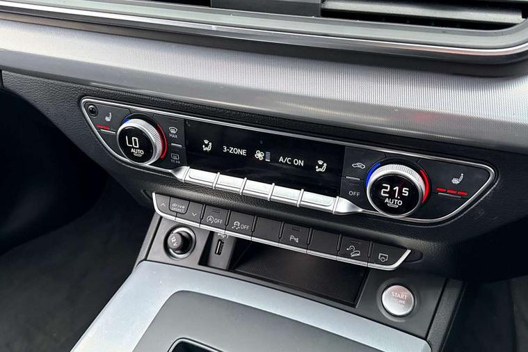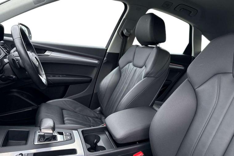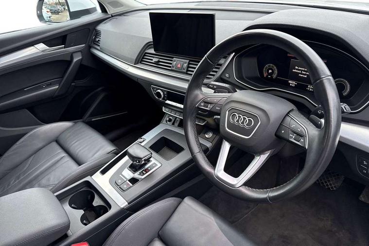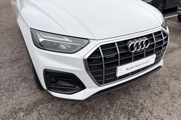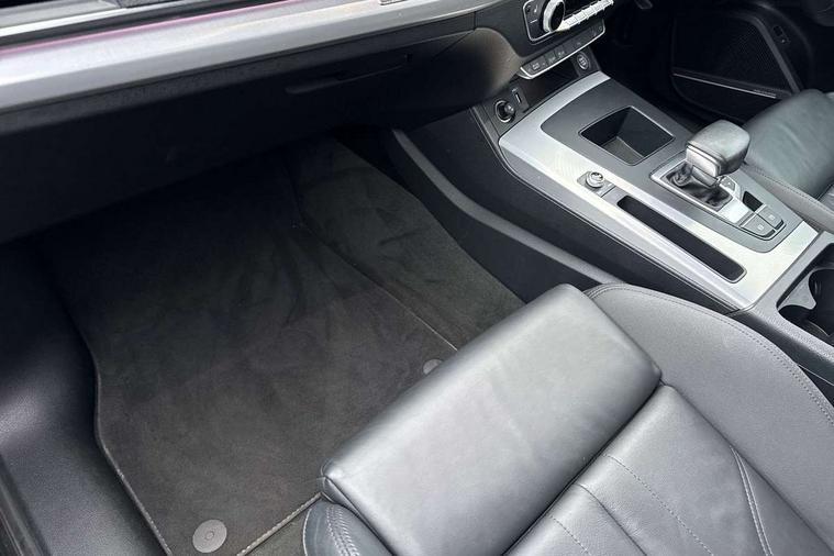 Aluminium rhombus inlay, High gloss pack - Q5, LED interior light pack - Q5, Anti theft alarm, Anti-theft wheel bolts, Keyless Go access/ignition system, Remote central locking, DAB Digital radio, 3 point seatbelts on all seats, 6 airbags - Driver, front passenger, curtain and side airbags, Electrically operated child locks on rear doors, Electromechanical parking brake, Electronic stabilisation control including ABS, ASR and EDL, Front passenger airbag deactivation, Hill descent control, Hill hold assist, Multi collision brake assist, Pop-up bonnet for pedestrian protection, Pre sense city, Seat belt force limiter, Seatbelt monitoring, Tyre pressure warning, Warning triangle and first aid kit, Acoustic windscreen, Air inlets in matt titanium black with blades in matt aluminium silver, Aluminium roof rails, Auto dimming door mirrors, Auto dimming rear view mirror, Automatic headlights and windscreen wipers, Body colour door mirrors, Chrome plated exhaust trims, Daytime running lights, Door sills in Selenite silver, Electric adjustable/heated/folding door mirrors, Front and rear electric windows, High level LED brake light, LED headlights and LED tail lights, Lower bumpers painted in contrast Manhattan grey, Matt selenite silver underbody protection, Matt twilight grey radiator grille with chrome vertical struts, Rear chrome trim strip below lights, Rear diffuser strip in selenite silver, Rear side wing doors, Rear spoiler, Rear wiper, Roof bars, 2 x USB charging port with aux input socket, 3 rear headrests, 3 spoke multifunction leather steering wheel with shift paddles, 40:20:40 split folding 3 rear bench seat in 2nd row with rear centre armrest, Comfort front centre armrest, Deluxe 3 zone electronic climate control, Door sills trims with aluminium inlays, Front head restraints, Front/rear floor mats, Heated front seats, Height/reach adjustable steering column, ISOFIX child seat mounting and top tether, Manual seat adjustment with 4-way electric lumbar support, Removable luggage compartment floor, Silver cloth headlining, Single front passenger seat, Sunvisors with vanity mirrors, Trunk roller cover, Twin leather upholstery + front sports seats, Audi connect safety and service (e-call), Audi connect with Amazon Alexa Integration, Audi drive select, Audi virtual cockpit plus with 12.3" screen and three different layout designs, Audi wireless smartphone interface, Automatic start-stop system with coasting functionality and efficiency programme, Bluetooth interface, Cruise control + speed limiter, Electro - mechanical power assisted steering, MMI navigation plus with 10.1" touch screen, Power tailgate, Reversing camera, Service interval indicator, Voice control system with Audi hotword activation "Hey Audi", Diesel particulate filter, Dynamic suspension, Quattro on demand,