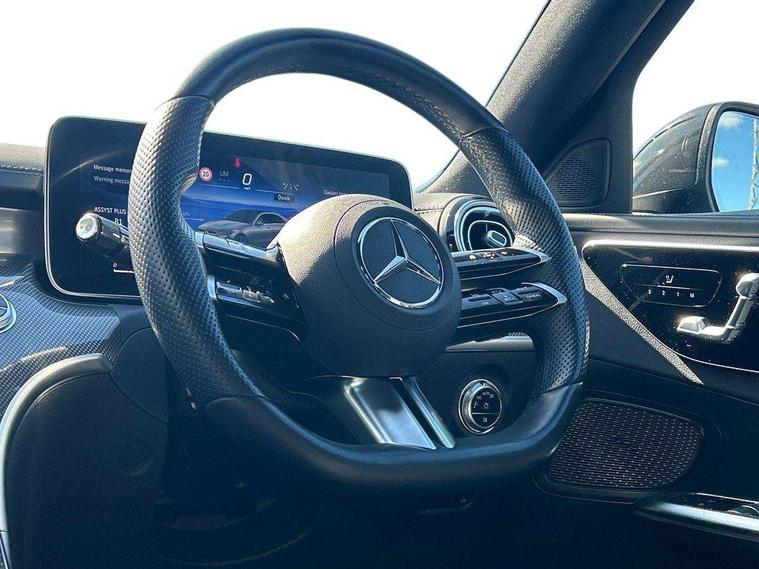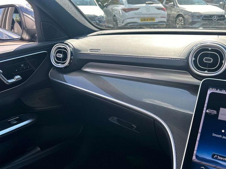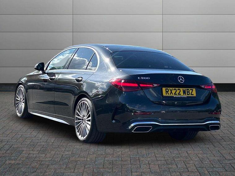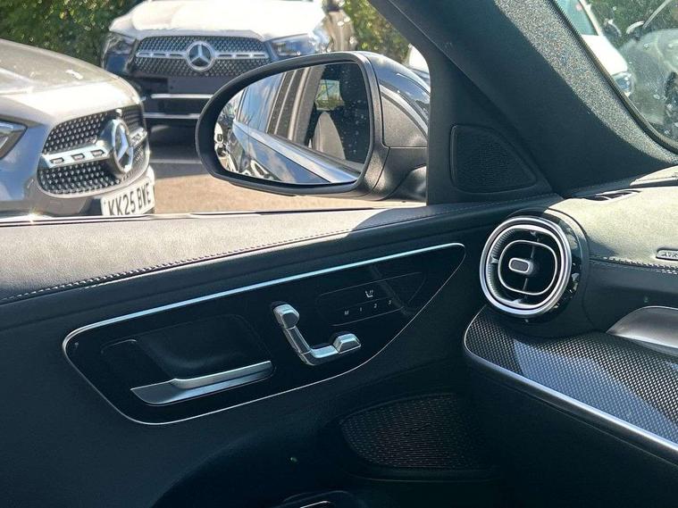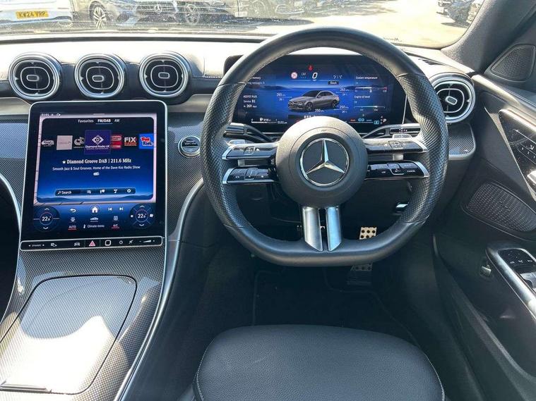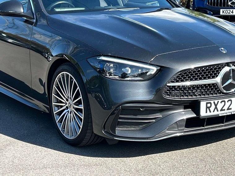 Artico man-made leather dashboard with contrast stitching, Centre console trim in metal weave, Interior lighting package - C Class, Memory package - C Class, Mirror pack - C Class, Parking package with 360 degree camera - C Class, Seat comfort pack - C Class, Stowage space pack - C Class, USB package - C Class, 19" AMG multi spoke design alloy wheels painted in black with high sheen finish, Summer tyres, TIREFIT with tyre inflation compressor, Central locking with interior switch, automatic locking and crash sensor with emergency opening function, Chrome surround electric key, Keyless Go comfort access, Urban guard vehicle protection - Thatcham Category 1 consisting of breakin, anti-theft alarm system (ATA), interior monitoring and tow away protection, DAB Digital radio, MBUX multimedia system, Steering wheel mounted audio controls, 3 rear 3 point seatbelts, Active bonnet pedestrian safety measure which detects an impact and raises bonnet, Adaptive brake system with HOLD function and brake drying in the wet, Anti-lock braking system (ABS), Black seat belts, Brake calipers with Mercedes-Benz lettering + perforated front brake discs, Child proof door locks, Drivers knee airbag, Drivers pelvis airbag, Dual stage driver/passenger airbags, Electric parking brake, Electronic Stability Programme (ESP), Front centre airbag between driver and front passenger seats, Front side airbags, Larger brake discs on front axle, Rear passenger airbag, Rear seatbelt warning indicator, Sports braking system with perforated front disc brakes, Tyre pressure monitoring system, Warning triangle and first aid kit, Window airbags, Adaptive brake lights, Adaptive high beam assist plus, AMG body styling front apron, rear apron and side skirts, AMG front bumper with sporty air intakes and chrome elements, AMG rear bumper with high gloss chrome elements, AMG side skirts in vehicle colour, B-pillar trim in glossy black, Body coloured bumpers, Body coloured door mirrors, Chrome beltline trim, Daytime running lights, Digital light LED headlamps, Electric windows with one touch opening/closing and obstruction sensors, Electrically adjustable and heated door mirrors, Green tinted glass, LED Indicators, LED tail lights, LED third brake light, Powerdomes on bonnet, Privacy glass, Radiator diamond grille with integrated Mercedes Benz star and louvre silver with chrome pins, Radio aerial integrated into rear window, Rain sensor with automatic windscreen wiper activation, Rear boot, Rear side wing doors, Two visible exhaust pipes integrated into rear bumper, 3 spoke flattened bottom AMG multifunction steering wheel in black nappa leather with chrome inserts and perforated leather in grip area, AMG sports seats, Auto Mercedes-Benz child seat recognition sensor, Black air vents with silver chrome elements, Black floor mats with AMG lettering, Black roof liner, Door trim elements high gloss black with silver chrome surroundings and switches, Double cupholder in centre console, Electrically height/reach adjustable steering column, Folding rear seat backrest, Front and rear head restraints, Front centre armrest with storage compartment, Gearshift paddles on steering wheel, Heated front seats, Illuminated door sills with Mercedes Benz lettering, Illuminated glove compartment stowage, Interior lighting - 64 colour Ambient lighting, Leather upholstery, Overhead control unit in high gloss black, Rear top tether child seat ISOFIX attachment, Single front passenger seat, Sports pedals with stainless steel surfaces and rubber studs, Sunvisors with illuminated vanity mirrors, THERMATIC 2 zone automatic climate control, 11.9" high resolution multimedia colour display, 12.3" digital instrument cluster display, Active blind spot assist, Active brake assist plus, Active lane keeping assist, Attention assist, Cruise control with speedtronic variable speed limiter, DYNAMIC SELECT with a choice of driving modes (ECO, Comfort, Sport, Sport+ and Individual), E-call, Extended MBUX functions, Finger print sensor, Fluorescent jacket for driver, MBUX augmented reality for navigation, MBUX navigation premium, MBUX voice control activated by keywords "Hey Mercedes", Mercedes connect me, Mercedes me remote services, Outside temperature gauge, Pre-installation for digital key transfer, Remote boot release, Service indicator (ASSYST), Smartphone integration, Sports direct steer speed sensitive steering, Status display for rear seat belts in instrument cluster, Wireless charging system for mobile devices, 66l fuel tank with increased capacity, 9G TRONIC 9 speed automatic transmission, Petrol Particulate Filter, Sports suspension with selective damping system and lowered by 15 mm, Sporty engine sound system,