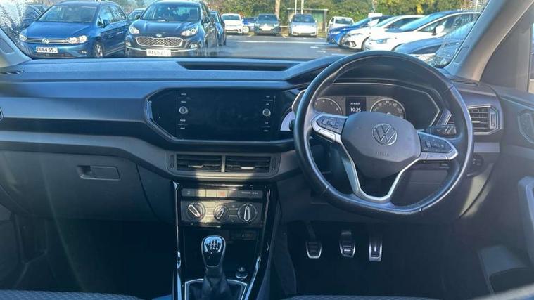Altantic blue united decorative inserts, Composition Media infotainment system pack - T cross, Winter pack - T-cross, 16" Dublin black diamond turned alloy wheels + anti theft wheel bolts, Tyre mobility kit and compressor, Alarm with interior protection and deactivation via infotainment system, Child security locks in rear doors, Remote central locking with 2 remote folding keys, Remote tailgate unlocking using key fob, 2x USB connection with USB charging sockets and in rear centre console, Diversity antenna for FM reception, Front and rear 6 speakers, Premium USB cable for Apple or Android smartphone compatibility, Anti-lock Braking System (ABS) with Hydraulic Brake Assist (HBA), Automatic post collision braking system, Driver and front passenger safety-optimised head restraints, Drivers and Front Passengers airbags with front passengers airbag deactivation switch, ESC with EDL, ASR, EDTC and trailer stabilisation function, Extended and proactive pedestrian protection, Front and rear curtain airbags, Front seat side impact airbags, Height adjustable 3 point automatic front seatbelts with pretensioners, Hill start assist, Pre crash preventive occupant protection, Rigid safety cell with front and rear crumple zones, Tyre pressure loss indicator, Volkswagen roadside assistance, Automatic dimming interior rear view mirror, Automatic hazard lights activation under emergency braking, Black non metallic door mirror housings, Black roof rails, Body colour door handles, Body coloured bumpers, Chrome plated radiator grille inserts, air vent surrounds and light switch surrounds, Darkened 65% privacy glass in side and rear window, Dusk sensor + automatic driving lights, Electric adjustable/heated door mirrors, Front and rear electric windows, Front fog lights with chrome bezel, Galvanised body, Halogen clear headlights range adjustable via infotainment system with automatic headlight activation and separate LED daytime running lights, Heated rear window, High level 3rd brake light, Lower door sills and door pillars in black, Manual coming/automatic leaving home lighting function, Rain sensor, Rear lights incorporating LED technology, Rear window aerial, Rear windscreen washer and wiper with interval delay, Reflectors in all doors, Tailgate with integrated roof spoiler, United badge on B-pillar, Windscreen wipers/ intermittent wipe + 4 position delay, 12V Accessory socket in centre console, 3 rear head restraints and 3 rear three point seat belts with ECE label, 60/40 split folding rear seat backrest, Brushed stainless steel pedals, Drawer under drivers seat, Driver and front passenger sunvisor with vanity mirror, Driver's sunvisor with ticket holder, Dust and pollen filter, Front + rear carpet mats, Front centre armrest with storage compartment and two rear air vents, Front seat back storage pockets, Front seats with adj lumbar support, Glovebox, Heating and fresh air system with 4 stage blower, Height/reach adjust steering wheel, Instrument lighting white adjustable panel illumination, Isofix child seat preparation for 2 rear child seats, LED interior light with switch off delay/dimmer and 2 front/rear LED reading lights, Luggage compartment cover, Luggage compartment lighting, Manual air conditioning, Manual front seats with height adjustment, Moveable and foldable Rear bench seat, Storage compartment in drivers and front passengers door, Three spoke multi-function leather trimmed steering wheel and gearknob, United door sills, Variable boot floor, Waveform cloth upholstery, White ambient lighting, 'Lights On' Reminder warning buzzer, Adaptive cruise control including front assist, forward collision warning, autonomous emergency braking, speed limiter, Driver alert system, eCall emergency call system, Front and rear parking sensors, Lane assist, Multifunction computer with visual gear change recommendation for fuel consumption, Power assisted speed sensitive steering, Ready 2 Discover system with 8" display including streaming and internet, Speedo, rev counter, electronic odometer, trip, service interval display, exterior temperature and fuel gauge, Stop/start system, Voice activation, Warning sound and light for doors and tailgate open, Warning sound and light for front seatbelts unfastened, We Connect Go Dongle, Wireless Car net app connect with Apple CarPlay, combined functionality of Apple CarPlay/Android Auto and MirrorLink, Battery regeneration during braking, Misfuel prevention device,