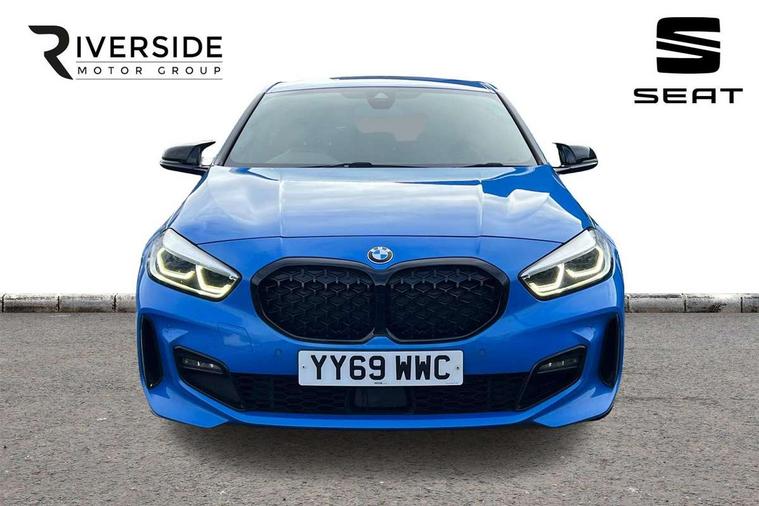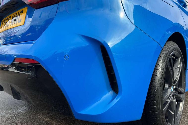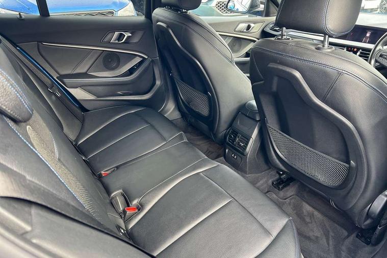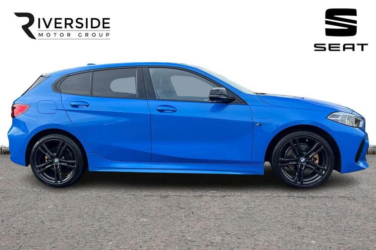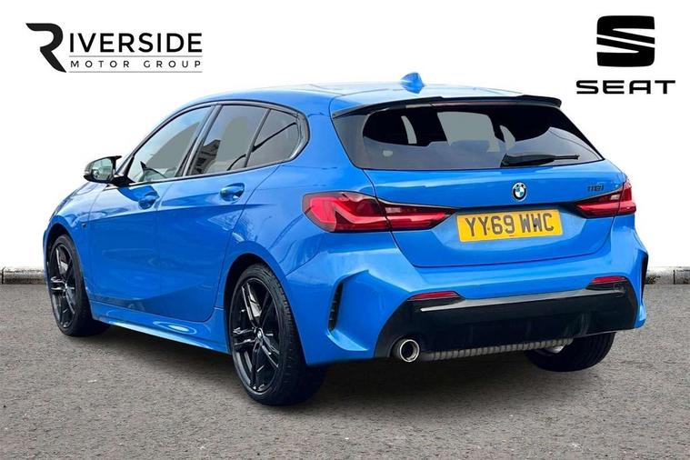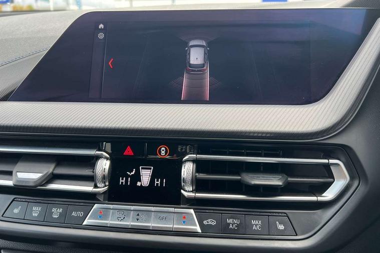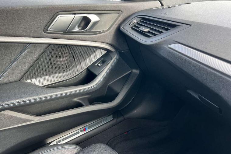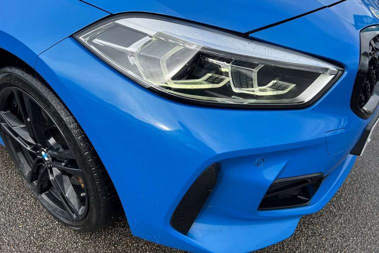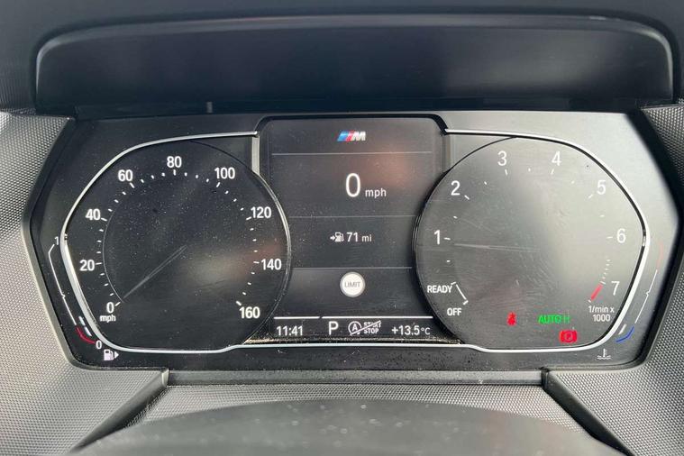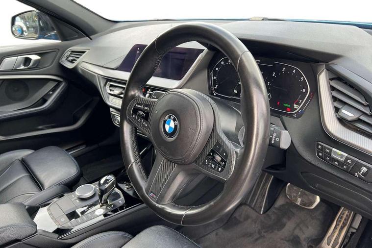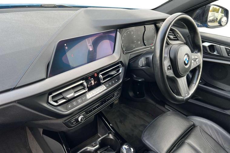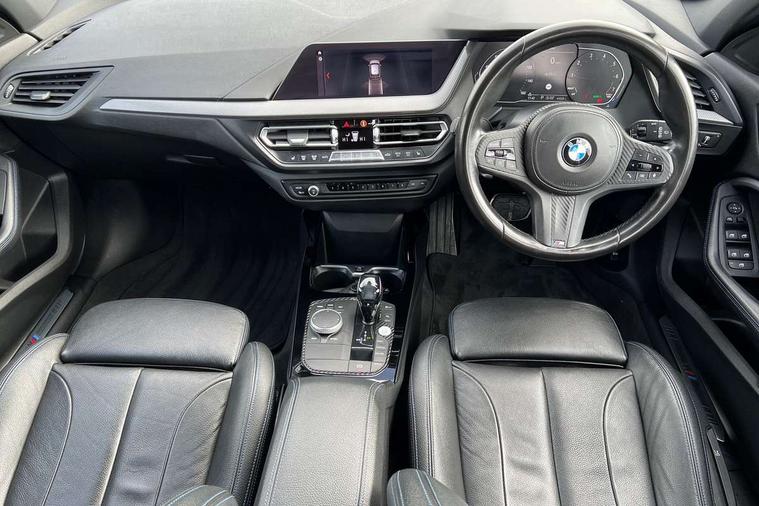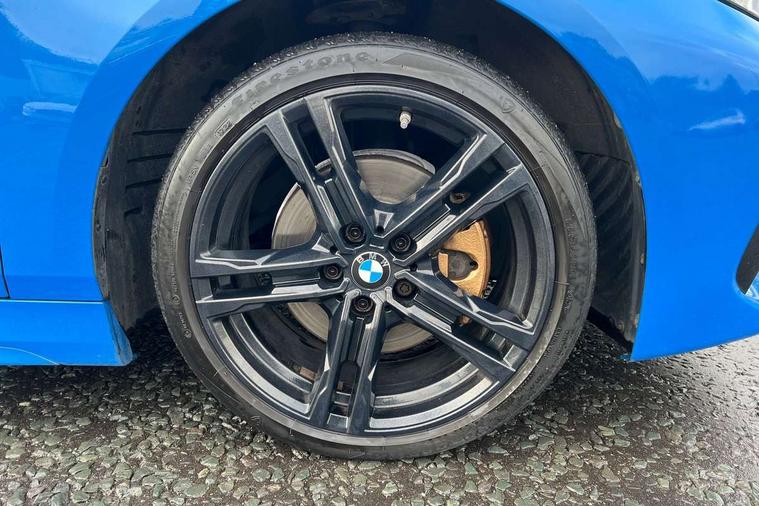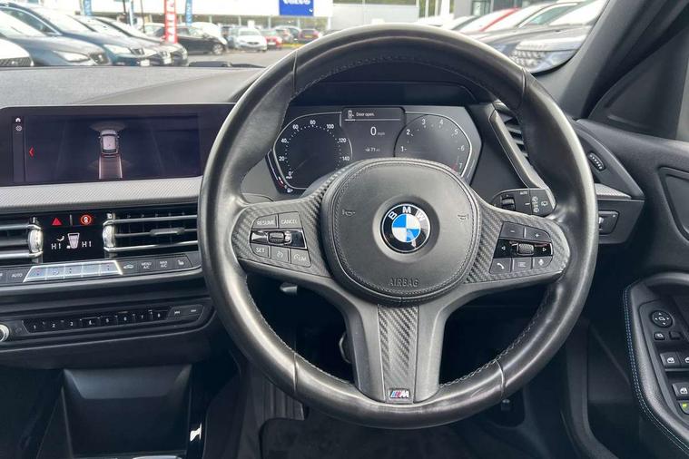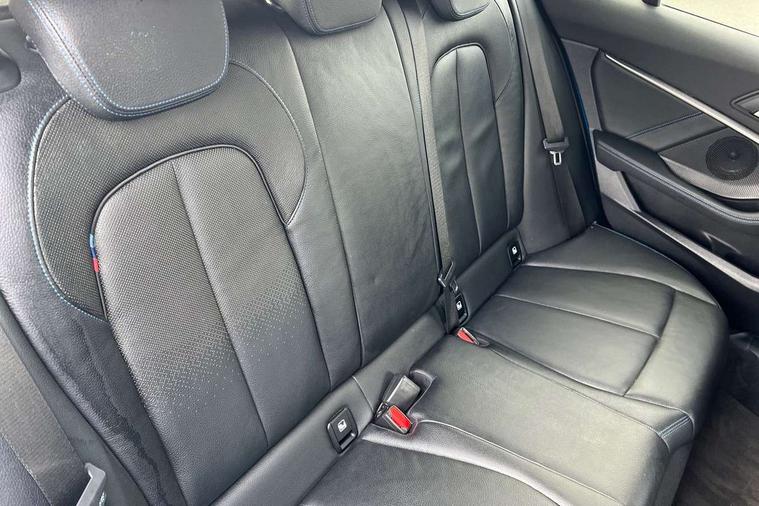 Contrast stitching on instrument panel, Extended Lighting pack - 1 Series, Extended storage pack - 1 Series, Interior lights pack - 1 Series, Luggage compartment pack - 1 Series, M Sport exterior styling aerodynamics pack - 1 Series, Reduced rolling resistance tyres, Automatic drive away locking facility, Central locking switch for all doors, fuel filler cap and luggage compartment, Deadlocking function system to all doors, Locking wheel bolts, Remote control with integrated key with High-gloss Black inlay and M designation and 1 button for open/ close lock, window, open luggage compartment, Start/stop button with comfort go keyless engine start and auto start stop deactivation button, Thatcham Cat.1 alarm and immobiliser, Bluetooth audio streaming, DAB Digital radio, 2 tone horn, 3 point seatbelts on all seats, front pyrotechnic belt tensioners, stopper and belt force limiters, rear coded belt buckles, Airbags - Front driver and passenger, front and rear head, front side, curtain head protection, Anti lock braking system (ABS) with brake assist, BMW emergency call, Brake drying, Braking readiness, Crash sensor activating central locking release, hazard warning lights, fuel cut off, interior lighting + activation of safety battery terminal clamp, Driver and front passenger seat belt security check, Dynamic stability control + (DSC+), Dynamic Traction Control - DTC, Electrically operated hand brake, Front passenger manual airbag deactivation, Rear child proof door locks, Seatbelt warning, Side impact protection, Tyre pressure monitoring system, Warning triangle and first aid kit, Auto dimming rear view mirror, Body colour door handles, Body colour mirror caps, Chrome 'M' logo side designation, Chrome exhaust tailpipe in single, round (Exhaust tailpipe, stainless steel - single, round), Chrome kidney grille frame with Satin Aluminium struts, Direction indicator side lights in exterior mirrors, Electric folding and anti dazzle exterior mirrors, Fading support, Follow me home headlights, Front and rear electric windows with open and close fingertip control, anti trap facility and comfort closing, Front door sill finishers in black plastic with BMW designation, Green tinted heat protection glazing, Headlight beam throw control, High gloss shadow line exterior trim, High level third brake light, LED daytime running lights, LED front fog lights, Lightweight engineering, Matt black air guide grilles, Matt black roof moulding, B pillar finisher and wheel arch trim, Matt black window frame, Model designation on right side of tailgate, Nearside reverse light in rear light cluster, Rain sensor including auto headlights activation, Rear fog lights, Rear window wiper, Shark fin antenna, Visible VIN plate, Welcome lighting, Windscreen wipers with integrated washing jets, 12V power socket in centre console, 2 cupholders in front centre console, 3 rear seat head restraints, 3 spoke M sports design leather steering wheel finished in nappa leather with specific M badge, Anthracite headlining, Anthracite Velour floor mats, Child seat ISOFIX attachment for two outer rear seats and front passenger seat with anchorage points, Conditioned based service, Dakota leather upholstery with perforation and contrast stitching, Driver and front passenger seat heating, Driver side folding compartment in instrument panel, Folding rear clothes hook, Folding rear seats, Four grab handles integrated in roof lining, Front and rear door pockets, Front and rear side armrest integrated into door trim, Front armrest foldable with integrated storage compartment, Front sports seats with electric side bolster adjustment, Glove compartment, Height adjustable front head restraints, Manual adjust steering wheel, Multi-function controls for steering wheel, Rear seat backrest with manual 60:40 split folding with 3 top tether clips integrated on rear of seat panels, Storage compartment in centre console, Sun visors with vanity mirrors and insert tab, Two zone automatic air conditioning, Active guard plus, Attentiveness assist, BMW Online services, BMW Teleservices, Check Control warning system for monitoring of lights and door/luggage compartment open warning, Connected eDrive Services, Eco pro mode, Electric power steering, Integrated owners handbook, On board computer, Optimum shift indicator, Personal Profile, Pull away assistant, Speed limiter, Anti roll bar front and rear, Balancer shaft, Double VANOS, Drive Performance Control, Electronic differential lock, M sports suspension + self levelling, Petrol Particulate Filter, VALVETRONIC engine management,