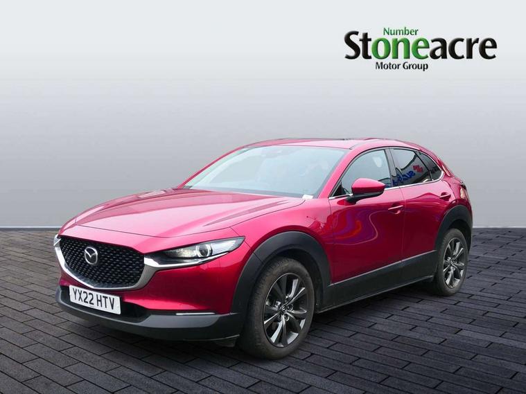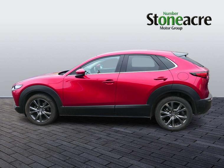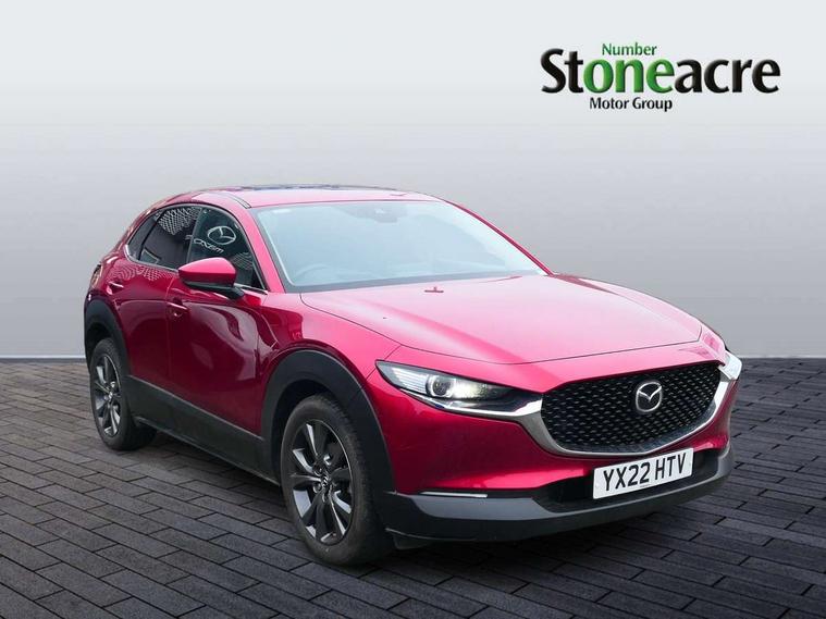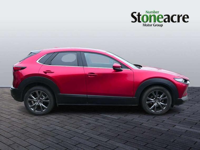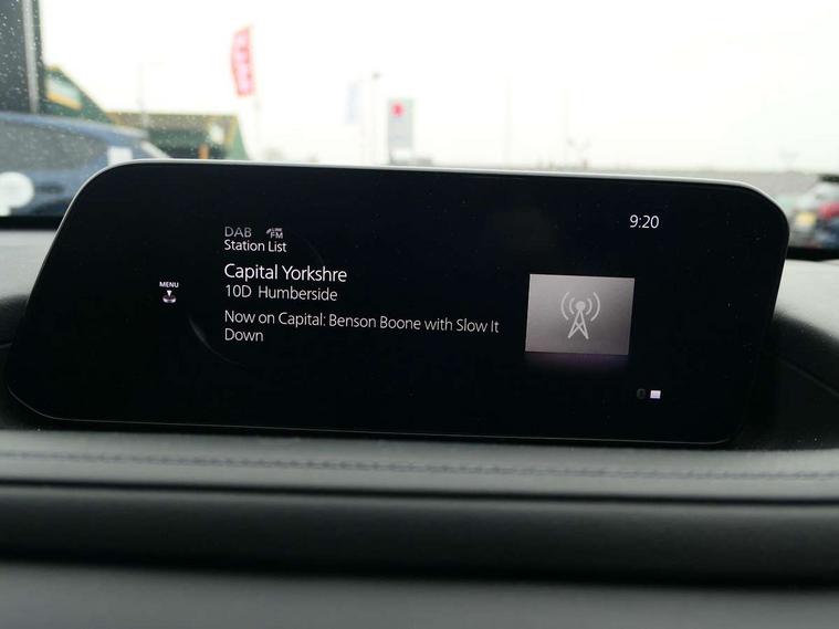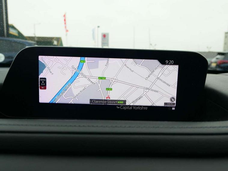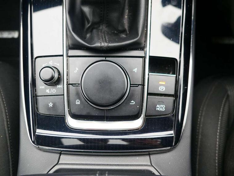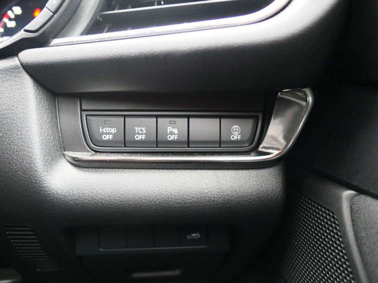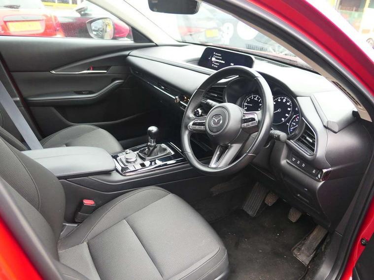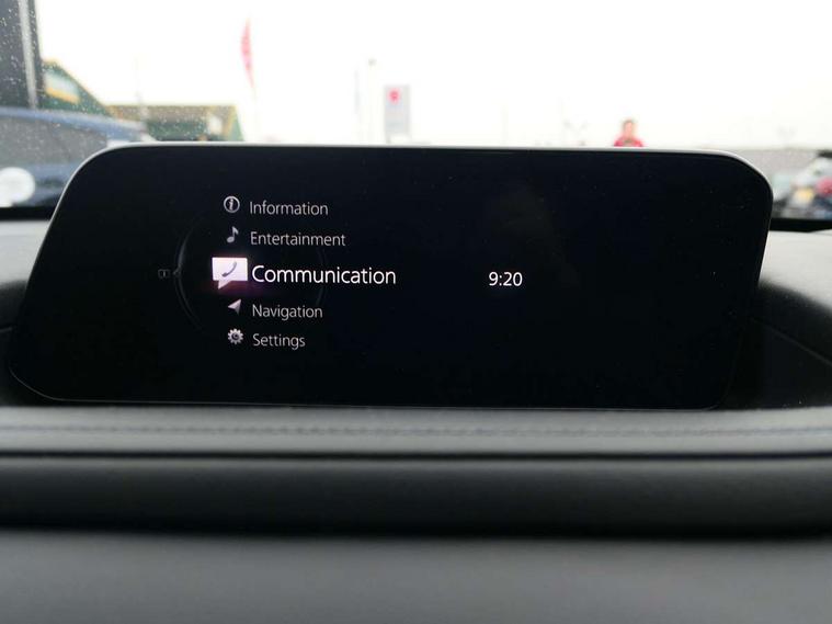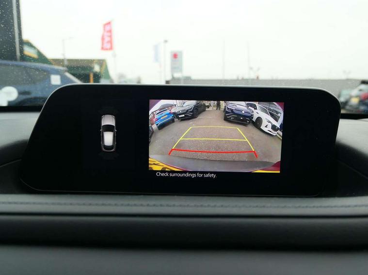 18" Bright alloy wheels, Emergency tyre repair kit, Remote central locking with deadlocking and automatic door lock when driving, Smart keyless entry, Thatcham accredited alarm and immobiliser, 2 USB charging ports in front inner central armrest, AM / FM / DAB radio with 8 speakers, Multimedia Commander including separate volume dial, Steering wheel mounted audio/bluetooth controls, 3 point ELR front seat belts x2 with pretensioners, 3 point ELR rear seat belts, Anti-lock braking system (ABS), Drivers knee airbag, DSC - Dynamic Stability Control, Electronic parking brake with auto disengage function and auto hold function, Front and rear curtain airbags, Front dual stage driver and single stage front passenger airbags, Front passenger airbag cut-off switch, Front side airbags, Front smart city brake support, G-Vectoring control plus, Hill launch assist, Manual child lock in rear doors, Mild Hybrid system with regenerative braking, Seatbelt reminder for driver/front passenger and rear seats, Traction control system (TCS), Tyre pressure monitoring system (TPMS), Adaptive LED Headlights, Auto dimming driver's door mirror, Auto headlight levelling, B-pillar and C-pillar garnishes in piano black finish, Body coloured, electrically adjustable, heated auto power folding door mirrors with integrated indicators, Chrome finish signature wing in front grille, Coming/leaving home lighting function, Dual chrome exhaust, Dusk sensing headlights, Electric front/rear windows with one touch auto up/down, Frameless auto dimming interior rear view mirror, Front kodo turn signal, Gloss black front grille, Gloss black rear roof spoiler, High beam assist, LED signature daytime running lights, Power tilt/slide sunroof, Privacy glass (rear side windows and rear screen), Rain sensing front wipers with adjustable speed and intermittent wipe, Rear fog lights, Rear side wing doors, Rear wiper, Signature LED rear combination lights, Third brake light, 12V power outlet in centre console, 3 seat bench in 2nd row, 60/40 split fold down rear seats, Chrome horn pad ring, Chrome interior trim accents with steering wheel centre bezel, surround of engine start / stop button and glove box handle, Cloth upholstery with interior accents, Dark cloth door panel inserts, Dashboard, door cards and front centre armrest in black cloth, Driver and front passenger visors with covered vanity mirror and driver ticket holder, Driver seat manual slide, recline, height and seat tilt adjust, Driver, front passenger and two rear door storage, Driver, Front passenger and two rear grab handles with coathooks, Dual zone climate control air conditioning with rear air vents, Folding rear centre armrest with two cup holders, Front and rear (x3) head restraints, Front and rear LED lighting, Front armrest, Front centre storage with two cupholders with lid, Front passenger seatback pockets, Front passengers seat manual slide, recline and height adjustment, Gear shift indicator, Glovebox illumination, Heated front seats with 3 stage setting, ISOFIX child seat anchorage points attached on outer rear seats, Leather wrapped gear shift knob, Leather wrapped steering wheel with telescopic and tilt adjustment, LED luggage compartment lighting, Light roof headlining and pillars, Roof mounted sunglasses holder, Single front passenger seat, 7" TFT Colour driver instrument panel display, 8.8" Colour centre touch screen display with Mazda Connect infotainment, Adaptive cruise control (Mazda radar cruise control), Apple car play/Android Auto, Blind spot monitoring with rear cross traffic alert, Driver attention alert system, E-call with GPS, Emergency stop signalling system, Engine start/stop button, Front and rear parking sensors, Integrated bluetooth, Integrated Mazda navigation system, Intelligent speed assist, Lane keep assist system (LAS) with Lane departure warning system (LDWS), Mazda connected services, PAS, Power lift gate, Reversing camera, Service indicator, Traffic sign recognition, Trip computer, i-stop,
