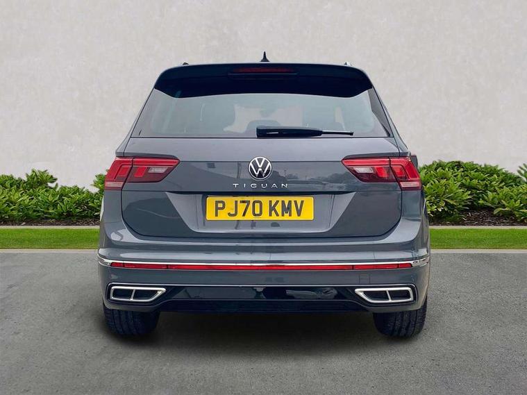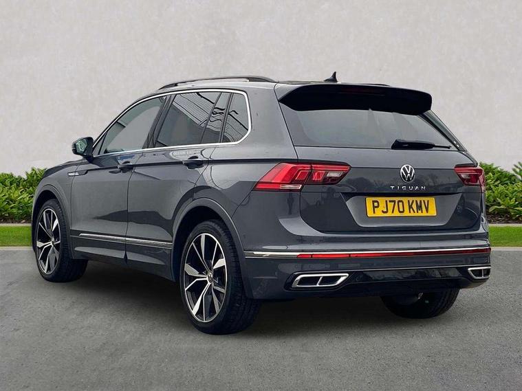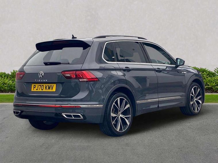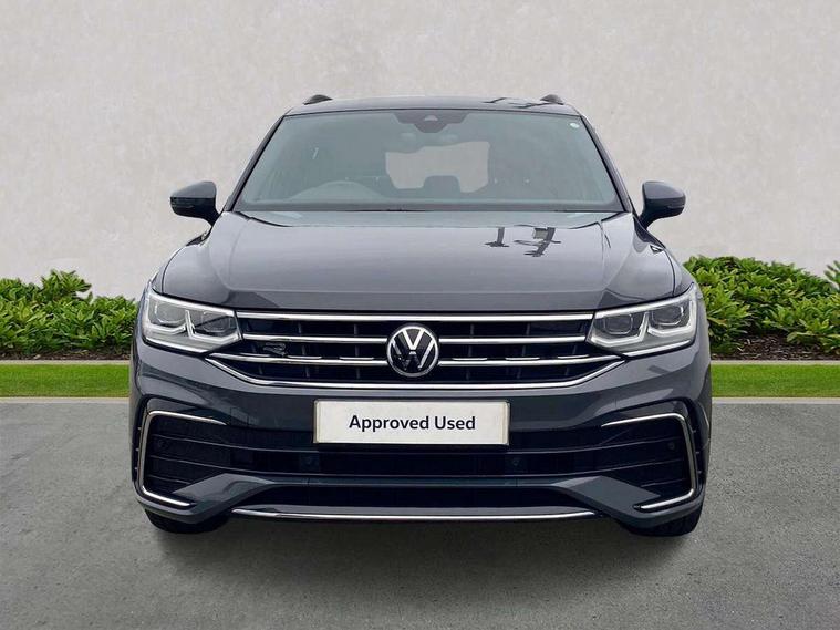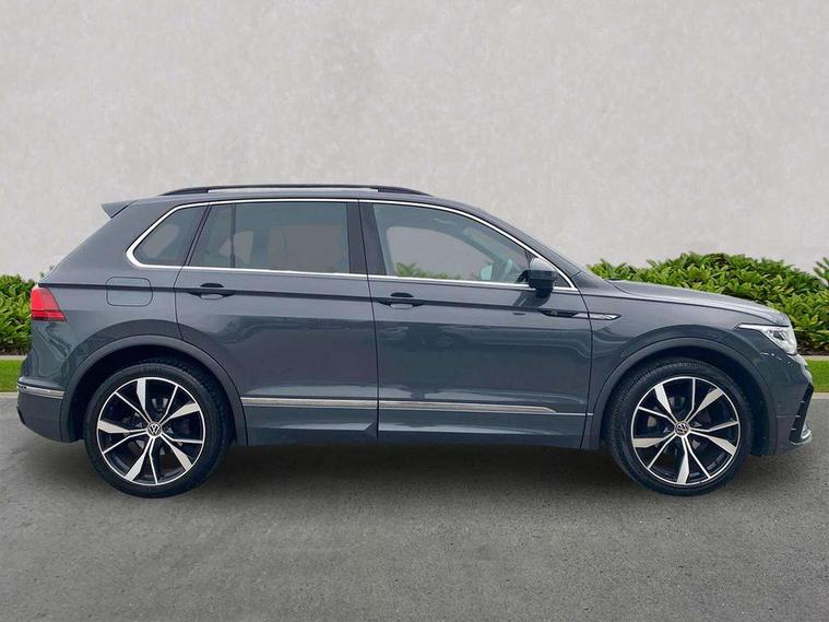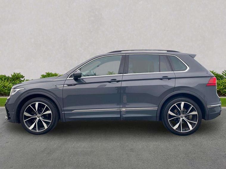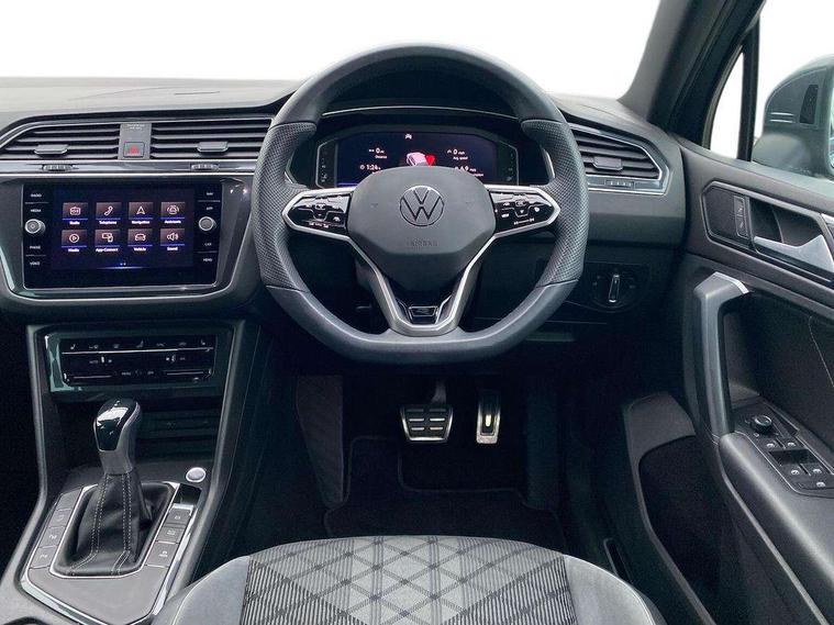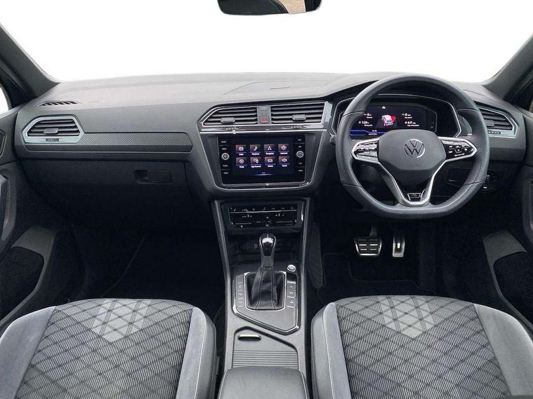 Ambience pack - Tiguan R Line, Driver assistance pack plus - Tiguan Auto, 20" Misano black with diamond turned surface alloy wheels with Airstop tyres, Anti theft alarm system with interior monitoring, backup horn and towing protection, Anti theft wheel bolts, Electronic engine immobiliser, 2 USB-C ports in the front, 1 USB-C charging socket on the center console in the rear, Diversity antenna for FM reception, Radio, SD card slot, Simultaneous pairing of 2 compatible mobile devices, SMS functionality - read, compose and send SMS messages using touch-screen display, Title and cover art display, 3 point seat belt for centre rear seats, 3 point seat belts with seat belt pretensioners for the outer rear seats, Active bonnet, Curtain airbags for front and rear passengers, Driver/Front Passenger airbags, Drivers knee airbag, Electronic parking brake with auto hold, Electronic Stability Control with driver steering recommendation, ABS, ASR, EDL, EDTC and trailer stabilization, Front assist with autonomous emergency braking (for Adaptive Cruise Control ACC up to 130 mph), Front disc brakes, Front passenger airbag deactivation, Front side airbags, Height adjustable front 3 point seatbelts + pretensioners, Hill hold control, Pedestrian monitoring system, Rear disc brakes, Rigid safety cell with front and rear crumple zones, Two tone horn, Warning sound and light for front seat belts if unfastened, Warning triangle, Auto dimming interior rear view mirror, Automatic headlight control system, Black roof rails, Body colour door handles, Body coloured bumpers in R Line style, Chrome moldings on the side windows, Coming/leaving home lighting function, Dynamic headlight range control, Front and rear electric windows, Heated rear window, High level 3rd brake light, Laminated safety glass windshield, heat and sound insulating, LED rear number plate lights, License plate carrier in front and rear, Poor weather light and cornering light, Power adjustable, folding and heated door mirrors with surround lighting, front passenger exterior mirror lowering function, Privacy glass for rear side windows and rear window, R Line body kit, R Line side sills, Rain sensor windscreen wipers, Rear exhaust tailpipe, Rear fog lamp, Rear spoiler in R style, Rear windscreen washer and wiper with interval delay, Side and rear windows in heat insulating glass, Trailer Stability Programme, Unique R Line badging, Windscreen wipers/ intermittent wipe + 4 position delay, 12V outlet in center console rear and in luggage compartment, 12V outlet in front and tray, 2 cup holders in front, 2 LED front reading lights, 2 LED rear reading lights, 3 rear headrests, 4 load lashing points, 40:20:40 split folding rear seats, Air Care Climatronic 3 zone automatic climate control with enhanced air filter and controls in the rear, Backrest release for left front seat, Black headlining, Brushed stainless steel pedals and footrest, Carpet mats in front and rear with decorative stitching in Gray, Door and side trim panel in foam film, insert in leatherette, Driver + front passenger lumbar support, Front footwell illumination, Front seats head restraints (x-adjustment), Height adjustable front seats, Height/reach adjust steering wheel, Instrument lighting white adjustable panel illumination, Interior light with delay, Isofix Preparation 2 Rear child seats, Leather gear knob, Leather wrapped multifunction steering wheel with paddle shift, Lockable cooled glovebox, Luggage compartment lighting, Rear bench seat asymetrically split folding, longitudinally movable and folding with load-through hatch and center armrest, Remote unlocking for rear seat backrest, Removable luggage cover, Safety optimised front head restraints, Sliding/reclining rear seats, Standard rear seat release, Storage compartment in driver's door, Storage compartment in passenger's door, Storage compartment in rear doors, Storage compartments in luggage area left and right, Storage tray on dashboard, Sun visors with illuminated vanity mirrors, Tool kit, Top front comfort seats, Variable boot floor, height adjustable and removable, Adaptive cruise control ACC stop and go including speed limiter, App-Connect incl. App-Connect Wireless for Apple CarPlay and Android Auto, Bluetooth phone integration system, Digital Cockpit Pro - Active info display, Distance control assist, Driver alert system, Driver profile selection, Dynamic road sign display, eCall emergency call system, Electromechanical speed sensitive power steering, Front/rear Parking distance control, Lane keeping system Lane Assist, Lights on warning, Multifunction front facing camera, Outside temperature display, Premium multifunction display with multi colour display, Service interval indicator, Start/stop system with regenerative braking, Tailgate/trunk lid unlocking from outside, Warning sound and light for doors and tailgate open, Battery regeneration during braking, XDS electronic differential lock for improved traction and handling,