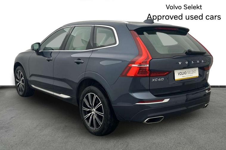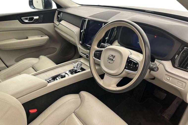 Tailored instrument panel with contrast stitching, Power seat pack - XC60, Anti-theft alarm including immobiliser/volume sensor + level sensor, Care key with user defined top speed, Key integrated remote control central locking + fuel flap with deadlocking system and auto open/close power windows, Locking wheel nuts, Private locking for tailgate, DAB Digital radio, 5 three point seatbelts, City safety with steering support with Pedestrian + cyclist + large animal detection + front collision warning with full auto brake, Drivers knee airbag, Dual stage driver/passenger airbags, Electronic parking brake with auto hold, First aid kit, Hill descent control, Hill start assist, IC (Inflatable Curtains) - Full Length, Passenger airbag cut-off device, Road sign information display, Run off Road Mitigation, Run off Road Protection, Seatbelt reminder and pretensioners, SIPS (Side Impact Protection System), SIPS airbags, Slippery road and hazard light alert, Stability and Traction Control with Spin control, Engine Drag Control and Corner Traction Control, Tyre pressure monitoring system, Vehicle deceleration control with Anti-lock Brake System, Electronic Brake Distribution and Emergency Brake Assist, Warning triangle, WHIPS whiplash protection system - front, Adaptive brake lights with high level LED brake lights, Auto dimming interior + exterior mirrors, Automatic headlight levelling system, Body colour bumpers, Chrome deco lower front bumper, Chrome lower side moulding trim, Chrome window surround, Colour coordinated auto folding and heated power door mirrors, Dual integrated exhaust pipes, Electric front+rear windows, Front aluminium tread plates, Heated aqua blades, High gloss black grille with chrome inserts, Home safe and approach lighting, Illuminated side steps, Integrated silver roof rails, LED front fog lights, LED Headlights + Active high beam incorporating daytime running lights, Rain sensor with automatic windscreen wiper activation, Rear wiper, Roof antenna, Roof spoiler, Tinted windscreen, Visible VIN plate, 12V socket in front tunnel console and cargo compartment, 3 spoke leather steering wheel with chrome trim, B Pillar ventilation, Bright metal luggage threshold, Centre armrest storage illumination, Centre console cupholders and storage, Floor mats, Front and rear door pocket and front cupholder illumination, Front footwell illumination, Front reading lights, Front seat cushion extension and power adjustable front seats side support, Head restraints for all seats, Heated front seats, Height/reach adjustable steering column, High gloss black steering wheel remote infotainment controls, Illuminated glovebox, Illuminated luggage compartment, Illuminated vanity mirrors + ticket holder, Load cover, Load protection net, Multi directional lumbar support, Multicolour theatre lights, Orrefors Crystal Gear Lever Knob, Rear armrest / integral cup holders / storage tray, Rear footwell illumination, Rear seat concealed storage, Tailgate illumination and ambient door lighting, Underfloor stowage compartment, Versatile split folding rear seat - 60/40, 12.3" Active TFT crystal driver's instrument display, 9" Touch screen, Adjustable steering wheel force, Bluetooth handsfree system, Drive mode selector, Driver alert control with lane keeping aid, Oncoming Lane Mitigation, Sensus navigation with European mapping and traffic information, Service interval indicator, Speed limiter, Speed sensitive steering, Trip computer, Voice control system, Volvo on call, 8 speed automatic transmission with start/stop + manual change functions, All wheel drive system, Diesel particulate filter,