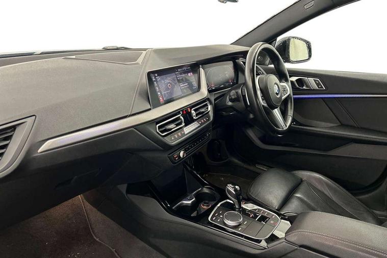 Contrast stitching on instrument panel, Additional interior lighting pack - 2 Series Gran Coupe, Connected pack professional - 2 Series Gran Coupe, Extended storage pack - 2 Series Gran Coupe, M Sport exterior styling aerodynamics pack - 2 Series Gran Coupe, 18" Burnished M double spoke bi-colour alloy wheels finished in orbit grey - style 819M, Reduced rolling resistance tyres, Central locking switch for all doors, fuel filler cap and luggage compartment, Deadlocking function system to all doors, Drive away locking system on all doors and luggage compartment, Locking wheel bolts, Start/Stop button (illuminated) in centre console with keyless engine start and Auto Start-Stop deactivation button, Thatcham Cat.1 alarm and immobiliser, Two remote control key with integrated key - open/close doors/fuel flap/tailgate +1 button for unlock compartment with M design high gloss black inlay, 2x USB Type C ports (for charging and data transfer), 4G LTE Connectivity with hard wied 4G network sim card, DAB digital radio, MP3 players and RDS double tuner, 2 tone horn, Airbag - Front driver and passenger, front and rear head, front side, curtain head protection, manual deactivation of front passenger airbag possible, Anti lock braking system (ABS) with cornering brake control, BMW emergency call, Brake drying, Braking readiness, Crash sensor activating of airbags, Unlocking doors, hazard warning lights, fuel cut off, interior lighting+activation of safety battery terminal clamp, Dynamic stability control + (DSC+), Dynamic Traction Control - DTC, Electrically operated hand brake, Rear brake discs, Rear child proof door locks, Seat belt security check for driver and front passenger, Seatbelt warning, Side impact protection, Three point seat belts on all seats including front belt stopper, pyrotechnic belt tensioners and belt force limiters, Trailer stability control, Tyre pressure monitoring system, Ventilated front disc brakes, Warning triangle and first aid kit, Automatically dimming rear view mirror, Body colour door handles, Body colour mirror caps, Chrome 'M' logo side designation, Chrome exhaust single tailpipe, round, Direction indicator side lights integrated exterior mirrors, Electric windows - front and rear, with open/close fingertip control and trap release, Exterior mirrors - electrically folding with anti-dazzle, Fading support, Follow me home headlights, Front and rear bumper system with replaceable deformation elements, Front door sill finishers in black plastic with M designation in metallic look, Heated, electrically adjustable exterior mirror aspheric on driver side, convex on passenger side, High gloss black B pillar finish, High gloss shadow line exterior trim, High level third brake light, LED daytime running lights, LED front fog lights, Lightweight engineering, Model designation on right side of tailgate, Preparation for high beam assistant, Rain sensor with automatic headlight activation, Rear fog lights, Reversing light in rear light cluster, Welcome lighting, 12V power socket in centre console, 2 cupholders in front centre console, 3 rear seat head restraints, 3 spoke M sports design leather steering wheel finished in nappa leather with specific M badge, Anthracite finished floor mats with contrasting surround, Anthracite headlining, Automatic two zone climate control air conditioning, Child seat ISOFIX attachment for two outer rear seats and front passenger seat with anchorage points, Conditioned based service, Dakota leather upholstery with perforation and contrast stitching, Driver and front passenger seat heating, Front and rear door pockets including bottle trays, Front and rear side armrests integrated into door trim, Front armrest foldable with integrated storage compartment, Front centre interior light over interior mirror and rear centre automatic interior light when door is opened/ignition switched off or via remote key, Front head restraints, Front sports seats with electric side bolster adjustment, Glove compartment, Glovebox with light, Luggage compartment lighting, Manually adjustment steering wheel column, Multi-function controls for steering wheel, Shift-by-wire selector shift, Steering wheel paddles, Sun visors with vanity mirrors and insert tab, Through loading system with 40/20/40 split folding rear seat, Two lashing eyes, Active guard plus, Attentiveness assist, Auto start-stop, BMW Intelligent Personal Assistant, BMW Live Cockpit Professional with 10.25" high resolution instrument and control display, BMW Online services, BMW operating system with 7.0 mid interface, BMW Teleservices, Check Control warning system for monitoring of lights and door/luggage compartment open warning, iDrive controller with touch function and 7 short cut favourite buttons on centre console, Integrated navigation data with map data via USB +features such as 3D landmarks and micro city models, Integrated owners handbook, Intelligent voice assistant, M Sports steering, On board computer - average speed+fuel consumption, service interval, clock/date, odometer/trip meter, outside temperature display and ice warning, Optimum shift indicator, Personal Profile, Pull away assistant, Speed limiting function, 8 speed sport automatic transmission with electronic selector lever, auto P function, coasting idle, race track, sport, gearchange display manual mode, Aluminium lightweight construction, Balancer shaft, Common rail direct injection, Diesel particulate filter, DOHC valvetrain with two upper camshafts, Drive performance control with ECO PRO comfort + sport mode, Electronic differential lock, Incorrect fuelling protection, Larger fuel tank capacity (50 litres), Launch control, M Sport suspension with stiffer spring/damper set-up and vehicle lowered by 10mm + twin tube gasfilled shock absorbers and Anti roll bars, Performance Control, TwinPower turbocharger with variable vane turbine geometry,