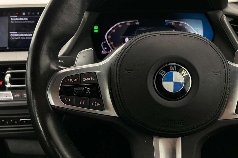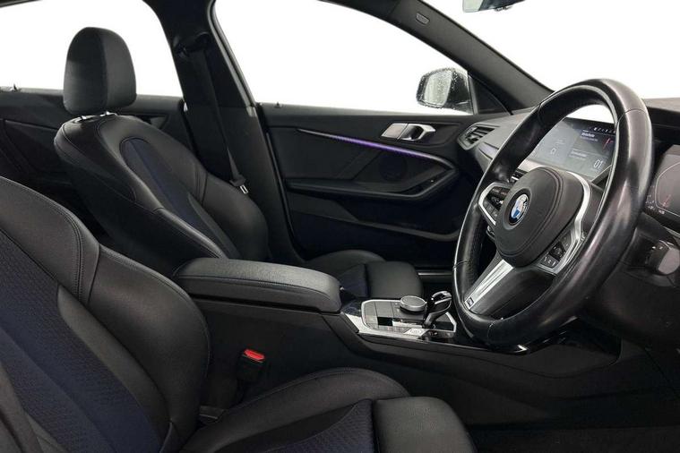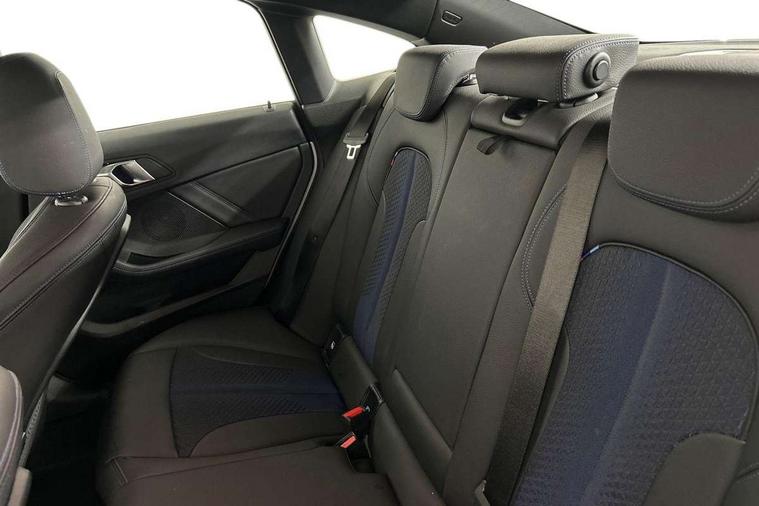 Contrast stitching on instrument panel, Additional interior lighting pack - 2 Series Gran Coupe, Extended storage pack - 2 Series Gran Coupe, M Sport exterior styling aerodynamics pack - 2 Series Gran Coupe, 18" Burnished M double spoke bi-colour alloy wheels finished in orbit grey - style 819M, Reduced rolling resistance tyres, Central locking switch for all doors, fuel filler cap and luggage compartment, Deadlocking function system to all doors, Drive away locking system on all doors and luggage compartment, Locking wheel bolts, Start/Stop button (illuminated) in centre console with keyless engine start and Auto Start-Stop deactivation button, Thatcham Cat.1 alarm and immobiliser, Two remote control key with integrated key - open/close doors/fuel flap/tailgate +1 button for unlock compartment with M design high gloss black inlay, 2x USB Type C ports (for charging and data transfer), 4G LTE Connectivity with hard wied 4G network sim card, DAB digital radio, MP3 players and RDS double tuner, 2 tone horn, Airbag - Front driver and passenger, front and rear head, front side, curtain head protection, manual deactivation of front passenger airbag possible, Anti lock braking system (ABS) with cornering brake control, BMW emergency call, Brake drying, Braking readiness, City braking function, Crash sensor activating of airbags, Unlocking doors, hazard warning lights, fuel cut off, interior lighting+activation of safety battery terminal clamp, Dynamic stability control + (DSC+), Dynamic Traction Control - DTC, Electrically operated hand brake, Rear brake discs, Rear child proof door locks, Seat belt security check for driver and front passenger, Seatbelt warning, Side impact protection, Three point seat belts on all seats including front belt stopper, pyrotechnic belt tensioners and belt force limiters, Trailer stability control, Tyre pressure monitoring system, Ventilated front disc brakes, Warning triangle and first aid kit, Auto wipers, Automatic headlight beam throw control, Automatically dimming rear view mirror, Body colour door handles, Body colour mirror caps, Chrome 'M' logo side designation, Chrome exhaust single tailpipe, round, Direction indicator side lights integrated exterior mirrors, Electric windows - front and rear, with open/close fingertip control and trap release, Exterior mirrors - electrically folding with anti-dazzle, Fading support, Follow me home headlights, Front and rear bumper system with replaceable deformation elements, Front door sill finishers in black plastic with M designation in metallic look, Heated, electrically adjustable exterior mirror aspheric on driver side, convex on passenger side, High gloss black B pillar finish, High gloss shadow line exterior trim, High level third brake light, LED daytime running lights, LED front fog lights, LED Headlights, Lightweight engineering, Model designation on right side of tailgate, Preparation for high beam assistant, Rain sensor with automatic headlight activation, Rear boot, Rear fog lights, Rear side wing doors, Reversing light in rear light cluster, Welcome lighting, 12V power socket in centre console, 2 cupholders in front centre console, 3 rear seat head restraints, 3 rear seats, 3 spoke M sports design leather steering wheel finished in nappa leather with specific M badge, Anthracite finished floor mats with contrasting surround, Anthracite headlining, Automatic two zone climate control air conditioning, Child seat ISOFIX attachment for two outer rear seats and front passenger seat with anchorage points, Conditioned based service, Driver and front passenger seat heating, Front and rear door pockets including bottle trays, Front and rear side armrests integrated into door trim, Front Armrest foldable with integrated storage compartment, Front centre interior light over interior mirror and rear centre automatic interior light when door is opened/ignition switched off or via remote key, Front head restraints, Front passenger seat, Front sports seats with electric side bolster adjustment, Glove compartment, Glovebox with light, Luggage compartment lighting, Manually adjustment steering wheel column, Multi-function controls for steering wheel, Shift-by-wire selector shift, Steering wheel paddles, Sun visors with vanity mirrors and insert tab, Through loading system with 40/20/40 split folding rear seat, Two lashing eyes, Active guard plus, Attentiveness assist, Auto start-stop, BMW Intelligent Personal Assistant, BMW Live Cockpit Professional with 10.25" high resolution instrument and control display, BMW Online services, BMW operating system with 7.0 mid interface, BMW Teleservices, Check Control warning system for monitoring of lights and door/luggage compartment open warning, Cruise control with braking function, iDrive controller with 7 short cut favourite buttons on centre console, Integrated navigation data with map data via USB +features such as 3D landmarks and micro city models, Integrated owners handbook, Intelligent voice assistant, Lane departure warning system, M Sports steering, On board computer - average speed+fuel consumption, service interval, clock/date, odometer/trip meter, outside temperature display and ice warning, Optimum shift indicator, Personal Profile, Pull away assistant, Speed limiting function, 8 speed sport automatic transmission with electronic selector lever, auto P function, coasting idle, race track, sport, gearchange display manual mode, Aluminium lightweight construction, Balancer shaft, Common rail direct injection, Diesel particulate filter, DOHC valvetrain with two upper camshafts, Drive performance control with ECO PRO comfort + sport mode, Electronic differential lock, Larger fuel tank capacity (50 litres), Launch control, M Sport suspension with stiffer spring/damper set-up and vehicle lowered by 10mm + twin tube gasfilled shock absorbers and Anti roll bars, Performance Control, TwinPower turbocharger with variable vane turbine geometry,