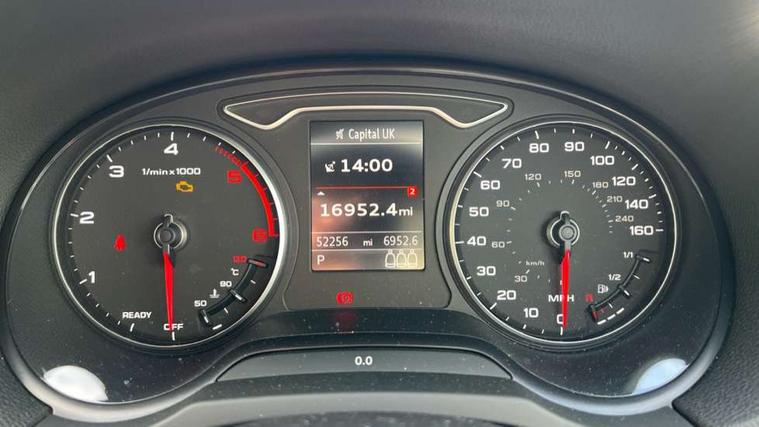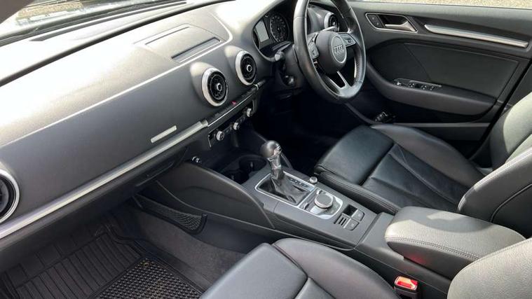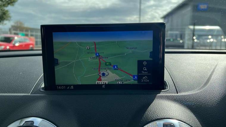 Aluminium air vent surrounds, Aluminium mistral silver inlay, Aluminium trim elements, Non smoking pack - A3, Storage and luggage pack - A3/RS3, Tyre repair kit, Anti theft alarm, Anti-theft wheel bolts, Remote control central locking, Thatcham category 1 alarm + immobiliser, 2 USB interfaces and Aux-In jack, Audi music interface, CD player, DAB Digital radio, MMI radio plus with 7" colour MMI screen and MMI controller, 3 point seatbelts on all seats, ABS/EBD, Active bonnet, Active front headrests, Airbags - front driver/passenger, front & rear side, curtain, drivers knee, ASR, EDL, Electromechanical parking brake, ESC - Electronic Stability Control + traction control, Front passenger airbag deactivation, Hill hold assist, Manual rear child locks, Multi-Collision braking, Seatbelt warning, Tyre pressure warning, Warning triangle and first aid kit, Aluminium window trim, Auto dimming rear view mirror with light and rain sensors, Body colour bumpers, Body colour door mirrors, Body colour roof spoiler with aerodynamic inserts in high gloss black, Chrome exhaust tailpipes, Electric front windows, Electric rear windows, Electrically adjustable and heated door mirrors with integrated LED side indicators, Heated windscreen washer jets, Matt black radiator grille, Rear wiper, Sport specific side air inlet grille and diffuser insert, Xenon headlights with LED Daytime running light, 3 adjustable rear headrests, 4 lashing points to secure luggage, Adjustable front centre armrest, Aluminium door sill trims, Dual zone electronic climate control, Front and rear interior lights with delay, Front/rear floor mats, Glovebox light, Height and reach adjustable steering wheel, Isofix child seat preparation for front passenger/outer rear seats inc passenger airbag deactivation, Rock grey headlining, Storage compartments in doors side trims, centre console and under front drivers seat, Tool kit, Audi connect, Audi drive select, Audi smartphone interface, Automatic start/stop system, Colour driver's information system display, Electro - mechanical power assisted steering, Mobile telephone preparation - bluetooth interface, SD card based satellite navigation system, Service interval indicator, Speed limit display, Voice control system, Voice recognition for navigation system, Diesel particulate filter,