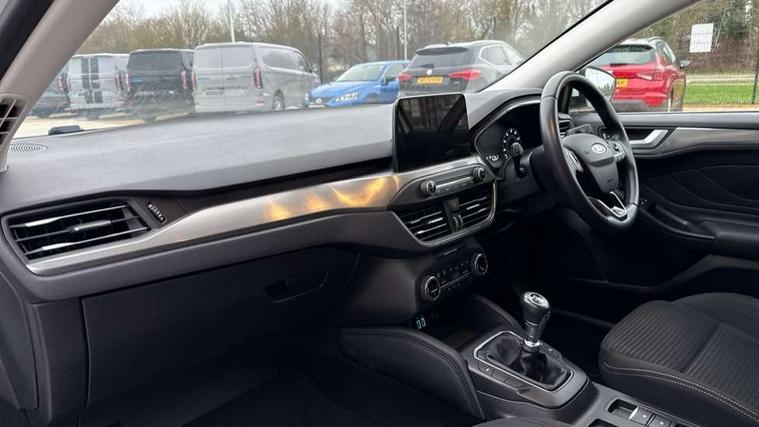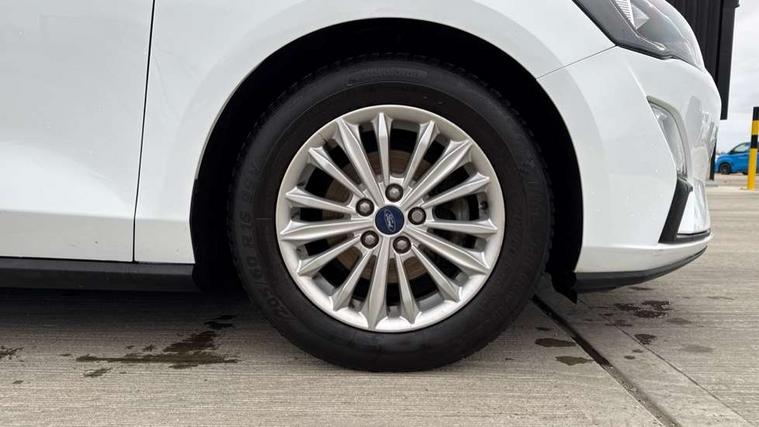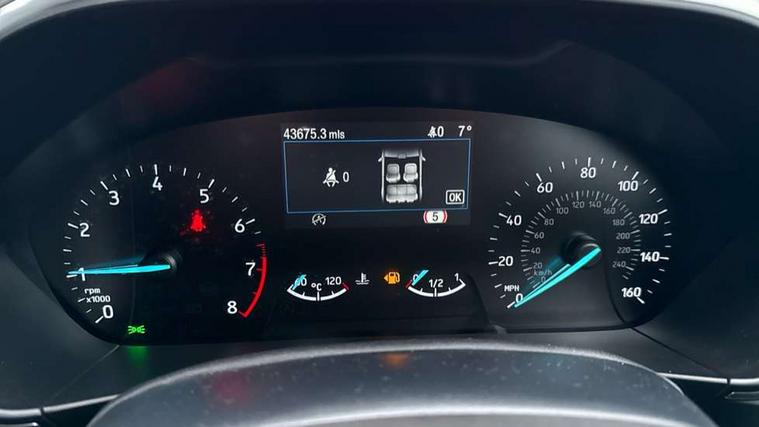 16" 15 spoke sparkle silver alloy wheels, Mini steel spare wheel, Ford keyfree system with Keyless entry and keyless start/sleep mode key fob, MyKey system, Remote central locking & engine immobiliser, Thatcham category 1 alarm, 2 USB ports, Aux input, 3x3 point rear seatbelts, ABS+Electronic Brake force Distribution, Auto hold function, Driver airbag, Electronic parking brake, Electronic stability control, Front and rear seatbelt reminder, Front inertia reel height adjustable seatbelts with pre-tensioners, Front passenger airbag, Front side airbags, Hill start assist, Passenger airbag deactivate switch, Post collision braking, Pre collision assist with autonomous emergency braking and pedestrian/cyclist detection, Side curtain airbags, Three rear inertia reel lap/diagonal seatbelts, Tyre pressure monitoring system, Auto dimming rear view mirror, Auto headlamps (on/off), Automatic rain sensing wipers, Body coloured bumpers, Body coloured door handles, Body coloured electrically operated and heated door mirrors with side indicators, Electrically operated front and rear windows with one touch opening and closing, Front fog lamps with cornering function, Front variable intermittent wipers with electric wash, Heated rear window, LED daytime running lamp, LED rear lamps, LED reflector headlamps, Power folding door mirrors with puddle lights, Quickclear heated windscreen, Tailgate wash/wipe, Upper grille with chrome surround and horizontal bars, 3 spoke leather trimmed steering wheel with integrated audio controls, Ambient lighting, Cloth upholstery, Driver's lumbar support, Dual zone electronic air temperature control, Front passenger seat manual height adjust, Front/rear floor mats, Height adjustable front headrests, Isofix child seat preparation, Leather gear knob, Reach + rake adjustable steering column, Rear centre headrest, 4.2" TFT coloured cluster, Bluetooth system, Digital clock, Easy fuel capless refuelling system, Eco mode, Ford SYNC 3 navigation with 8" TFT touchscreen, DAB radio and app link Android auto/Apple carplay, Intelligent speed assist, Lane keeping system - lane keeping alert and lane keeping aid, PAS, Selectable drive mode, Trip computer, Wireless charging pad,