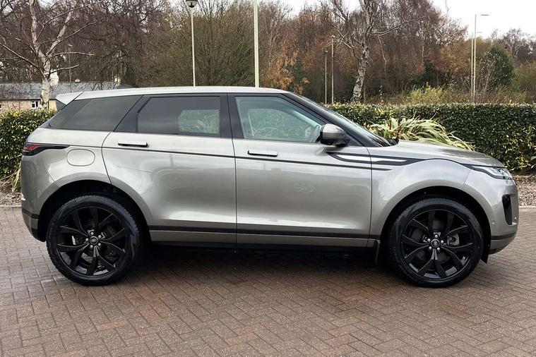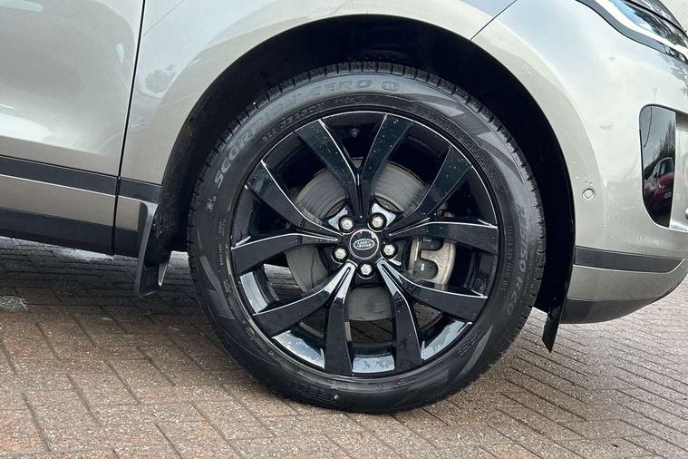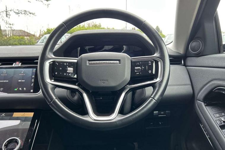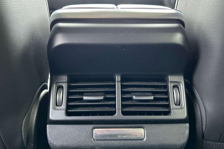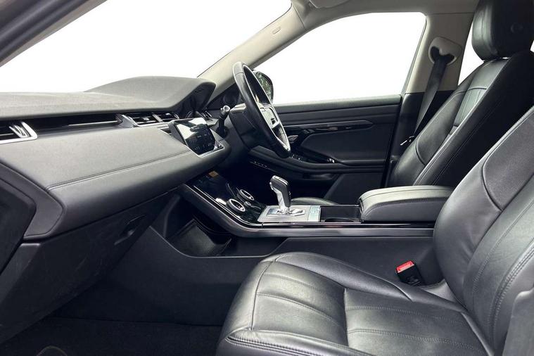 Alarm, Immobiliser, Intrusion sensor, Locking wheel nuts, Digital Audio Broadcast radio-DAB, Steering wheel mounted controls, 3 rear 3 point seatbelts, Anti-lock braking system (ABS), Customer configurable autolock, DSC - Dynamic Stability Control, Electronic brake force distribution, Electronic parking brake, Electronic traction control, Emergency braking, Front and rear seatbelt reminder, Hill descent control, Hill launch assist, Low traction launch, Power operated child locks, Roll stability control, Six airbags - Driver and passenger airbags/driver knee airbag/front side airbag and curtain airbags, Torque vectoring brake, Tyre pressure monitoring system, Animated directional indicators, Auto headlights, Automatic headlight levelling, Electric windows with one touch open/close and anti trap, Evoque badge, Flush deployable exterior door handles, Heated rear window with timer, Heated washer jets, Heated windscreen, Power fold, auto-dimming, heated door mirrors with approach lights and auto dimming driver side, Rain sensing windscreen wipers, Rear fog lights, Rear side wing doors, Rear wiper, Tailgate spoiler, Third brake light, 40:20:40 split folding rear seats with centre headrest and armrest, Ambient interior lighting, Isofix system on outer rear seats, Overhead lighting console, Overhead stowage for sunglasses, Passive front head restraints, Rear air vents, Rear centre headrest, Rear head restraints, Single passenger seat, Sunvisors with illuminated vanity mirrors, Twin sliding front centre armrest, 3D 360 degree surround camera, Android Auto, Apple car play, Blind spot assist, Bluetooth connectivity, Brake pad wear indicator warning light, Clear exit monitor, Driver condition monitor, Duo touch pro, eCall emergency system, Electronic power assisted steering (EPAS), InControl remote, Interactive Driver display instrument cluster, Land Rover InControl apps, Lane keep assist, Pivi pro connected includes upgraded infotainment, connected navigation pro, Nuance speech licence, Push button starter, Rear traffic monitor, Traffic sign recognition with adaptive speed limiter, Voice control system, Wade Sensing, All terrain progress control, Efficient Driveline, Passive suspension, Terrain Response 2 Auto,