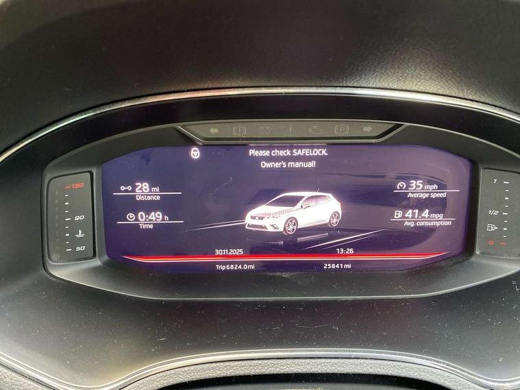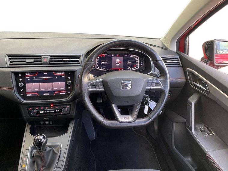 Full LED headlight pack - Ibiza, 18" Performance machined bi-colour alloy wheels, 2 folding remote keys with window open/close function, Electronic engine immobiliser, Locking wheel bolts, Remote central locking + deadlocks, Volumetric alarm with back up horn, 6 speakers, Auxiliary input socket, CD player, Digital Audio Broadcast (DAB) Tuner, Radio/MP3 player, SD card slot, SEAT USB media cable, Steering wheel mounted controls, USB port, 3 point seatbelts on all 3 rear seats, ABS, Active front headrests, Child locks on rear doors, Curtain airbags, Driver/Front Passenger airbags, ESP+EBA, Front assist (AEB), Front passenger airbag deactivation, Front side airbags, Hill hold control, Multi-Collision braking, Seatbelt warning, Tiredness recognition system, Tyre pressure monitoring system, Anti theft roof antenna, Auto dimming rear view mirror, Automatic headlights, Automatic rain sensing wipers, Body colour bumpers, Body colour door handles, Brilliant black door mirrors, Chrome front grille frame, Chrome grille, Coming/leaving home lighting function, Cornering front fog lights, Dark tinted rear windows, Electric folding door mirrors, Electric front windows, Electric headlight adjustment, Electrically adjustable and heated door mirrors, Exclusive FR rear bumper, Full LED headlights, Ice metal door side panels, LED daytime running lights, LED tail lights, Rear fog lights, Twin exhaust pipes, 3 rear headrests, 60/40 split folding rear seat, Door and steering wheel ice metal decorative inserts, Driver's sunvisor with ticket holder/vanity mirror, Dual zone climate control, Dust/pollen filter, Flat bottomed perforated leather steering wheel with red stitching and FR logo, Front courtesy lights, Front cupholders x 2, Front reading lights, Gear shift indicator, Glovebox, Height adjustable driver's seat, Height adjustable front/rear head restraints, Height adjustable passenger seat, Height/reach adjust steering wheel, Illuminated boot, Instrument lighting with brightness control, Leather dashboard, Leather handbrake, Leather steering wheel and gear knob, Leather trim on side panels, Microsuede cloth upholstery, Multi-colour ambient interior lighting, Passenger sunvisor, Rear top tether child seat ISOFIX attachment, Sports seats, 'Lights On' Reminder warning buzzer, Bluetooth Handsfree Phone Connection, Cruise control, Digital clock, Digital cockpit, Full Link Smartphone Integration with Mirror Link, Apple Car Play, Google Android Auto, Low fuel warning light, Outside temperature gauge, Satellite navigation system with 3D mapping, 8" touch screen, voice control and additional USB port, SEAT Drive profile, SEAT logo boot release, Speed sensitive power steering, Trip computer, Sports suspension,