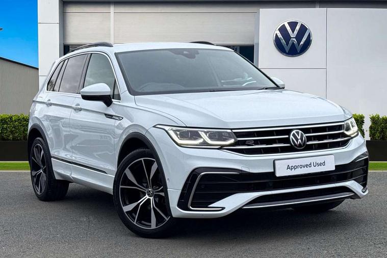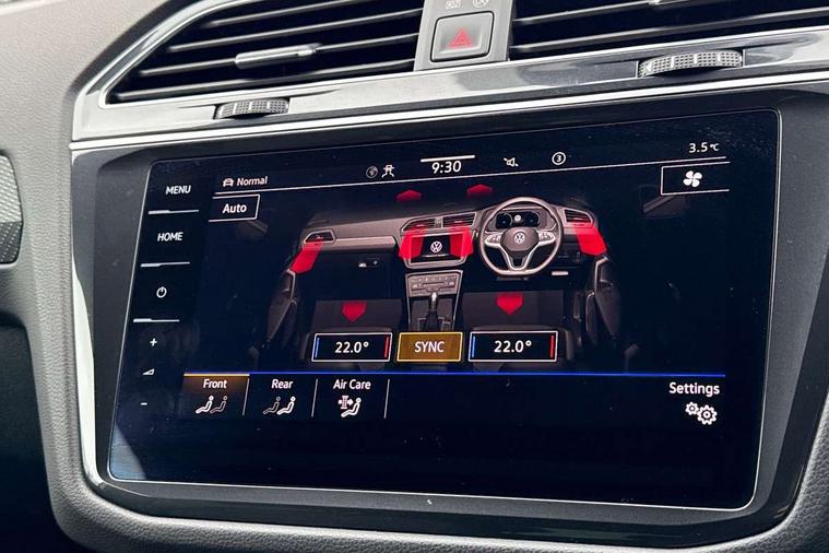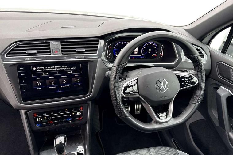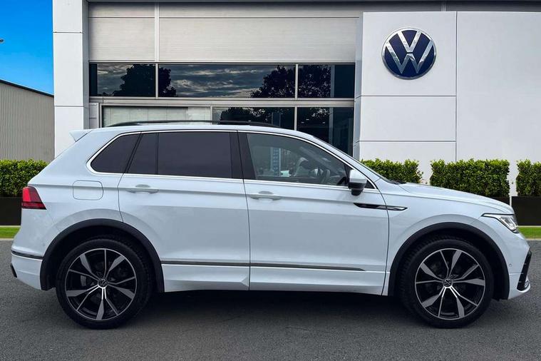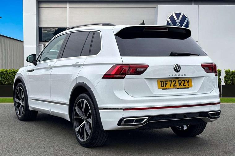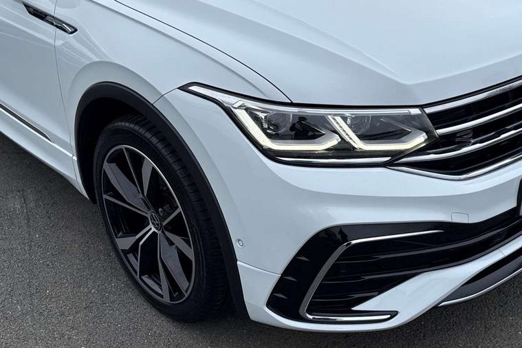 Driver assistance pack plus - Tiguan DSG, Anti theft alarm system with interior monitoring, backup horn and towing protection, Anti theft wheel bolts, Electronic engine immobiliser, 4 X 20 watt output, 8 speakers, Diversity antenna for FM reception, SD card slot, Simultaneous pairing of 2 compatible mobile devices, SMS functionality - read, compose and send SMS messages using touch-screen display, Title and cover art display, USB C ports, 3 point seat belt for centre rear seats, 3 point seat belts with seat belt pretensioners for the outer rear seats, Active bonnet, Curtain airbags for front and rear passengers, Driver/Front Passenger airbags, Drivers knee airbag, Electronic parking brake with auto hold, Electronic Stability Control with driver steering recommendation, ABS, ASR, EDL, EDTC and trailer stabilization, Front assist with autonomous emergency braking (for Adaptive Cruise Control ACC up to 130 mph), Front disc brakes, Front passenger airbag deactivation, Front side airbags, Height adjustable front 3 point seatbelts + pretensioners, Hill hold control, Manual child proof rear door locks, Pedestrian monitoring system, Power assisted brakes, Proactive passenger protection system in combination with front assist, Rear disc brakes, Rigid safety cell with front and rear crumple zones, Two tone horn, Warning sound and light for front seat belts if unfastened, Auto dimming interior rear view mirror, Automatic headlight control system, Body colour door handles, Chrome moldings on the side windows, Coming/leaving home lighting function, Dynamic headlight range control, Front and rear electric windows, Heated rear window, High level 3rd brake light, Laminated safety glass windshield, heat and sound insulating, LED headlamps with LED separate daytime running light and dynamic cornering light, LED rear combination lamps, LED rear number plate lights, License plate carrier in front and rear, Poor weather light and cornering light, R Line body kit, R Line side sills, Rain sensor windscreen wipers, Rear exhaust tailpipe, Rear fog lamp, Rear side wing doors, Rear spoiler in R style, Rear windscreen washer and wiper with interval delay, Side and rear windows in heat insulating glass, Trailer Stability Programme, Unique R Line badging, Windscreen wipers/ intermittent wipe + 4 position delay, 12V outlet in center console rear and in luggage compartment, 12V outlet in front and tray, 2 cup holders in front, 2 LED front reading lights, 2 LED rear reading lights, 3 bench rear seats in 2nd row, 3 rear headrests, 4 load lashing points, 40:20:40 split folding rear seats, Air Care Climatronic 3 zone automatic climate control with enhanced air filter and controls in the rear, Backrest release for left front seat, Black headlining, Brushed stainless steel pedals and footrest, Carpet mats in front and rear with decorative stitching in Gray, Climate control unit rear with touch function, Door and side trim panel in foam film, insert in leatherette, Front centre armrest, Front footwell illumination, Front seats head restraints (x-adjustment), Height adjustable front seats, Height/reach adjust steering wheel, Instrument lighting white adjustable panel illumination, Interior light with delay, Isofix Preparation 2 Rear child seats, Leather gear knob, Lockable cooled glovebox, Luggage compartment lighting, Luggage net, Rear bench seat asymetrically split folding, longitudinally movable and folding with load-through hatch and center armrest, Remote unlocking for rear seat backrest, Removable luggage cover, Removable rear headrests, Safety optimised front head restraints, Single front passenger seat, Sliding/reclining rear seats, Standard rear seat release, Storage compartment in driver's door, Storage compartment in passenger's door, Storage compartment in rear doors, Storage compartments in luggage area left and right, Storage tray on dashboard, Sun visors with illuminated vanity mirrors, Tool kit, Top front comfort seats, Variable boot floor, height adjustable and removable, Adaptive cruise control ACC stop and go including speed limiter, App-Connect incl. App-Connect Wireless for Apple CarPlay and Android Auto, Bluetooth phone integration system, Distance control assist, Driver alert system, Driver profile selection, Dynamic road sign display, eCall emergency call system, Electromechanical speed sensitive power steering, Engine start/stop button, Lane keeping system Lane Assist, Lights on warning, Multifunction front facing camera, Outside temperature display, Premium multifunction display with multi colour display, Remote control boot opening, Rev counter, Revision / skills operating concept travel assistant, Service interval indicator, Speed limit display, Start/stop system with regenerative braking, Trip computer, Warning sound and light for doors and tailgate open, Battery regeneration during braking, Diesel particulate filter, Misfuel prevention device for diesel engine, Selective Catalytic Reduction, XDS electronic differential lock for improved traction and handling,