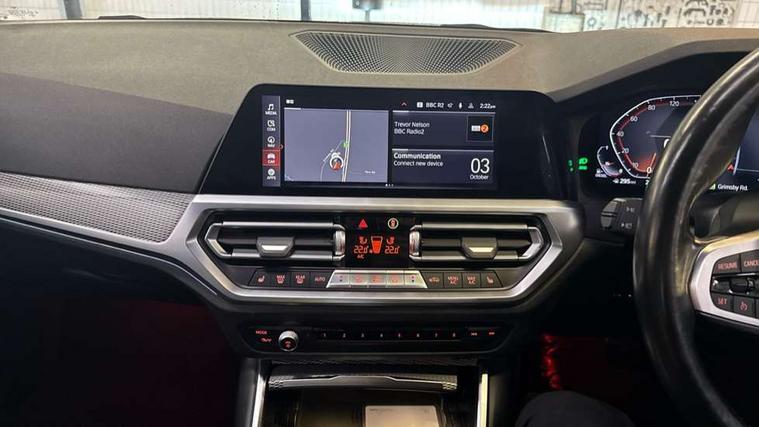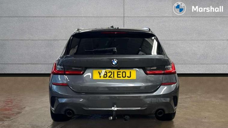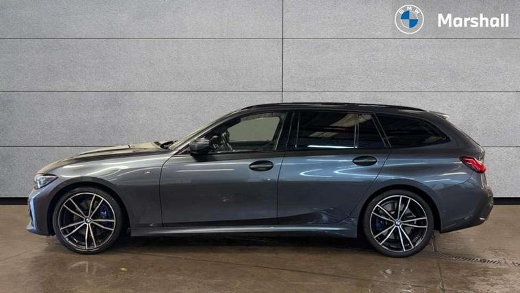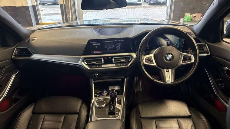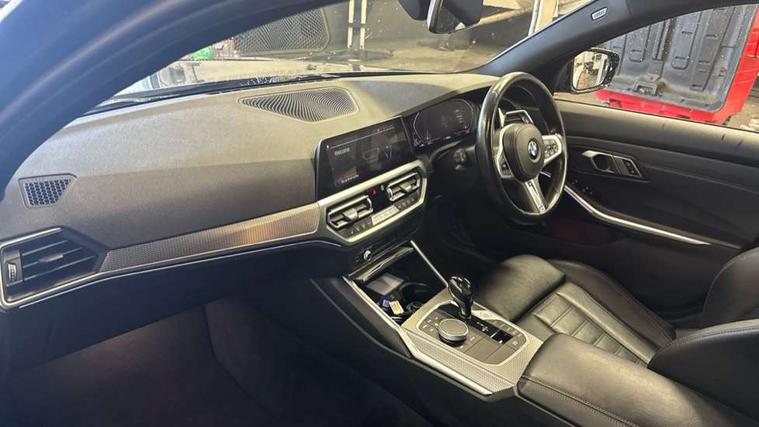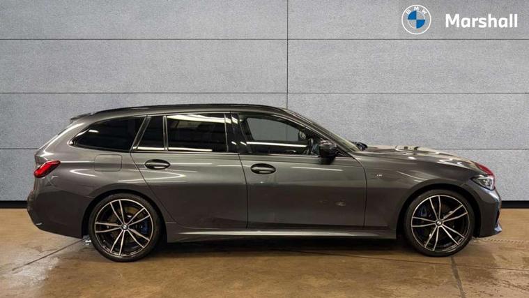 Connected pack professional - 3 Series Saloon/Touring, Live cockpit professional pack - 3 series, M sport exterior styling pack - 3 Series Saloon/Touring, Reduced rolling resistance tyres, Alarm system (Thatcham 1) with remote control and electronic engine immobiliser, Central locking switch for all doors, fuel filler cap and luggage compartment, Remote control with integrated key one button open/close vehicle and windows, sole opening of the luggage compartment lid and panic mode, Start/stop button with Comfort Go keyless engine start and auto Start/stop deactivation button, Vehicle key with M specific designation, DAB tuner, Electronic service booklet, 2 tone horn, 3 rear seats with non folding headrests, Airbags activation controlled with intensity and scope, BMW emergency call, Brake energy regeneration, Braking pre-tensioning, Child proof locking system in rear door, Child seat ISOFIX attachment rear outer seats, Coasting in idle in ECO PRO mode, Crash sensor activating of airbags, Unlocking doors, hazard warning lights, fuel cut off, interior lighting+activation of safety battery terminal clamp, Deactivation of fuel pump in the event of a crash, Driver and front passenger side airbags, integrated in the door side seat backrest bolsters for all seat variants, Driver/Front Passenger airbags, Dry braking, Dynamic brake control, Dynamic stability control + (DSC+) - Anti-lock Braking System (ABS) with brake assist and cornering brake control + Automatic Stability Control (ASC), Dynamic Traction Control - DTC, Electromechanical parking brake including automatic hold function and automatic release of the parking brake when pulling away, Electronic differential lock control (EDLC), Front passenger manual airbag deactivation, Head airbags for all 4 outer seats, Hill start assist, Seat belt security check for driver and front passenger, Side impact protection, Three 3 point seat belts on all seats including front belt stopper, pyrotechnic belt tensioners and belt force limiters, Tyre pressure monitoring with three level warning strategy, Ventilated front and rear disc brakes, Warning triangle and first aid kit, Acoustic glazing, Active airstream chrome frame kidney grille with 8 high gloss black vertical slats, Automatic headlight activation/adjustment, Automatic headlight beam throw control with load dependent regulating reaction, dynamic compensation of braking dive and acceleration squat, Black roof mouldings, Body colour door handles, Body colour fuel filler flap, Body colour mirror caps with bottom segment in matt black, Dynamic brake lights, Electric windows - front and rear, with open/close fingertip control, anti-trap facility and comfort closing, Exhaust tailpipe - split left and right, Exterior mirrors - electrically folding with anti-dazzle, Fading support, Front and rear bumper system with replaceable deformation elements, Front black door sill finishers with BMW designation, Green tinted heat protection glazing, High gloss black exterior B pillar, Interior rear view electrochromatic mirror with automatic anti dazzle function, LED daytime running lights, LED front fog lights, Lightweight engineering, M designation on front side panels, left and right, Model designation on right side of tailgate, Rear wiper, Shark fin antenna, Two part LED tailights in L-shape with components in smoked glass, brake light, LED turn indicator and rear fog light, Visible VIN plate, Welcome lights in interior and door handle area, Windscreen wipers with integrated washing jets, 12V power socket in front storage compartment, 2 front cupholder in centre console with clamping elements and matt black inlay, 3 zone automatic air conditioning, 4 pieces lashing eyelets in luggage compartment, 40:20:40 split folding rear seat with loading system, Ambient lighting with welcome carpet light, Anthracite headlining, Armrest integrated in front and rear door trim + front centre console armrest, Centred top Luggage compartment lights, Four grab handles integrated in roof lining, Front and rear door exit lighting (left / right), Front and rear door pockets, Front and rear reading lights, Front and rear velour floor mats, Front head restraints, Front sport seats, Heated driver and front passenger seats, Height adjustable mechanically and infinitely variable steering column, Illuminated armrest storage compartment, Illuminated glove compartment with separate small compartment, Interior lighting - front centre over interior mirror with soft light, rear centre and front and rear footwell lighting, Make-up mirror lights, Rear centre armrest with 2 cupholders, Rear centre console with storage compartment and ventilation grille, Sunvisors with vanity mirrors and ticket pocket, Three spoke multifunction M sport leather steering wheel, Toolkit located in luggage compartment, Active guard plus, Attentiveness assist, BMW ConnectedDrive oline services with BMW apps, BMW service history, BMW Teleservices, Brake pad wear indicator in front and rear, Check Control warning system for monitoring of lights and door/luggage compartment open warning, Condition based service, Electric power steering with Servotronic steering optimised at all speed ranges, Gearshift time display in manual mode, iDrive controller on centre console, Instrument cluster with speedometer with mph readout, tachometer, fuel gauge and oil temperature gauge, Integrated owners handbook, Oil sensor for level and grade, warning by check control system, On board computer - average speed+fuel consumption, service interval, clock/date, odometer/trip meter, outside temperature display and ice warning, Optimum shift indicator, Personal Profile - automatic lock when driving away selectable, Recovery braking system, Variable sport steering, 48V Mild hybrid technology, 8 speed automatic steptronic transmission, Balanced 50/50 weight distribution, Battery cut-out switch, Common rail technology, Diesel particulate filter, Drive performance control - ECO PRO, comfort and sport