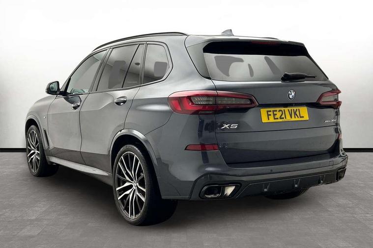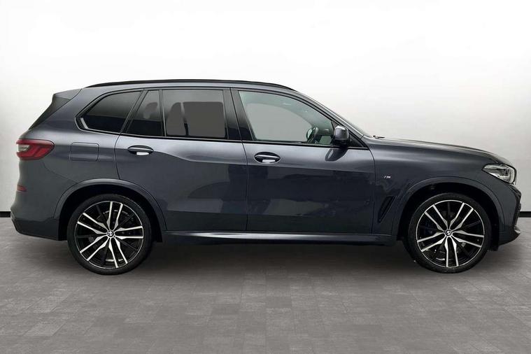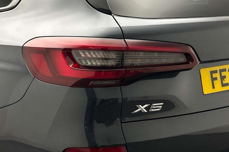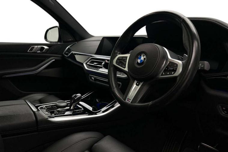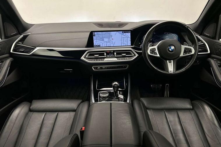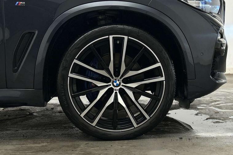 Start/stop toggle diamond shaped trim finisher in pearl chrome, Connected Package Professional - X5, Expanded exterior mirror pack - X5/X5 M, Non-smokers pack - X5, Closing system with central locking, Driver and front passenger door centre lock switch, Locking wheel bolts, Thatcham 1 alarm system with remote control and engine immobiliser, DAB Tuner enables digital radio reception, Favourite buttons, USB connection, USB type A 1.5A in cupholder, USB Type C 3A in centre armrest, Airbags - driver/front passenger, rear and side, first and second row seats head airbags, front passenger seat airbag deactivation + knee airbag, Anti-lock braking system (ABS), Automatic Stability Control (ASC), Brake drying, Brake energy regeneration, Brake fade compensation, Braking pre-tensioning, Cornering brake control (CBC), Crash sensor activating central locking release, hazard warning lights, fuel cut off, interior lighting + activation of safety battery terminal clamp, Deformation zones - front and rear with door reinforcements and bumpers up to 2.5 mph, DSC - Dynamic Stability Control, Dynamic brake control, Dynamic Traction Control - DTC, Electromechanical parking brake with automatic drive away release and auto hold function, Electronic brake force distribution, Front and rear seatbelts with seatbelt stopper, seatbelt tensioner for front and outer rear seats and belt force limiter, Front head restraints with anti-whiplash, Height adjustable front seatbelts, Hill start assistant, Integrated brake system, M Sport braking system in blue high gloss + blue painted brake calipers with M designation, Mechanical child proof lock on rear doors, Passive protection for pedestrians, Seat occupancy detection for driver and passenger side, Side impact protection, Three 3 point inertia reel seatbelts, Two tone horn, Tyre pressure monitoring system, Ventilated front and rear disc brakes, Warning triangle and first aid kit, Active Air Stream kidney grille with high-gloss chrome, Adaptive air flap control bar in high-gloss black, Automatically dimming rear view mirror, BMW Individual high gloss black shadow line roof rails, Body colour bumpers, Body colour door handles, Dynamic brake lights with LED technology, Exhaust tailpipes - single, left and right with Chrome finisher, Follow me home headlight function, Front and rear electric windows with open and close fingertip control, anti trap facility and comfort closing, Heated windscreen washer jets, High beam assistant, High gloss black outer and central air intakes on front bumper with pearlescent chrome finish, High gloss black Side elements, LED daytime running lights, LED fog lights, LED rear lights, M aerodynamic body styling, M designation on left and right front side panels, Pearlescent chrome front grille bars, Rain sensor with automatic headlight activation and windscreen wiper control, Satin aluminium side window graphic, Third brake light in rear spoiler, Variable intermittent rear wash/wipe, Welcome light carpet, X5 on left tailgate, xDrive designation on right tailgate, 12V - Power sockets with 2x centre console and 1x luggage compartment, 40:20:40 split folding rear seats, Ambient interior lighting with 6 pre-designed selectable lights including dynamic function, Centre and rear interior light, Child seat ISOFIX attachment with rear outer seats includes top tether, Electric front seat adjustment with driver and front passenger memory function, Electrical steering column with adjustable height and length with activation and control on the steering column, Foldable rear centre armrest with 2 cupholders and storage compartment, Front and rear cupholders x 2, Front and rear door pockets, Front and rear door sill inlays with illuminated BMW M designation, Front and rear side armrest integrated into door trim, Front footwell lights, Front reading lights, Light inside glove compartment, Lockable glove compartment, Luggage compartment floor panel with integral storage tray, Luggage compartment lighting, M leather steering wheel, M specific key, M specific pedals, M specific steering wheel, M specific velour floor mats, Make-up mirror lights, Multifunction controls for leather steering wheel, Multifunctional hooks, Rear head restraints, Seat back with flap pocket, Securing rings in luggage compartment, Storage bins on all doors, Storage tray and compartment with cover in centre console, Sunvisors with illuminated vanity mirrors, Toolkit located in luggage compartment, 20GB hard disc drive (HDD) memory, Active guard plus, Attentiveness assist, Automatic tailgate with top hinged section open and manual bottom hinged section, BMW ConnectedDrive online services, BMW digital live cockpit professional - 12.3" digital instrument panel and 12.3" CID, with touch/voice command, BMW legal emergency call, BMW Teleservices, Brake force display, Brake pad wear indicator warning light, Enhanced bluetooth hands free facility with Telephony wireless charging, Front/rear park distance control, Galvanised plastic keyfob, iDrive touch controller with shortcut buttons, Infinity symbol with line graphic on reset of average consumption, Lights on warning, Oil sensor for level and grade, On board computer inc. average speed, fuel consumption, liquid crystal Info display, journey computer, outside temperature display, personal profile, Service interval indicator, Speed limit info display, Wi-Fi hotspot, 48V Mild hybrid technology, Adaptive 2-axle air suspension, Diesel particulate filter, Double wishbone front axle, Drive performance control with ECO PRO comfort + sport mode, Eight speed steptronic sport automatic transmission and gearshift paddles on the steering wheel, Safety battery terminal clamp, Variable vane geometry,
