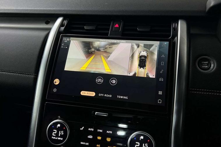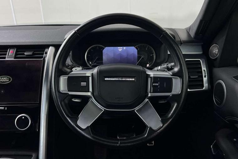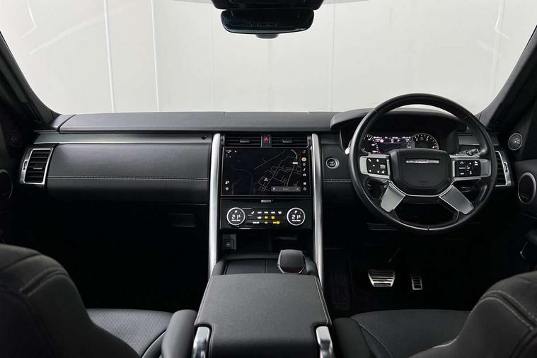 Online pack with data plan - Discovery, R-Dynamic black exterior pack - Discovery, All terrain tyres, Immobiliser, Intrusion sensor, Keyless entry, Locking wheel nuts, Remote central locking, Digital Audio Broadcast radio-DAB, Dynamic volume control, Meridian surround sound system - 14 speaker + subwoofer, 18 channel amplifier, 700W, Pivi pro connected, USB/aux input socket, 3x3 point rear seatbelts, Anti-lock braking system (ABS), Brake pre-fill technology, Cornering brake control, Curtain airbags, Customer configurable autolock, Driver and passenger airbags, EBD - Electronic brakeforce distribution, Electronic traction control, Emergency brake assist, Emergency braking, ESP, Front side airbags, Gradient acceleration control, Hill descent control, Hill launch assist, Power operated child locks, Rear airbags, Roll stability control, Seat belt reminder, Torque vectoring brake, Tyre pressure monitoring system, Acoustic laminated windscreen, Animated directional indicators, Auto dimming interior rear view mirror, Automatic headlight levelling, Automatic headlights, Body colour bumpers, Body colour door handles, Centre high mounted stop light, D300 badge, Electric heated/power fold door mirrors with approach lights and auto dimming driver side, Electric windows with one touch open/close and anti-trap, Heated rear window, Heated windscreen, LED desaturated signature tail lights, Matrix LED headlights with signature DRL, Metal treadplates with R-Dynamic branding, Narvik black Discovery script, Puddle lights, Rain sensing windscreen wipers, Rear fog lights, Rear wash/wipe, Trailer stability assist, Variable intermittent wiper, 12V power sockets, 12V USB charging socket in loadspace, Central hinged twin lidded storage, Ebony morzine headlining, Electric adjustable steering column, First and second row door bins, Footwell lights, Front and rear 12V with front USB, Front passenger seat isofix location point, In-facia storage, Isofix child seat preparation for front passenger seat, Loadspace cover, Loadspace Hook, Loadspace light, Lockable glovebox, Lower centre console storage, Luggage tie downs in loadspace, Multi function steering wheel, Overhead lighting console, Premium cabin lighting, Premium carpet mats, Shopping bag hook, Storage glovebox, Sunvisors with illuminated vanity mirrors, Third row storage, Twin front cupholders with cover, USB with 12V socket in centre console, 11.4" touchscreen, 3D surround camera, Adaptive cruise control, Android Auto, Apple car play, Blind spot assist, Clear exit monitor, Driver condition monitor, Electric power assisted steering (EPAS), Front and rear parking aid, Lane keep assist, Power inner tailgate, Push button start, Rear collision monitor, Rear traffic monitor, Remote, Remote boot release, Service interval indicator, Speed proportional steering, Sportshift selector, Stop/start system, Traffic sign recognition with adaptive speed limiter, Trip computer, Wade Sensing, Adaptive dynamics, Dynamic stability control, Electronic air suspension, Front axle open differential,