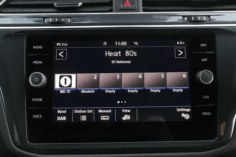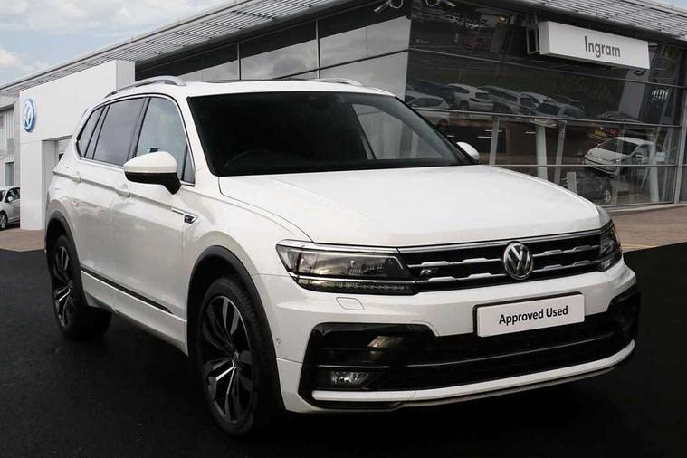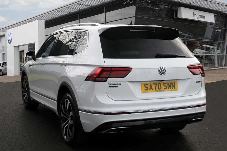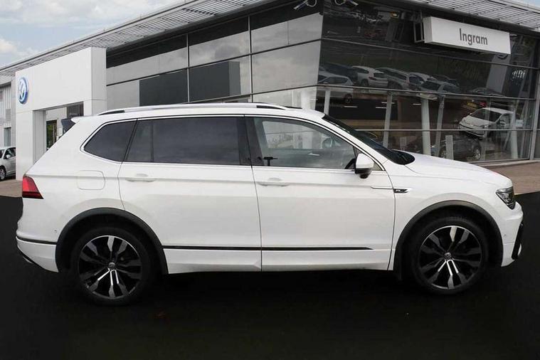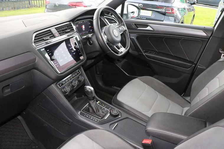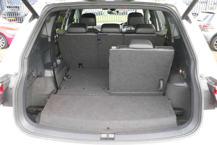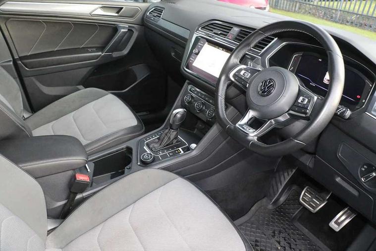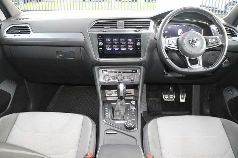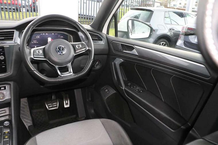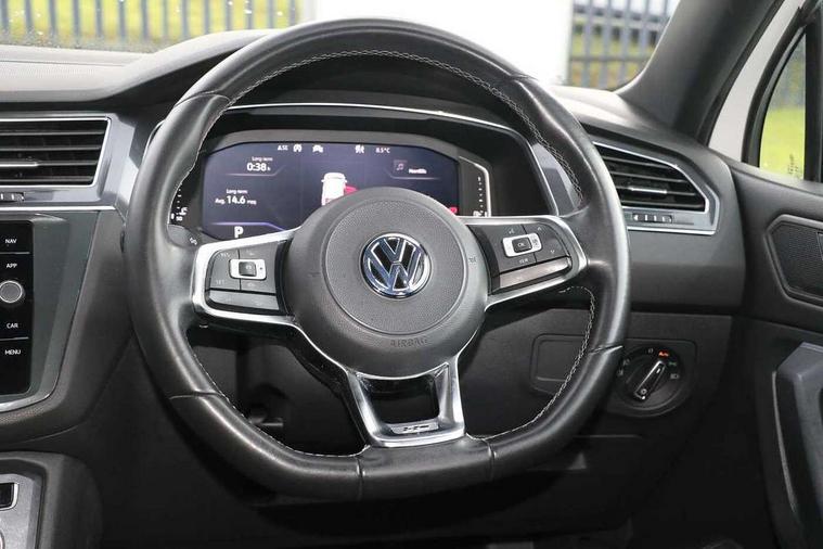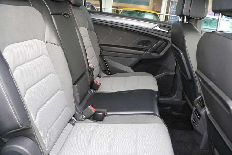 Chrome door trim inserts, Piano black interior trim, Ambient lighting pack - Tiguan, R Line styling pack - Tiguan, 20" Suzuka alloy wheels + anti theft wheel bolts, Steel space saver spare wheel, Alarm with interior protection, Electronic engine immobiliser, Remote central locking with 2 remote folding keys, 2x USB sockets in front, 4 X 20 watt output, Aux-in socket, DAB Digital radio, Dynamic navigation based on TMC+, Music playback - MP3, WMA and AAC files, SD card slot, Simultaneous pairing of 2 compatible mobile devices, SMS Functionality, Three route options - Fast, Short, Eco, Title and cover art display, Volkswagen media control, 3 point seatbelts on all seats, ABS+EBD+Brake assist, Active bonnet, Active pedestrian safety system, Curtain airbags, Driver/Front Passenger airbags, Driver/Passenger whiplash optimised head restraints, Drivers knee airbag, Electronic parking brake with auto hold, ESC with EDL, ASR, EDTC and trailer stabilisation function, First aid kit, Front and rear brake disc, Front seat side impact airbags, Front side airbags, Front ventilated brake discs, Head airbag system, Height adjustable front 3 point seatbelts + pretensioners, Hill hold control, Passenger airbag deactivate switch, Passenger knee airbag, Pre crash system, Rear side airbags, Rigid safety cell with front and rear crumple zones, Seatbelt warning lamp and buzzer, Two tone horn, Volkswagen roadside assistance, Warning sound and light for front seat belts if unfastened, Warning triangle, 3D effect cherry red LED rear tail lights, Aluminium decorative inserts in dash and door panels, Auto dimming interior mirror, Automatic activation of hazard warning lights, Body colour door handles, Body colour door mirrors, Chrome side window surrounds, Chrome trimmed radiator grille, Coming/leaving home lighting function, Door mirror puddle lights, Dusk sensor + auto driving lights, Electric panoramic sunroof with sunblind, Electrically heated and foldable door mirrors, door mirror puddle lights and reverse activated kerb view adjustment on passenger's door mirror, Front air intake with chrome strip, Front and rear electric windows, Heated rear window, Heated windscreen washer jets, High level 3rd brake light, LED headlights with dynamic light assist daytime running lights and cornering front fog lights, LED rear number plate lights, Rain sensor windscreen wipers, Rear tinted windows from B pillar back, Rear windscreen washer and wiper with interval delay, Silver anodised roof rails, Twin trapezoid chrome exhaust pipes, Unique R Line badging, Windscreen wipers/ intermittent wipe + 4 position delay, 12V socket in centre console storage area, 12V socket in luggage compartment, 12V socket on rear of front centre armrest, 2 cup holders in front, 2 head restraints in 3rd row, 2 individual 3rd row seats, 3 head restraints in 2nd row, 3 single seats foldable in 2nd row, 3 zone climate control, 4 load lashing points, Assymetric split folding rear bench seat and backrest with centre armrest, Bag hook in luggage compartment, Black headlining, Driver + front passenger lumbar support, Foldable front passenger seat backrest, Front + rear carpet mats, Front centre armrest with storage compartment, longitudinal and height adjustable and two rear air vents, Front seat R Line logo with rear seat backrest, Front seatback folding tables, Height/reach adjust steering wheel, Illuminated driver/passenger vanity mirrors, Illuminated scuff plates, Instrument lighting white adjustable panel illumination, Interior light with delay, Isofix Preparation 2 Rear child seats, Leather gear knob, Leather trimmed three spoke multifunction steering wheel with aluminium inserts and paddle shift, Load through provision with 2 cupholders when folded, Lockable cooled glovebox, Luggage compartment lighting, Luggage compartment side storage, Map pockets on front seats, Passenger seat height adjuster, Rear cupholders, Removable luggage cover, Sliding/reclining rear seats, Stainless steel pedals, Storage compartment in driver's door, Storage compartment in passenger's door, Storage compartment in rear doors, Storage tray on dashboard, Sunglasses storage, Unique R Line door sill protectors, Variable boot floor, App-Connect, Active information display, Adaptive cruise control, Area view with park assist steering and front and rear parking sensors, Bluetooth phone integration system, Car-Net Security and Service, Coasting function, Drive mode selector, Driver alert system, Driver profile selection, Fatigue detection system, Front assist, radar sensor controlled distance monitor, city emergency braking + predictive pedestrian protection, Fully electric tailgate + keyless entry and start, Instrument cluster, Lane assist, Low washer fluid warning light, Outside temperature display, Progressive power assisted steering, Service interval indicator, Speed limiter, Start/Stop function, Warning sound and light for doors and tailgate open, Battery regeneration during braking, Diesel particulate filter, Misfuel prevention device, Sports suspension,