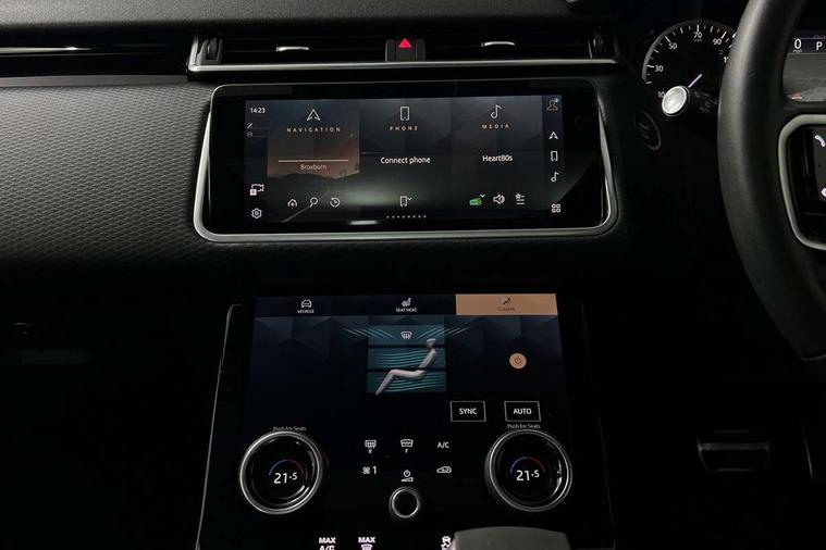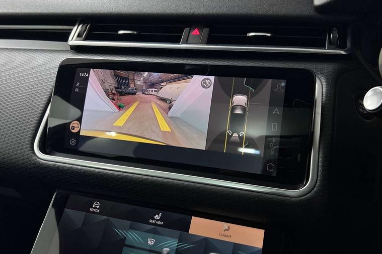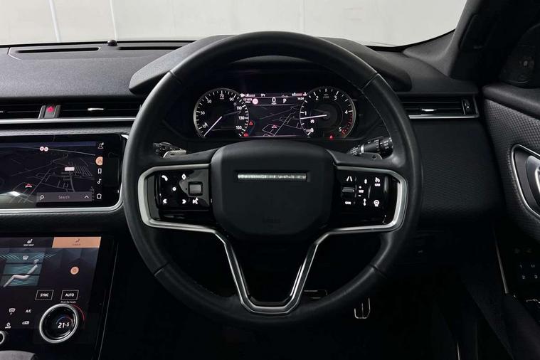 Online pack with data plan - Velar, R-Dynamic black pack - Velar Edition/HST, 20" gloss black alloy wheels - Style 7014, Global lock and unlock switch on driver door, Immobiliser, Intrusion sensor, Keyless entry, Lock only switch on front passenger door, Locking wheel nuts, Perimetric alarm, Remote central locking, Digital Audio Broadcast radio-DAB, Steering wheel mounted controls, 355mm front brakes and 325mm rear brakes, 3x3 point rear seatbelts, Anti-lock braking system (ABS), Cornering brake control, Curtain airbags, Customer configurable autolock, Door side intrusion beams, Driver airbag, DSC - Dynamic Stability Control, Electronic brake force distribution, Electronic parking brake, Electronic traction control, Emergency brake assist, Emergency braking, Front and rear seatbelt reminder, Hill descent control, Hill launch assist, Low traction launch, Passenger airbag, Power operated child locks, Rear airbags, Roll stability control, Side airbags, Tyre pressure monitoring system, Unpainted brake calipers, Acoustic laminated windscreen, Adaptive front lighting system, Auto dimming interior rear view mirror, Automatic headlamp levelling, Automatic headlights, Body coloured bumpers, Boot protection plate, Electric heated/power fold door mirrors with approach lights and auto dimming driver side, Electric windows with one touch open/close and anti trap, Flush deployable exterior door handles, Follow me home headlights, Front fog lights, Heated rear window with timer, Heated washer jets, Heated windscreen, LED 3rd brake light, Metal load space scuff plates, No badge - Removes engine badge, Privacy glass, Rain sensor windscreen wipers, Rear animated directional indicators, Rear fog lights, Rear side wing doors, Rear wash/wipe, Sliding panoramic sunroof with auto blind function, Tailgate/boot lid spoiler, Trailer stability assist, Velar and R-dynamic badge, 3 seat bench in 2nd row, Ambient lighting, Bright metal pedals, Driver/passenger sunvisors with illuminated vanity mirrors, Heated steering wheel, Isofix system on outer rear seats, Loadspace cover, Overhead lighting console, Overhead stowage for sunglasses, Passive front headrests, Rear air vents, Rear centre headrest, Satin chrome gearshift paddles, Single front passenger seat, Standard interior, Twin front cupholders, Twin sliding front centre armrest, 10" deployable touchscreen, Android Auto, Apple car play, Blind spot assist, Bluetooth connectivity, Brake pad wear indicator warning light, Driver condition monitor, eCall emergency call system, InControl remote, Land Rover InControl apps, Lane keep assist, Pivi pro with connected navigation, Push button start, Rear traffic monitor, Service indicator, Speed proportional electronic power assisted steering (EPAS), Traffic sign recognition with adaptive speed limiter, Trip computer, Voice control system, 8 speed automatic transmission, All terrain progress control, Open differential with torque vectoring by braking, Single speed transfer box,