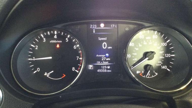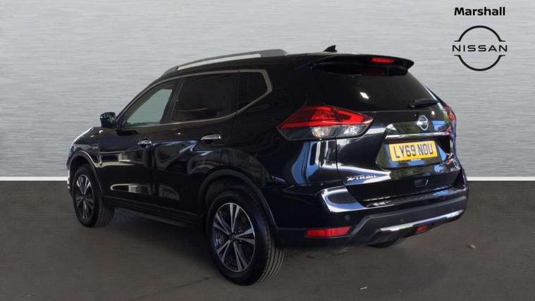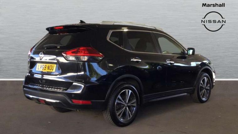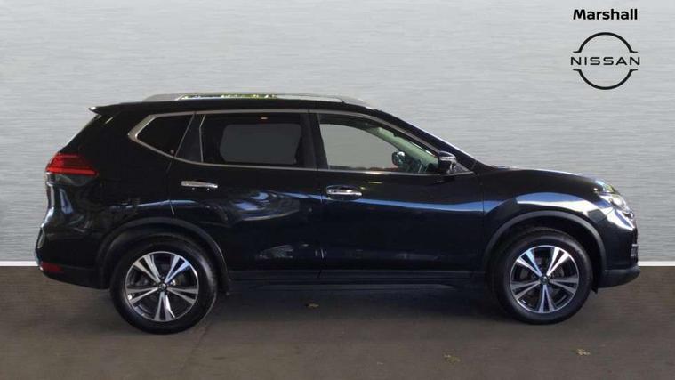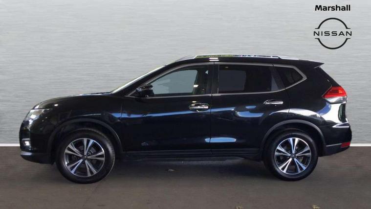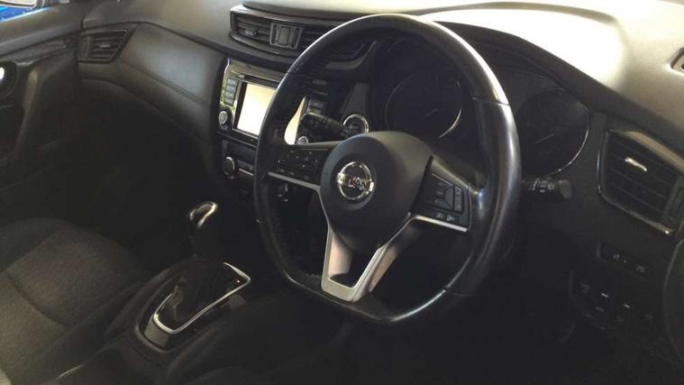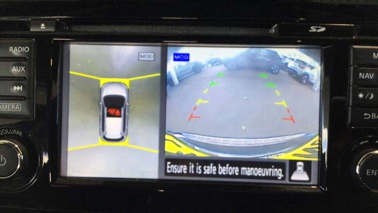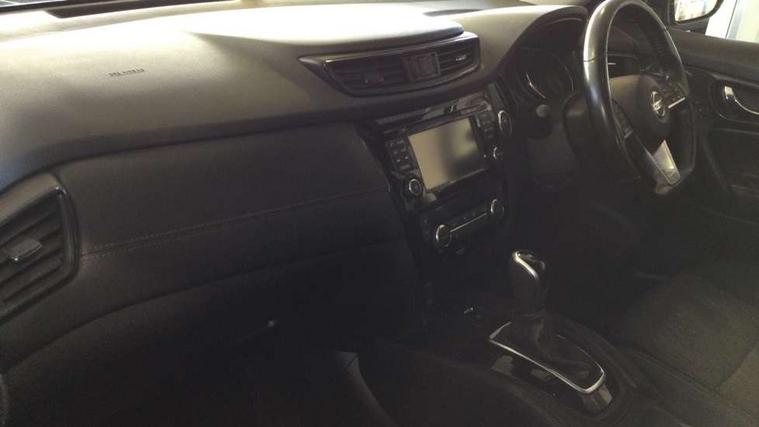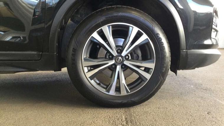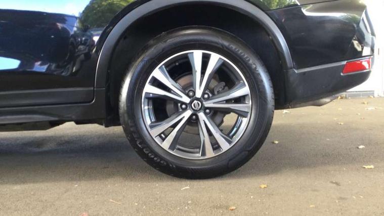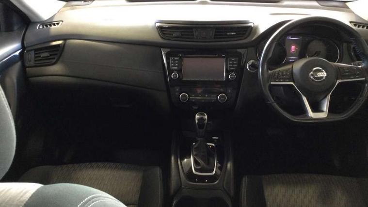 Full size spare wheel, Immobiliser, Intelligent Key, Remote central locking, Thatcham Cat.1 alarm, 6 speakers, DAB Digital radio, Radio/CD, Smartphone apps, Steering wheel mounted audio controls, USB/aux input socket, 3 point seatbelts on all seats, 6 airbags - Driver, front passenger, curtain and side airbags, ABS, Child locks on rear doors, EBD + Brake Assist, Electric parking brake, ESP + traction control, Intelligent emergency braking with pedestrian recognition, Seatbelt warning, Tyre pressure monitoring system, Anti dazzle rear view mirror, Automatic headlights, Automatic rain sensing wipers, Black honeycomb front grille, Body colour door mirrors, Chrome door handles, Chrome window surround, Electric folding door mirrors, Electric heated door mirrors, Front and rear electric windows, Front fog lights, Halogen headlights, LED daytime running lights, Panoramic sunroof with one touch shade, Rear privacy glass, Satin silver roof rails, Shark fin roof aerial, 3 rear headrests, 60/40 split rear bench seat, Centre console storage box/armrest, Cloth upholstery, Configurable luggage board system, Driver's manual adjustable lumbar support, Dual zone climate control, Front and rear door pockets with bottle holders, Front cupholders, Front/rear armrests, Height adjustable front headrests, Individual rear reading lights, Isofix child seat attachment, Leather D shaped steering wheel, Leather steering wheel and gear knob, Pollen filter, Tilt/telescopic adjustable steering wheel, 5" TFT driver information centre, Automatic tailgate opening, Bluetooth phone integration system, Cruise control + speed limiter, Front and rear parking sensors, Intelligent around view monitor, Lane departure warning system, Nissan connect evo 7" touchscreen navigation and entertainment system, PAS, Push button start, Traffic sign recognition, Trip computer, Nissan chassis control (intelligent ride control, intelligent trace control, intelligent engine brake),