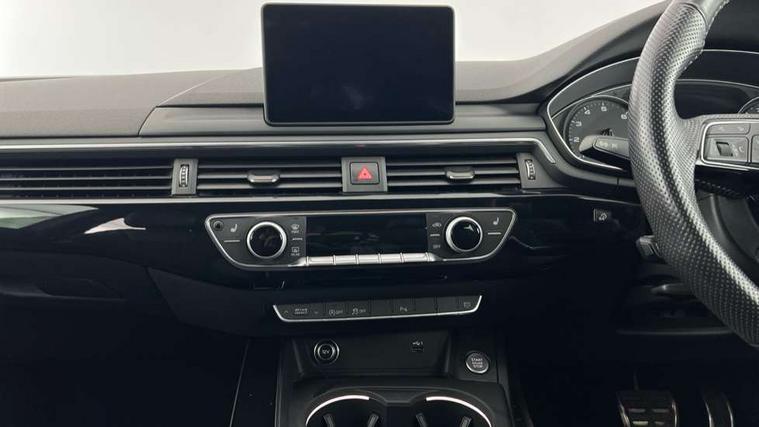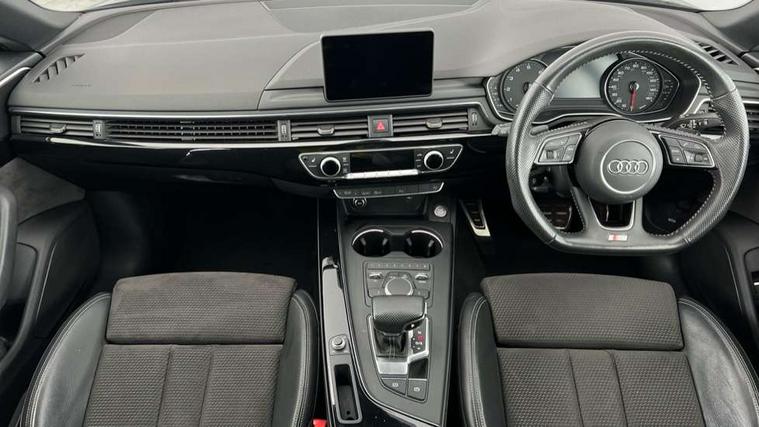 Piano black finish inlay, Non Smokers pack, 20" 5 arm rotor alloy design wheels with matt titanium finish, Tyre repair kit, Anti theft alarm system, Anti theft wheel bolts, Immobiliser, Keyless Go, Remote central locking, CD player, DAB Digital radio, Two SDXC card slots, 3x3 point rear seatbelts, 6 airbags - Driver, front passenger, curtain and side airbags, Electromechanical parking brake, Electronic Stabilisation Control (ESC) including ABS, ASR and EDL, Front passenger airbag deactivation, Height adjustable front seatbelts, Hill hold function, Multi-Collision braking, Pop-up bonnet for pedestrian protection, Pre sense city, Seatbelt monitoring, Tyre pressure warning, Variable restraint system, Warning triangle and first aid kit, Air inlets in titanium black with matt aluminium inlay, Auto dimming rear view mirror, Body colour bumpers, Chrome plated exhaust pipe, Electric adjustable heated door mirrors, Electric front windows, Front fog lights, High beam assistant, High gloss black door mirrors, Rain and light sensors, Rear diffuser in Twilight grey matt with honeycomb grille, S Line body styling, S line sill plates, S style high gloss black rear spoiler, Side and rear windows privacy glass, Titanium black frame and radiator grille, Titanium black front and rear air intakes, Titanium black window surround, Windscreen with acoustic glazing, 2 x USB charging port with aux input socket, 3 spoke flat bottom high multi-function leather steering wheel, 40/20/40 split folding 3 seater rear bench seat, Adjustable steering column, Black headlining, Black perforated leather gearknob, Centre console with cupholders, Contrast stitching on seats, steering wheel and gear lever gaiter, Deluxe 3 zone electronic climate control, Front centre armrest, Front head restraints, Front/rear floor mats, Gearshift paddles, Illuminated door sills, ISOFIX child seat mounting and top tether, Jack and tool kit, Luggage compartment mat, Rear headrests, S embossed logo on front sport seats, Stainless steel pedals and foot rest, 7" Colour driver information system, Audi connect, Audi drive select, Audi parking system plus with front and rear sensors, Audi smartphone interface, Automatic start-stop system with coasting functionality and efficiency programme, Bluetooth interface, Electro-mechanical power steering, MMI Navigation, Power tailgate, Service interval indicator, Voice control system,