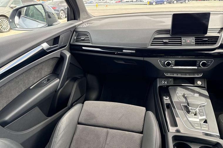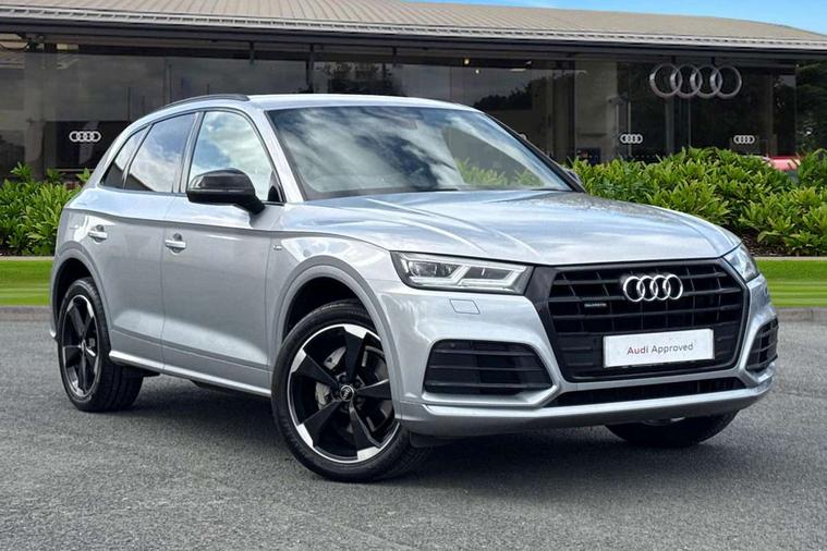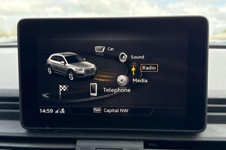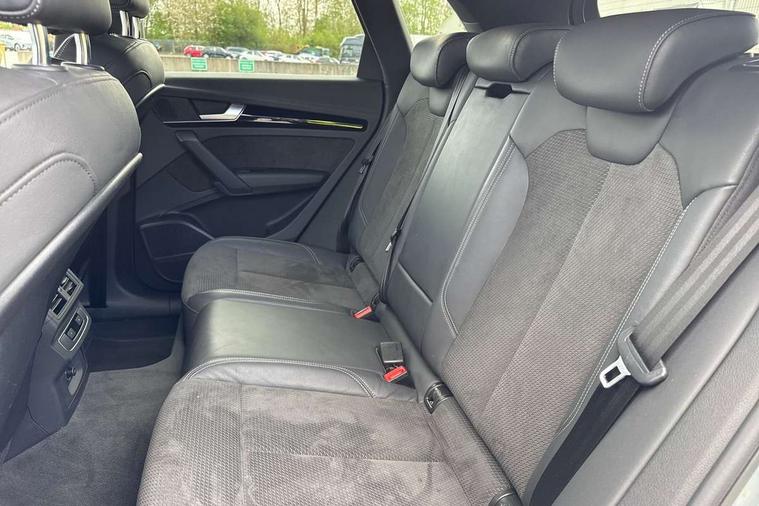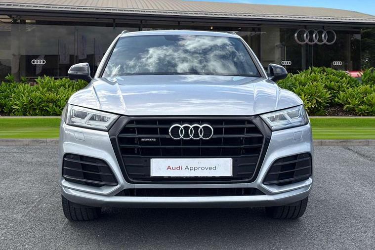 Black piano finish inlays, Non Smokers pack, Titanium black styling pack - Q5, 20" 5 arm rotor design sport alloy wheels in gloss anthracite black, diamond cut finish, Anti theft alarm, Anti-theft wheel bolts, Keyless Go access/ignition system, Remote central locking, 2x SD card slot, CD player, DAB Digital radio, MMI radio plus with 7" colour MMI screen and MMI controller, 3 point seatbelts on all seats, 6 airbags - Driver, front passenger, curtain and side airbags, Electromechanical parking brake, Electronic stabilisation control including ABS, ASR and EDL, Front passenger airbag deactivation, Hill descent control, Hill hold assist, Multi collision brake assist, Pop-up bonnet for pedestrian protection, Pre sense city, Seat belt force limiter, Seatbelt monitoring, Tyre pressure warning, Warning triangle and first aid kit, Acoustic windscreen, Air inlets in matt titanium black with blades in matt aluminium silver, Auto dimming rear view mirror, Automatic headlight levelling, Black roof rails, Body colour bumpers, Body colour rear diffuser with matt aluminium silver surrounds, Body colour underbody protection, Chrome exhaust tailpipe, Electric adjustable/heated/folding door mirrors, Front and rear electric windows, High beam assistant, LED headlights with LED rear lights + dynamic rear indicators, Light and rain sensor for auto activation of lights and windscreen wipers, Loading sill protector in stainless steel, Privacy glass with front acoustic glazing, Rear wiper, Titanium black door mirror housings, 2 x USB charging port with aux input socket, 3 rear headrests, 3 spoke flat bottom high multi-function leather steering wheel, 40:20:40 split folding rear seat with rear centre armrest, Black cloth headlining, Contrast stitching on seats, steering wheel and gear lever gaiter, Deluxe 3 zone electronic climate control, Front centre armrest, Front sport seats with S embossed logo, Front/rear floor mats, Heated front seats, Height adjustable front head restraints, Height/reach adjustable steering column, ISOFIX child seat mounting and top tether, Luggage compartment carpet, Manual seat adjustment with 4-way electric lumbar support, Perforated leather gearknob, Removable luggage compartment floor, Stainless steel pedals, Sunvisors with vanity mirrors, Tool kit, Trunk roller cover, 7" Colour driver information system, Audi connect safety and service (e-call), Audi drive select, Audi parking system plus with front and rear sensors, Audi Pre sense collision avoidance, Audi smartphone interface, Automatic start-stop system with coasting functionality and efficiency programme, Cruise control + speed limiter, Electro - mechanical power assisted steering, MMI Navigation, Mobile telephone preparation - bluetooth interface, Power tailgate, Service interval indicator, Voice control system, Diesel particulate filter, Dynamic suspension, Quattro on demand,