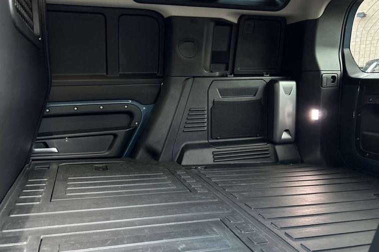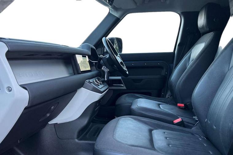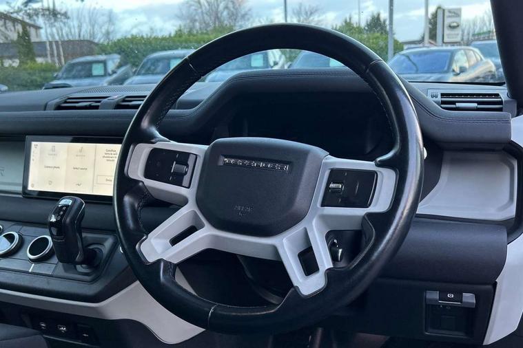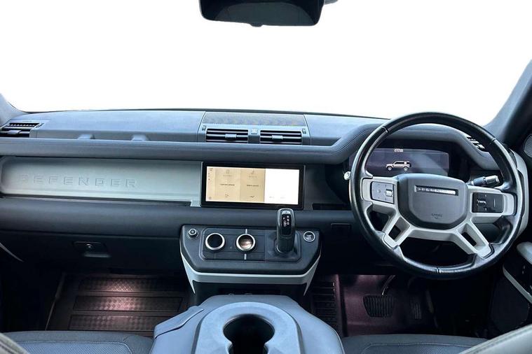 Online pack - Defender with data plan, Brake pad wear indicator, Electronic traction control, Emergency braking, Front airbags, with passenger seat occupant detector, Power operated child locks, Remote for (e-Call, Optimised assistance call, InControl app, Climate, beep and flash and door), Seat belt reminder, Intrusion sensor, Keyless entry system, Locking wheel nuts, ABS and EBA, CBC - (Cornering brake control), Dynamic stability control, Electronic park brake, Gradient acceleration control, Hill Descent Control, Hill start assist, Particulate filter (DPF), Push button start, Roll stability control, Trailer stability assist, Android Auto, Apple CarPlay, DAB Radio (Digital Audio Broadcasting), Meridian 280W sound audio system with 7 speakers with subwoofer, Alpine lights, Assisted tailgate, Auto High Beam Assist, Automatic headlight levelling, Centre high mounted stop light, ClearSight interior rear view mirror, Electric heated/power fold door mirrors with approach lights and auto dimming driver side, Electric windows with one touch open/close and anti-trap, Exterior signage panel, Follow me home lighting, Front fog lights, Heated rear window with timer, LED tail light, Premium LED headlights with signature DRL, Privacy glass, Puddle lights, Rear fog lights, Rear wash wiper, Side-hinged tailgate, Standard roof, Standard tread plates, 40:20:40 folding rear seats with centre armrest, Carpet mats, Clear exit monitor, Click and go integrated base unit, Dual zone climate control, Durable rubber cabin flooring, Electric adjustable steering column, Footwell lights, Front jump seat and folding front centre armrest, Front passenger seat ISOFIX points, Glovebox storage, Grained Leather upholstery, High sided rubber mats, Leather gearshift, Loadspace hooks, Loadspace rubber mat, Lockable and illuminated forward underfloor storage, Overhead stowage for sunglasses, Rear centre headrest, Rear reading light, Signature graphic, Sunvisors with illuminated vanity mirrors, Customer Configurable Autolock, 360 parking aid, 3D Surround Camera with 360 View, 180 Rear View, Front Traffic Detection, Forward Vehicle Guidance, Tow Hitch Assist and clear sight Ground View, Blind spot assist, Brake Hold, Driver condition monitor, Electric power assisted steering (EPAS), Interactive Driver display, Lane keep assist, Low traction launch, Pivi pro connected, Rain sensing wipers, Rear traffic monitor, Traffic sign recognition adaptive speed limiter, Trip computer, Tyre pressure monitor, Wade Sensing,